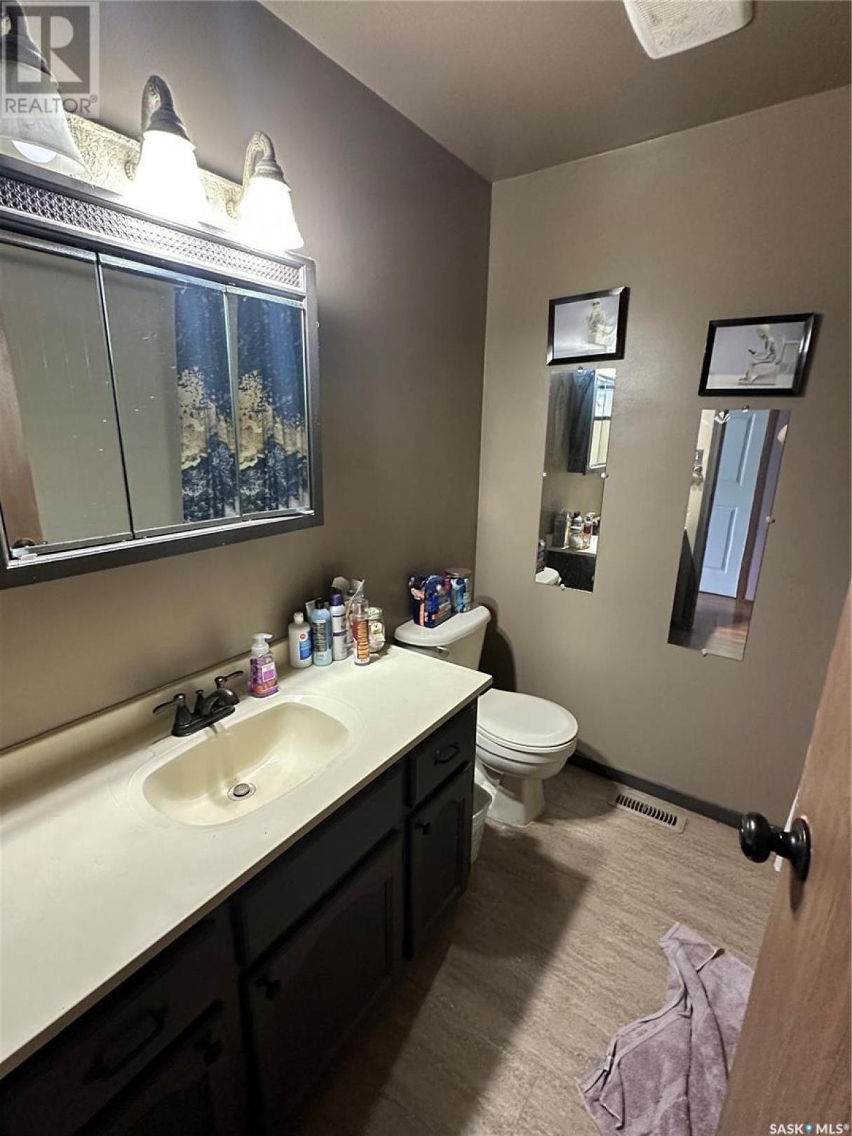 Located on a pleasant crescent in the SE area of Weyburn, sits a great starter home that includes a total of 4 bedrooms, 2 bathrooms and features an oversized single attached garage. There is a sunroom located at the back of the garage and the backyard looks out onto the prairies to the East. Off the beaten path, this home is in a quiet, family friendly area and is ready for someone to make it their own. Shingles replaced in 2024 and a new central air conditioner this year. (id:6769)