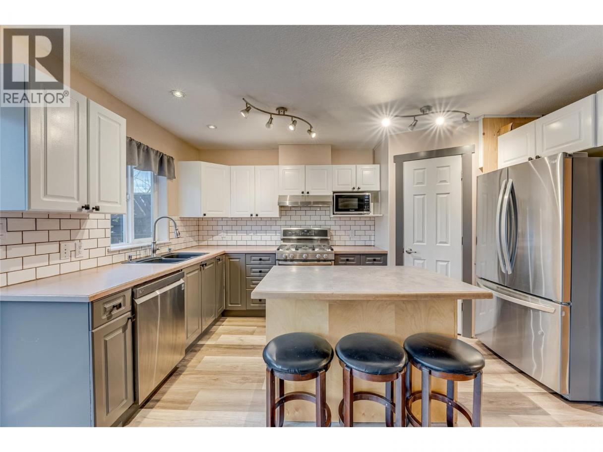 Family-friendly 4 bed, 2.5 bath townhome in Armstrong! Open-concept kitchen/living area, featuring gas stove, island and pantry. Upstairs you will find Primary bedroom with walk-in closet, and sitting/dressing area with built in vanity, a very spacious second bedroom as well as a 4pc bath with storage. Step through the sliders in great room to a fully fenced backyard with raised garden beds. Downstairs a spacious family room, another 2 bedrooms and storage. Also included are newer appliances/fixtures, carpets, water softener, hot water on demand, ample storage. Single carport, near schools, bus route, town amenities. Pet-friendly complex allowing one indoor cat or one dog up to 18” tall. Enjoy a welcoming community and comfortable living! (id:6769)