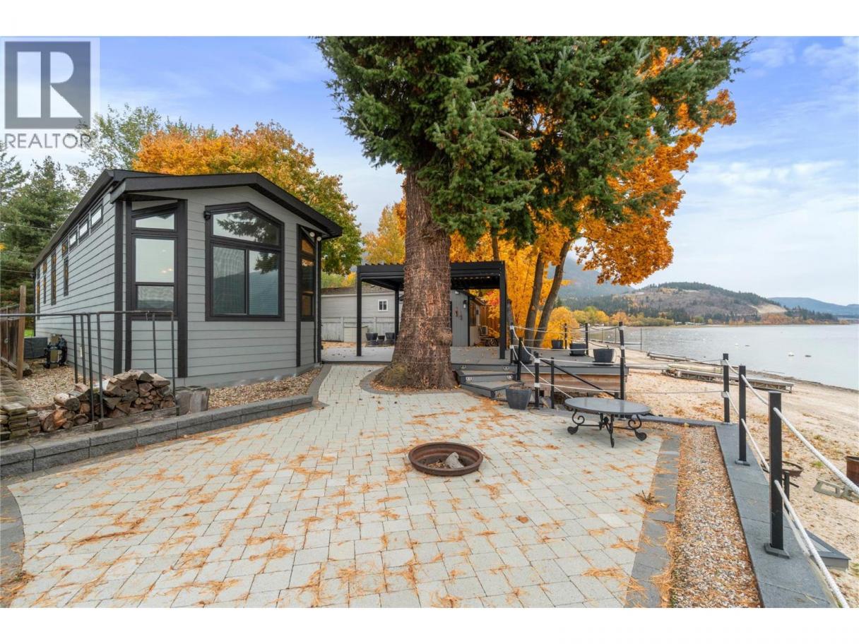 Waterfront home on Pierres Point Indian Reserve in Salmon Arm. 2021 Moduline custom mobile home in like-new condition with tons of upgrades included vaulted high ceilings, vinyl plank flooring, all appliances, island kitchen, bedroom built-ins, blind package. WATERFRONT Lot Fully Serviced with Water, Septic & Power! ALSO Includes fabulous outdoor kitchen with large windows, AC, New cabinets, opens up to the patio and firepit area. Includes custom cabinets, Fridge, Stove, Microwave, Dishwasher! Also a fully detached 3 piece washroom house with Renai hot water on demand, Washer & Dryer hookups, Water softener & power. Bunk House Bedroom, Full RV site with 30Amp service, Water & Sewer hook-ups. Health Canada Approved Septic treatment system. Large engineered concrete block retaining wall on lakeside. Heavy duty metal pergola with retractable roof and screen side panels valued at $80K/new. Excellent sandy beach that is great for swimming. Enjoy your summers in style with this affordable Native Leased property; Annual lease payment is $9500/year & Property Taxes are $5000/year. Immediate possession is possible! See www.BIGRob.ca for more info, then call Rob McKibbon Local at 250-804-6288. SOLD@BIGRob.ca, Thanks for your interest! (id:6769)