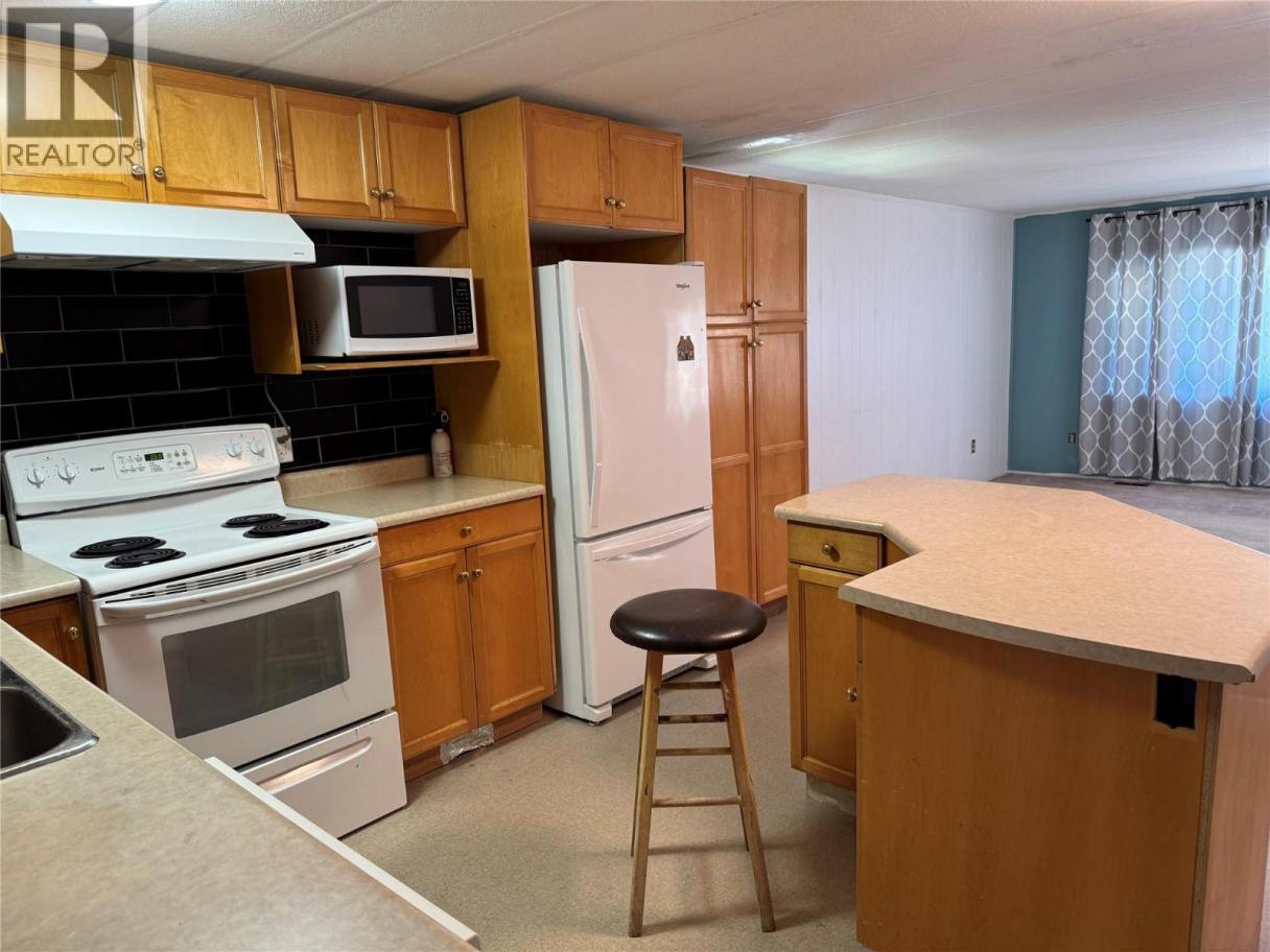 This 3 bedroom, 1 bathroom, single wide mobile home is situated on one of the best bays in Summokan Park. Offering a spacious yard with mature landscaping and roadway access from two sides of the property, it makes accessibility a dream. There is room for 2 vehicles to park at the front and roadway guest parking at the back. The home is well maintained with covered patio and storage room and offers forced air with its exterior heating/cooling unit. The park is well maintained with a very reasonable $550 monthly pad rent, it is limited to 2 owner/occupants aged 55+ and 2 pets are allowed with a maximum of 15"" at the shoulder. Sorry no rentals allowed. Bring your vision and call this home! (id:6769)