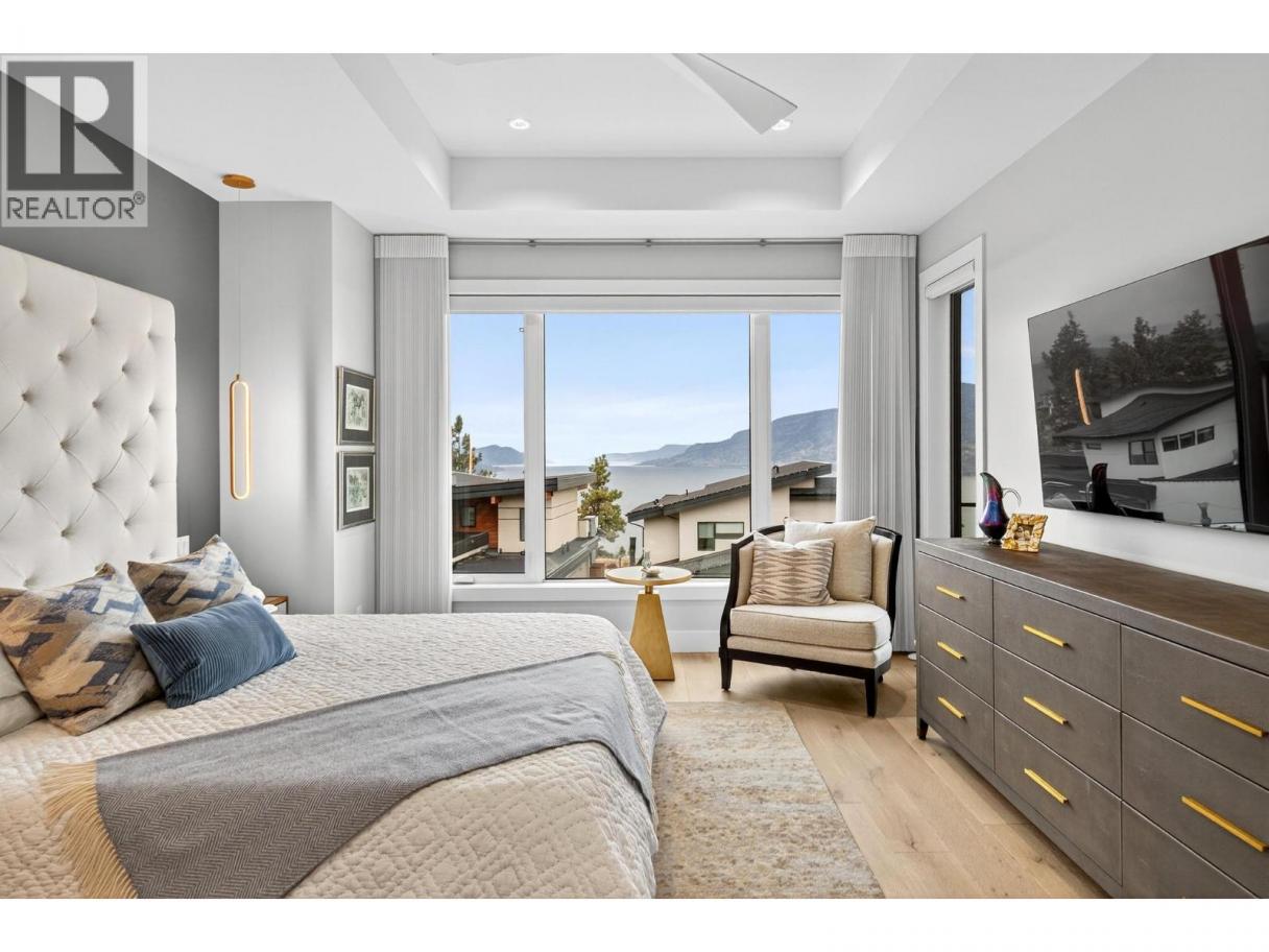 Available Again! This elegantly curated 3 Bed + Den lake view home in sought after Lakestone was almost sold! Back on market, this walk out rancher home is MINT and thoughtfully designed and crafted featuring opulent touches ordinarily reserved for $2M+ homes. From the moment you walk in you'll be captivated by soaring ceilings and the lake views through the grand bi-pass glass stacking doors and enraptured by warm designer tones, textures, and quality finishes. The bright open concept living space is inviting and warmed by a stunning 3-sided fireplace. The chef inspired kitchen leaves no-one wanting with large island, pro quality appliances, and butler pantry. Indoor-outdoor living at it's finest here - you can embrace the Okanagan lifestyle while dining on the screened and heated deck. Exceptional flow with no space wasted. Lower level reflects same level of finish with hardwood floors, well outfitted wet bar, high ceilings, fireplace, and an open plan that offers room to gather, relax, and enjoy time with music or games with friends. In-floor radiant heating down stairs ensures comfort for all with independent room controls, and is supplemented by a high efficiency gas furnace, AC, and HRV Air Circulation. Modest HOA fee affords you access to both the Lake Club and Centre Club with Pools, hot tubs, gyms, yoga studio, and pickle ball / tennis courts steps from your door. Also enjoy miles of hiking trails plus a swim dock and semi-private beach. 3-D Tour & Video. (id:6769)
