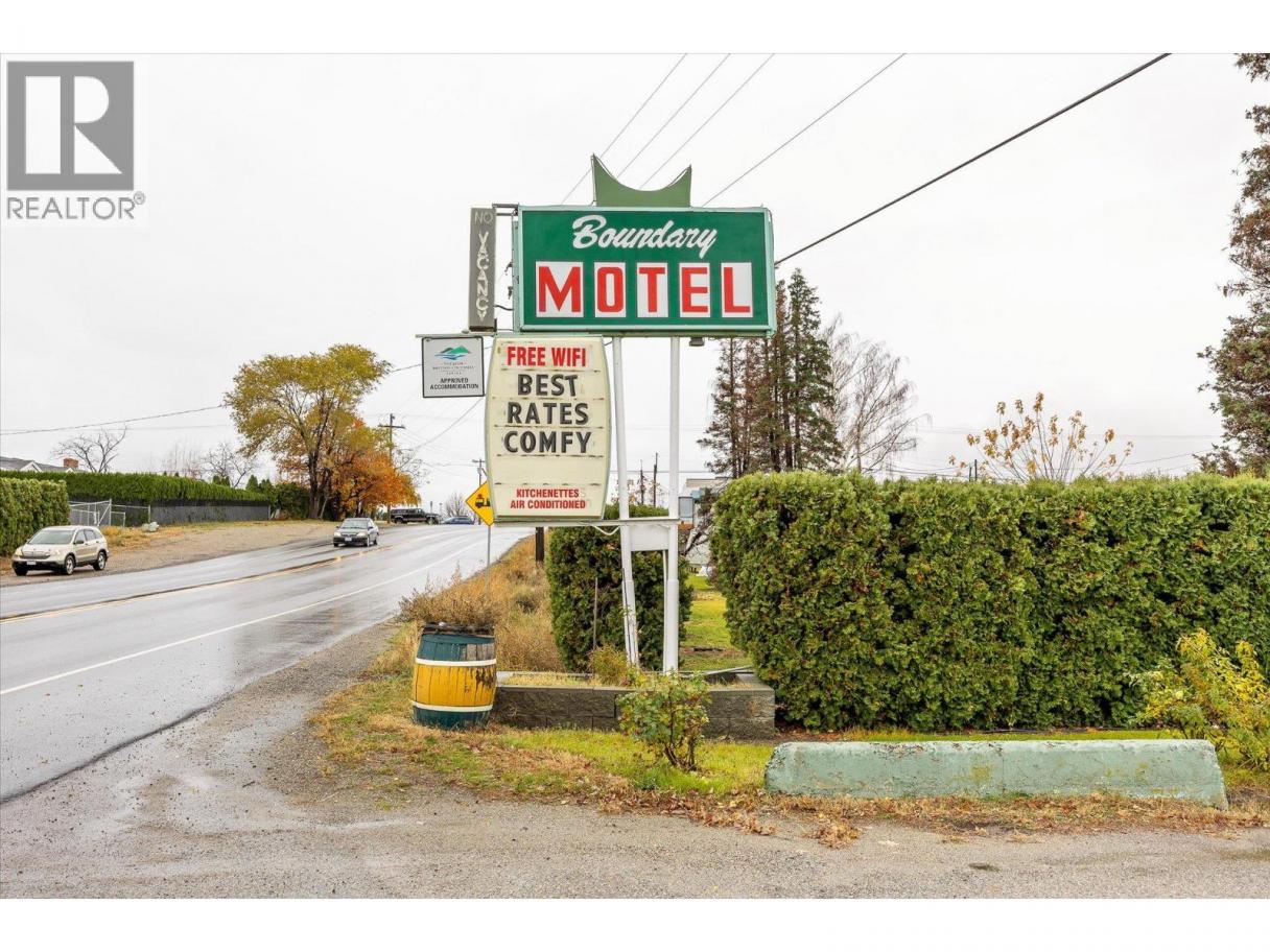 Opportunity to purchase the Boundary Motel, a unique investment opportunity in the Osoyoos area of the South Okanagan! This prime 1.72-acre property in Osoyoos offers a unique investment opportunity with multiple income streams. The property includes a 14-room motel, a 6-plex, and 7 mobile home pads. The motel and 6-plex are zoned C1 (Highway Commercial) while RSM (Residential Manufactured Home Park) zoning encompasses the manufactured home section. The site is serviced by city water and sewer and is located in a high-traffic area along Highway 97 to the South of the primary town of Osoyoos. At the asking price, the property is offered at a 6.95% cap rate, which includes a manager's salary as an expense. For the right investor, this could be an opportunity to continue the existing cash flow of the property and take advantage of lowering interest rates, all being possible without running the motel in a ""hands-on"" way. Several opportunities exist to further increase the property's income stream. Modernizing booking systems, leveraging high season pricing, and renovating the motel, to name a few. Likewise, there is an upside for the manufactured home rents to be increased with tenant turnover. The manufactured homes themselves are not included as assets; they are owned by the tenants. Properties with three separate revenue streams do not often come to market. (id:6769)