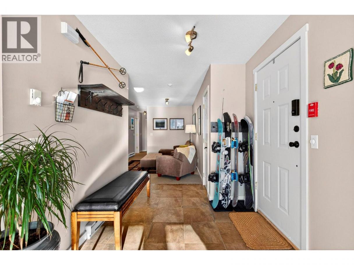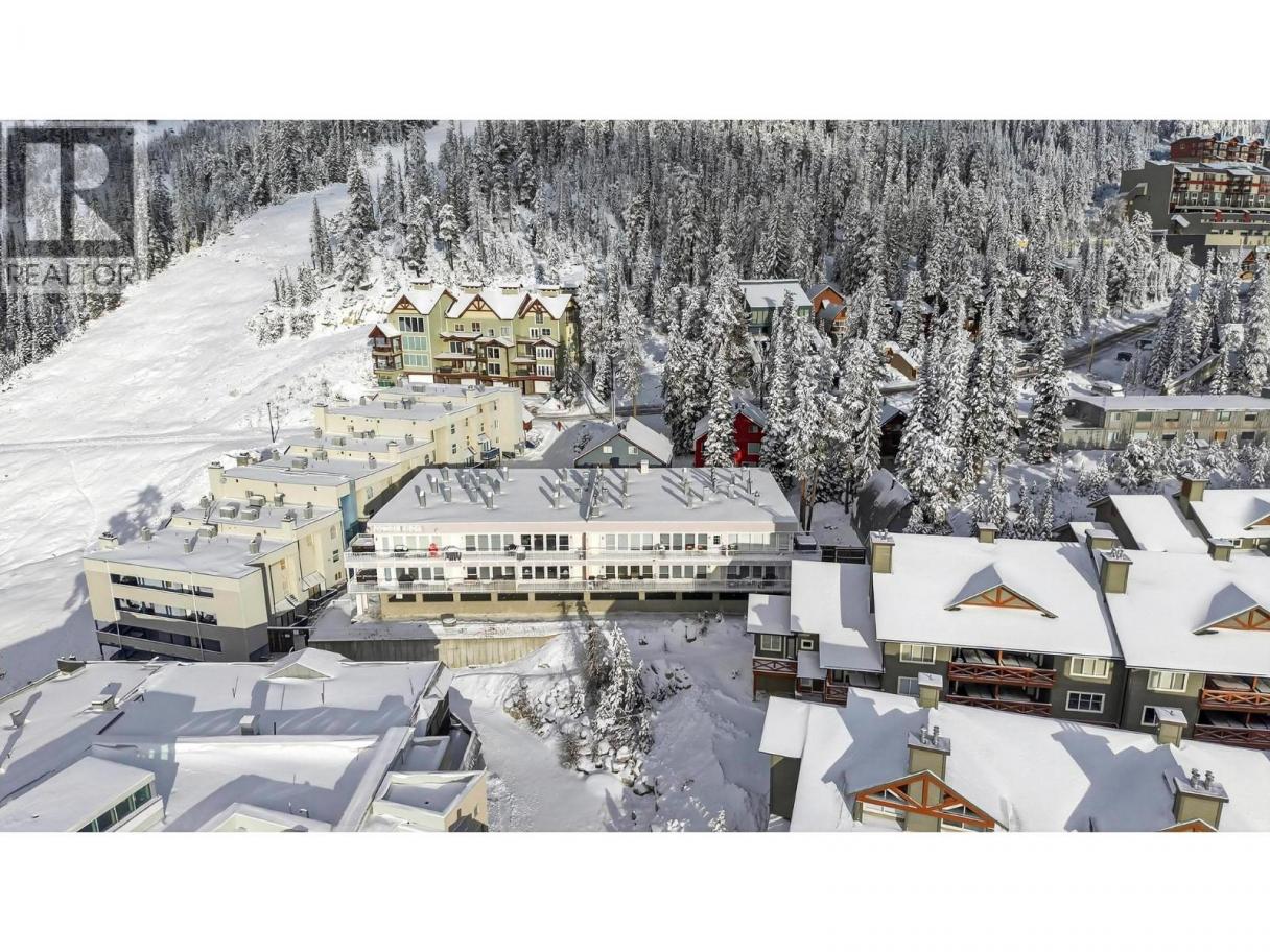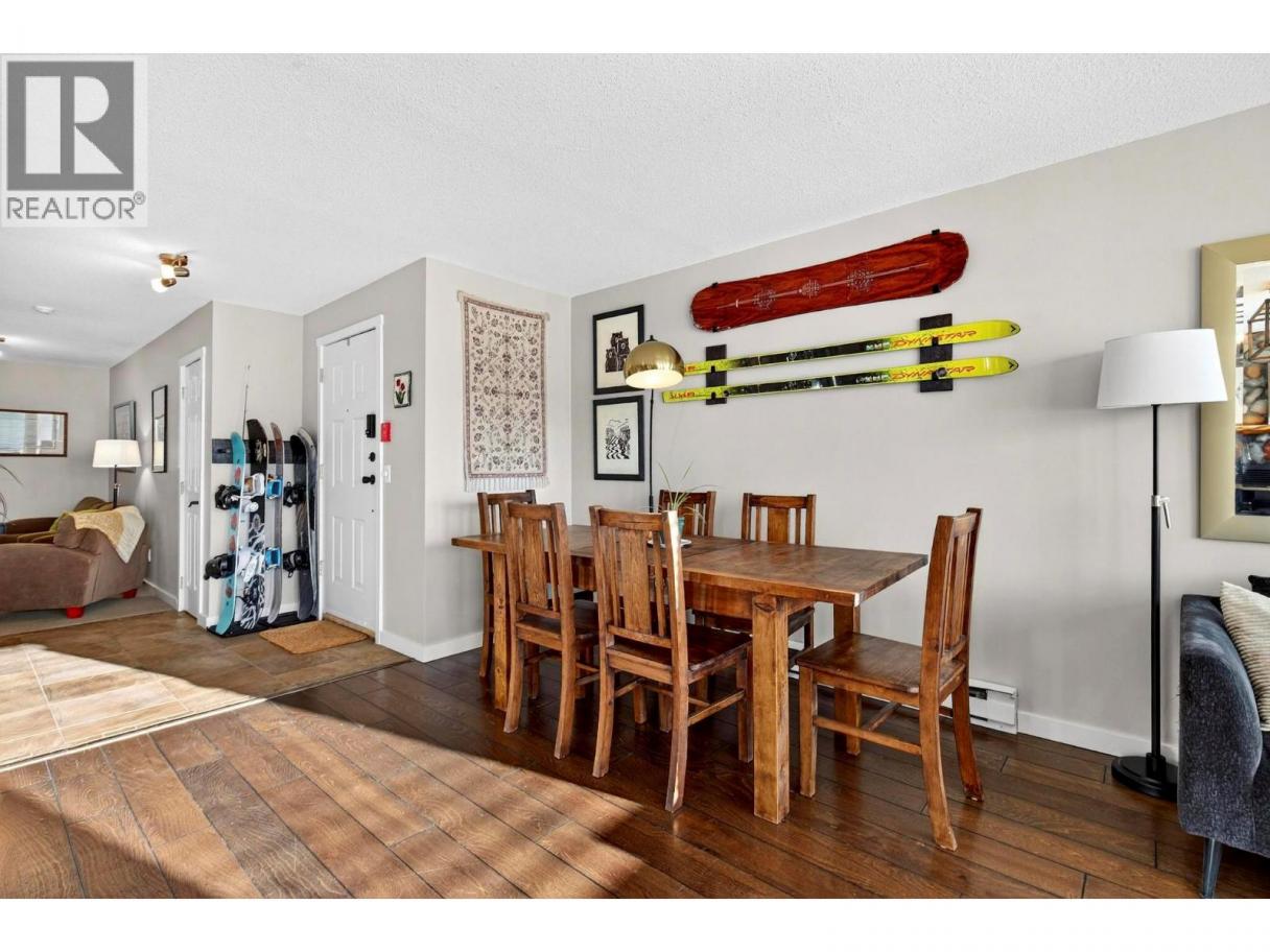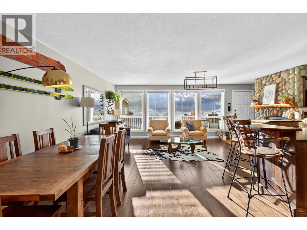 A warm and inviting mountain retreat perfectly designed for both personal enjoyment and short-term rental success. This beautifully updated condo is Airbnb-able, true ski-in/ski-out access, and shared hot tub amenities through the Winter Ridge strata partnership. Step into a bright, open living space flooded with natural light from the wall of west-facing windows. The spacious layout features rich wood flooring, charming mountain decor, and a cozy gas fireplace set into a stunning river-rock surround, creating the perfect apres-ski atmosphere. The dining area comfortably hosts large groups, making this an ideal space for families and guests. The kitchen has stainless steel appliances, warm wood cabinetry, a generous peninsula with bar seating, and plenty of prep space. Whether you're cooking for guests or hosting friends, the flow of this kitchen-to-living space feels effortless. From the living room, step out onto the private deck and take in the expansive mountain and valley views, a true Big White highlight. This is the perfect spot for morning coffee or watching the sun set over the snow-covered rooftops. The bedroom is spacious and comfortable with good storage, and the unit includes a well-kept bathroom and convenient in-suite laundry. Located just minutes from the Village, this complex sits in a quiet, elevated area with excellent ski access. (id:6769)