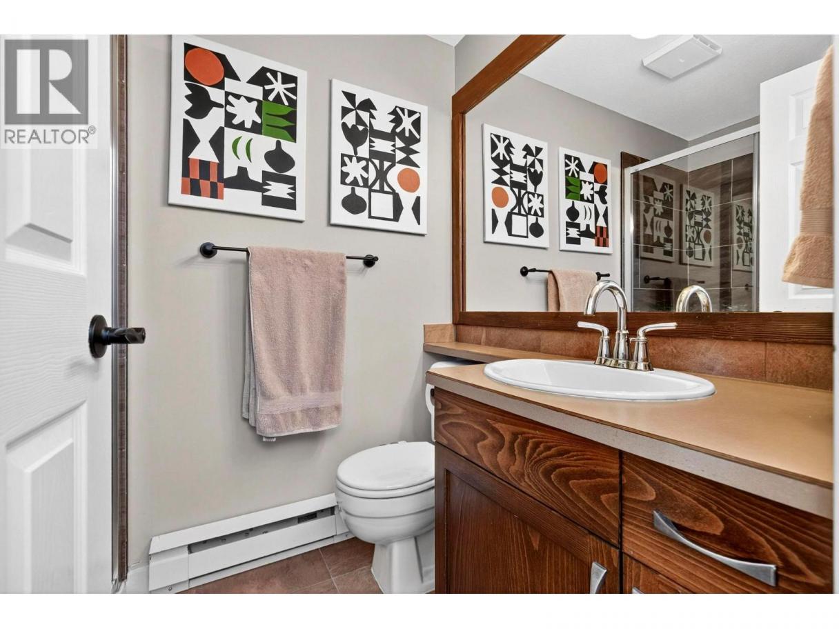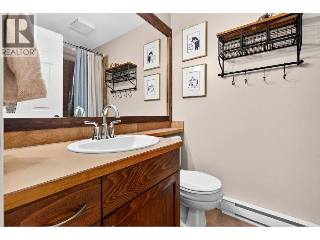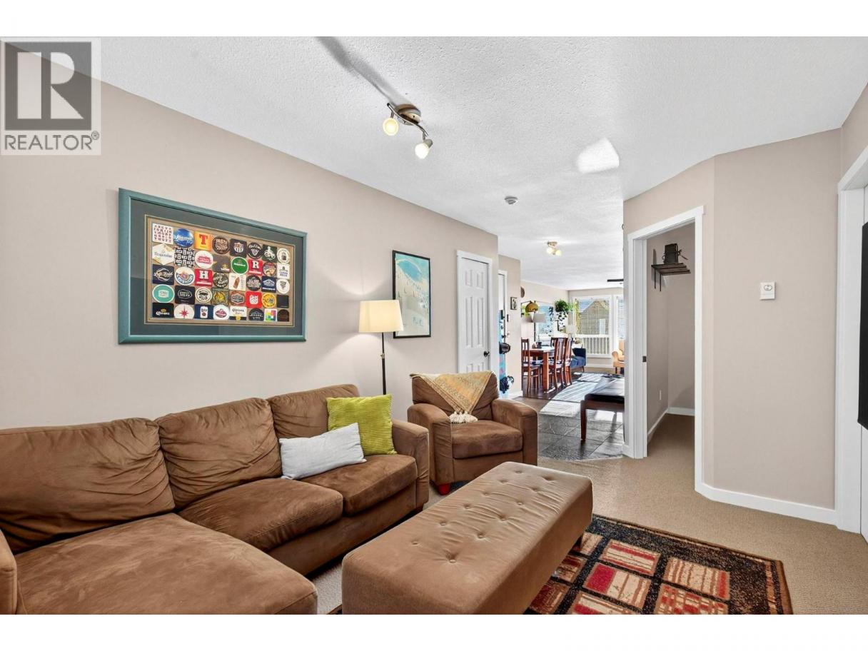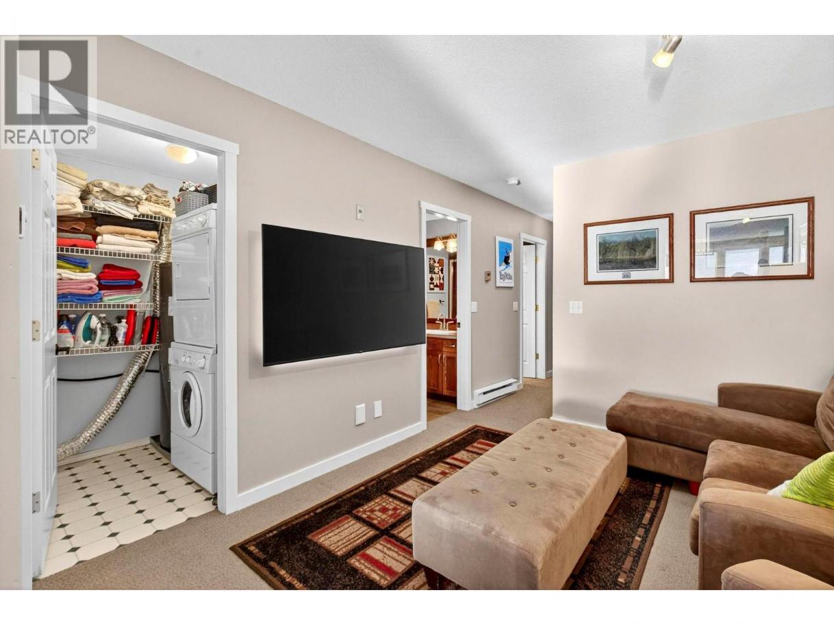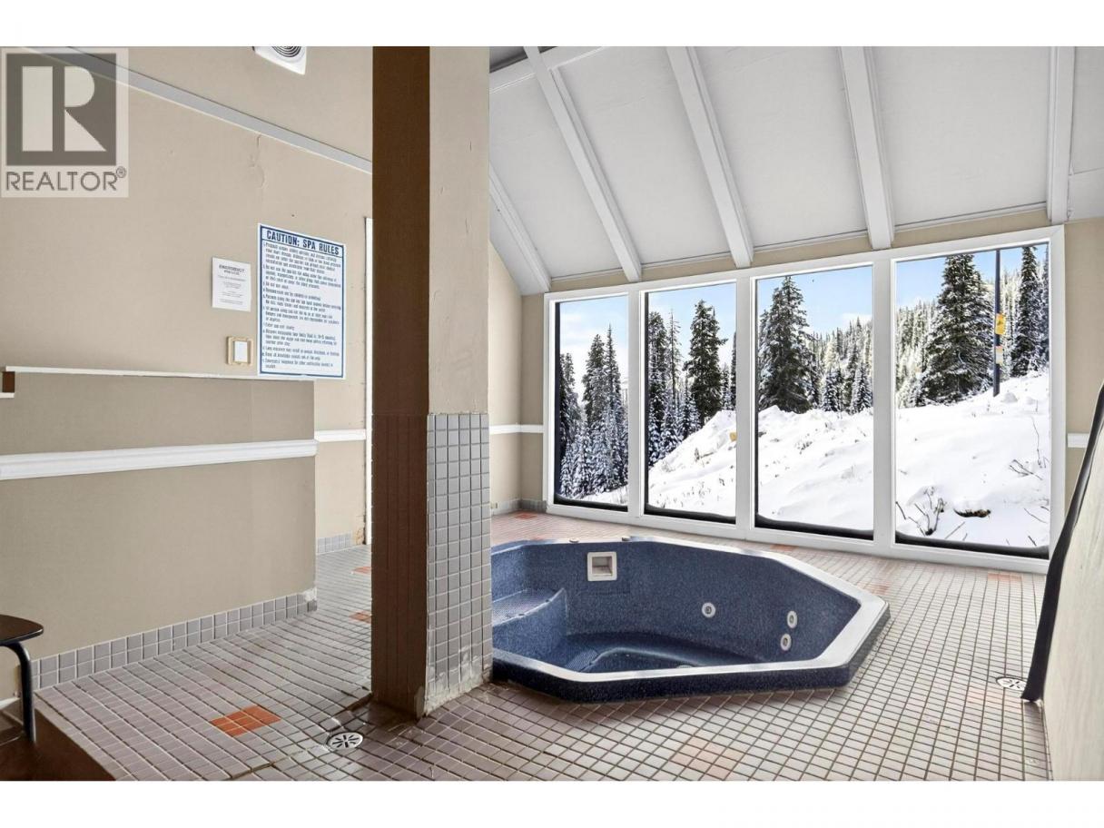 A warm and inviting mountain retreat perfectly designed for both personal enjoyment and short-term rental success. This beautifully updated condo is Airbnb-able, true ski-in/ski-out access, and shared hot tub amenities through the Winter Ridge strata partnership. Step into a bright, open living space flooded with natural light from the wall of west-facing windows. The spacious layout features rich wood flooring, charming mountain decor, and a cozy gas fireplace set into a stunning river-rock surround, creating the perfect apres-ski atmosphere. The dining area comfortably hosts large groups, making this an ideal space for families and guests. The kitchen has stainless steel appliances, warm wood cabinetry, a generous peninsula with bar seating, and plenty of prep space. Whether you're cooking for guests or hosting friends, the flow of this kitchen-to-living space feels effortless. From the living room, step out onto the private deck and take in the expansive mountain and valley views, a true Big White highlight. This is the perfect spot for morning coffee or watching the sun set over the snow-covered rooftops. The bedroom is spacious and comfortable with good storage, and the unit includes a well-kept bathroom and convenient in-suite laundry. Located just minutes from the Village, this complex sits in a quiet, elevated area with excellent ski access. (id:6769)
