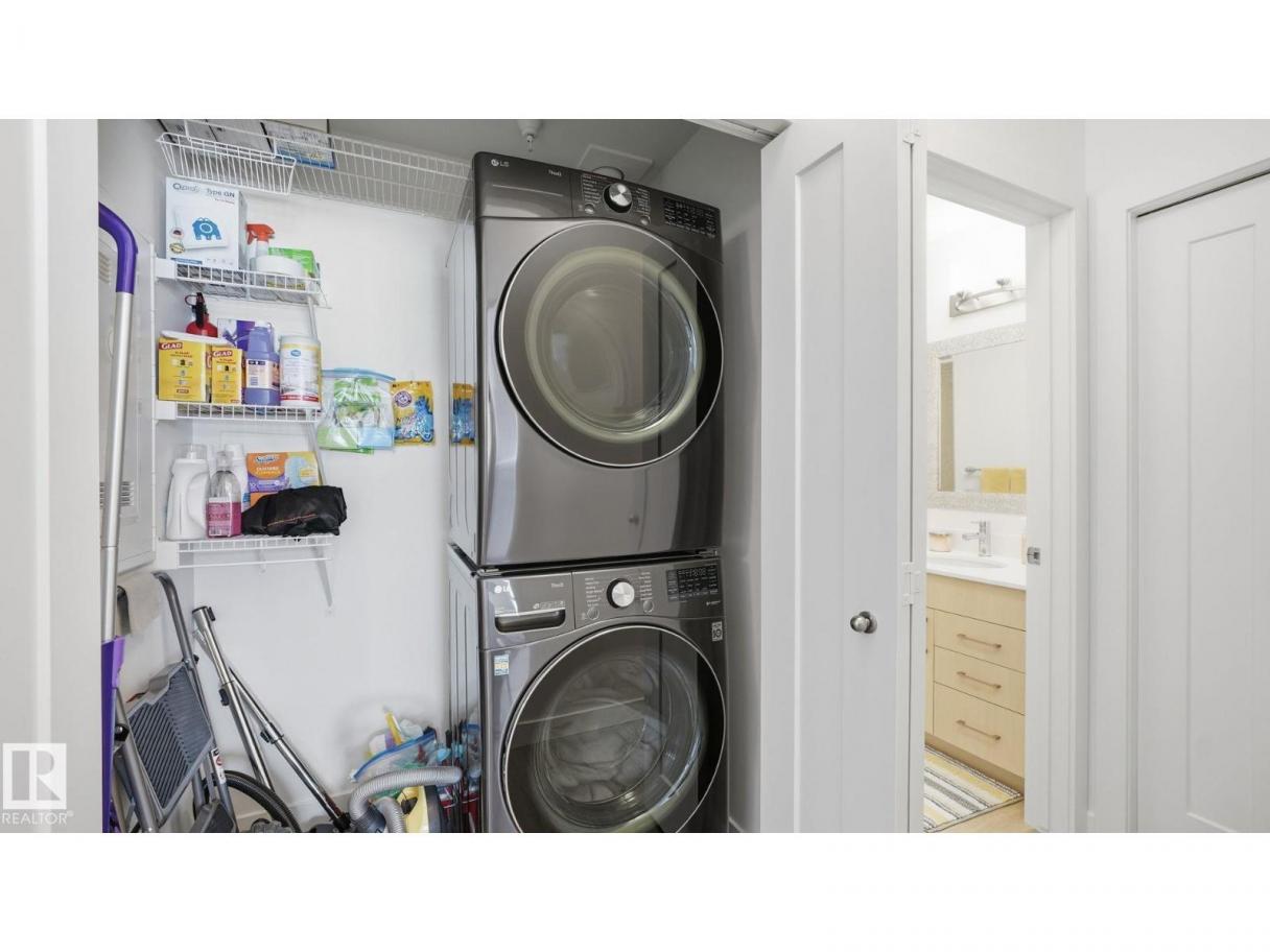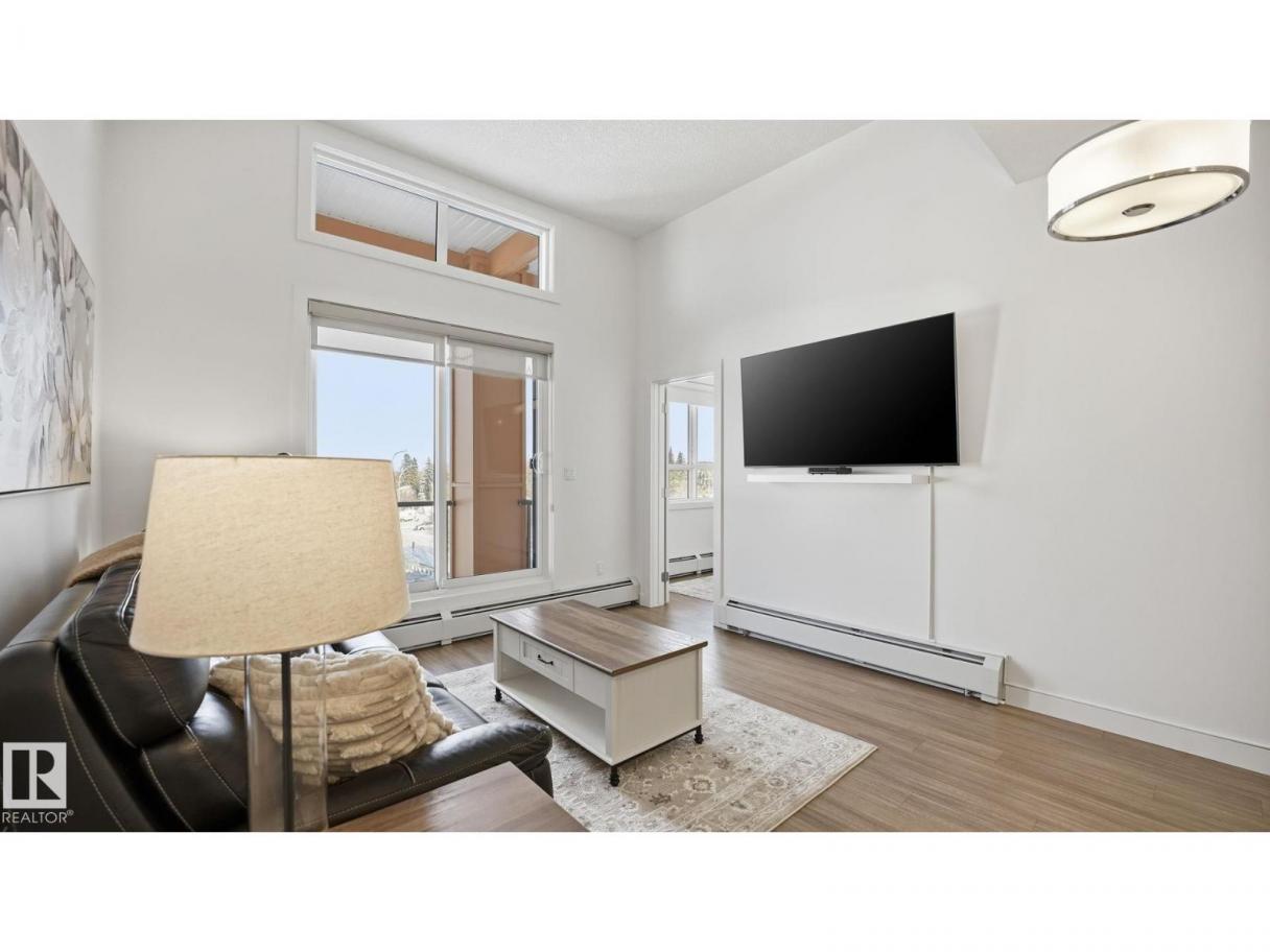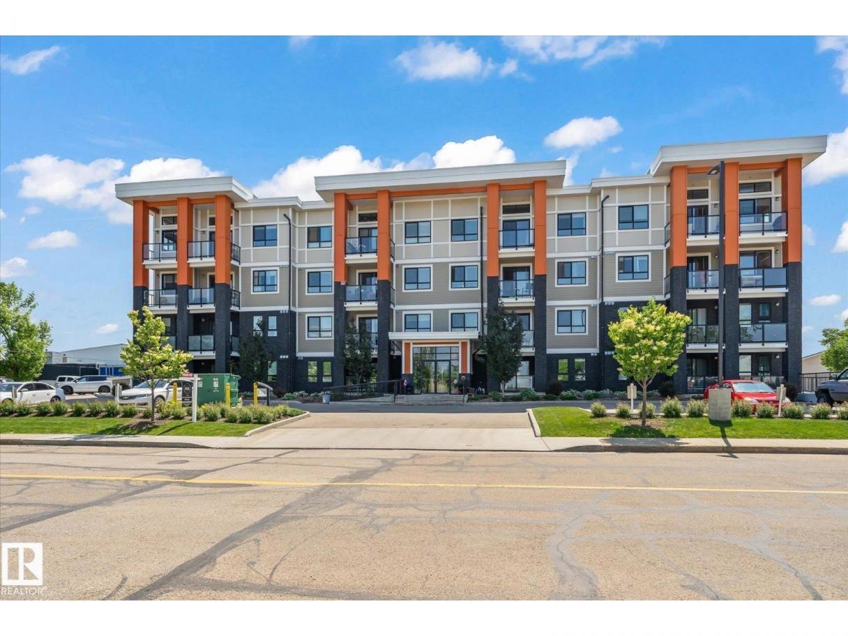 Welcome to The Ridge! Fantastic views in a highly central location this IMMACULATE, freshly painted TOP-FLOOR 2 bedroom/1 bathroom condo blends comfort w/modern elegance in the heart of Devon—steps from schools, parks, shops, restaurants, outdoor pool, arena, & Devon's scenic river valley trail system. Light & bright, this unit offers an open-concept layout complete w/9' ceilings & 12' vaulted sections, vinyl plank flooring, quartz countertops, featuring a crisp light toned kitchen w/tile backsplash, all appliances & peninsula w/eating bar. 4 pce bathroom conveniently located directly off primary suite. In-suite laundry room w/stackable washer/dryer & plenty of extra storage space. Enjoy a spacious north-facing covered balcony w/N.Gas BBQ hookup. Unit is roughed-in for A/C, includes heat/water & comes w/TITLED underground parking stall #10 complete w/secure storage cage. Truly a RARE find! Don't miss your opportunity to view this beautiful home! (id:6769)