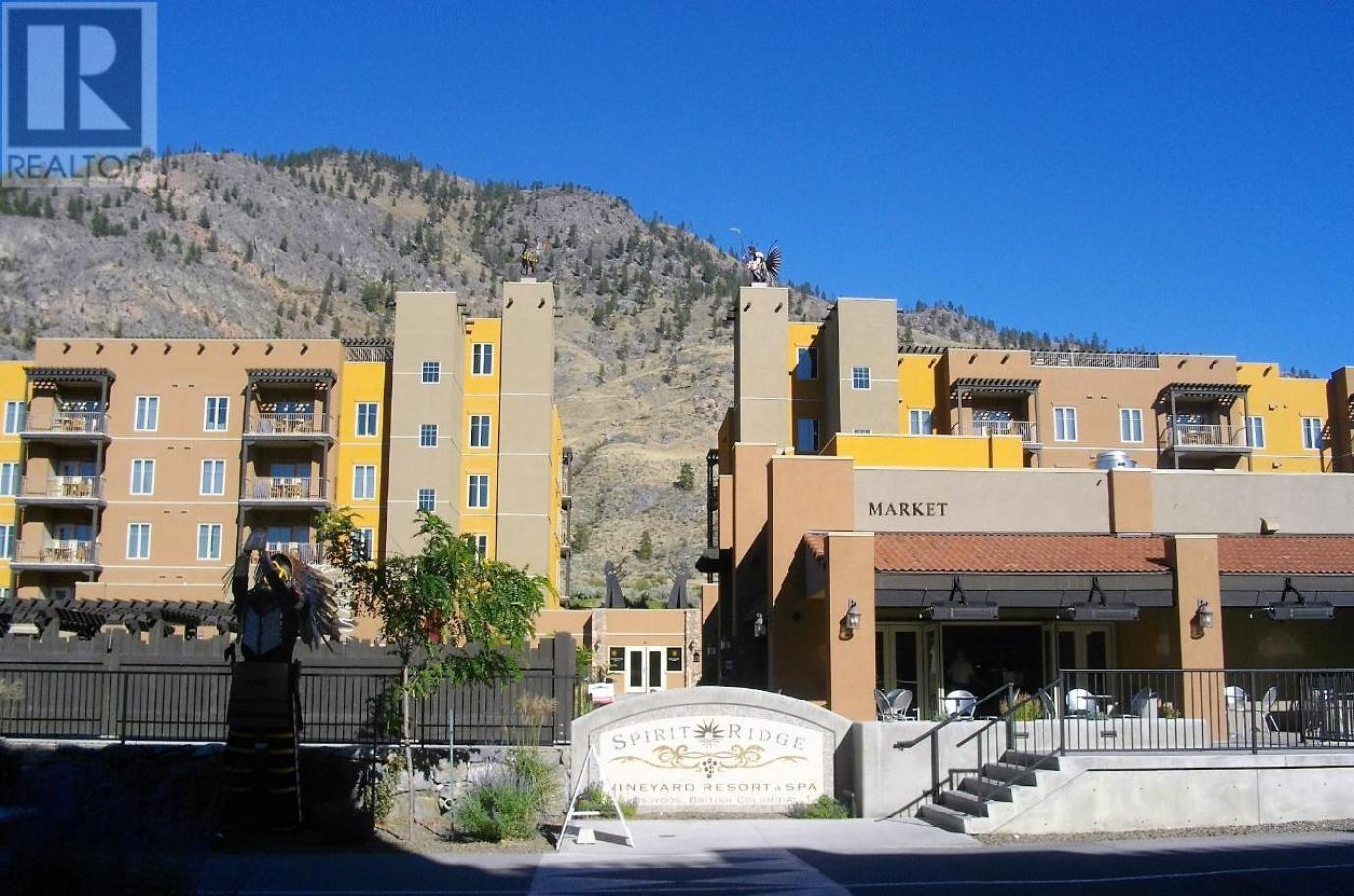 Full ownership of a 1 bdrm 2Q, 1 bath suite in Spirit Ridge Resort & Spa. Corner top floor suite overlooking the golf course, vineyards and the lake. Resort amenities include a restaurant and coffee shop, recreation centre, spa, two outdoor pools, waterslide, hot tub, conference centre & housekeeping. Golf is just steps away along with Nk'Mip Winery and the Desert Cultural Centre. Just a short walk to the beach, dock and water sports. Property is not freehold strata, it is a pre-paid crown lease on native land with a Homeowners Association. HOA fees apply. ""Motivated Seller"" Call for all the details!! (id:6769)