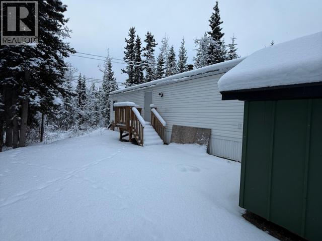 Welcome to 137 Otter Crescent -- a fantastic opportunity in the heart of Haines Junction! Nestled in a quiet, cozy neighbourhood, this property features a well-kept 1995 mobile home on a double-wide 0.304 acre lot, potentially subdividable! This lot offers a great location, a bit of privacy, and endless potential, all within easy walking distance to the local school, shops, and everyday conveniences. Key upgrades include a newer furnace (2014), roof (2015), a wood stove installed in 2023 as well as a storage shed, and brand-new entry stairs on both sides in 2025. The partially treed lot provides a great balance of sunlight and natural shade, with room to expand, garden, or develop further. While the home could use a little TLC and new flooring, it presents an excellent opportunity for buyers looking to invest, start fresh, or secure a comfortable home base in one of Yukon's most picturesque communities. (id:6769)