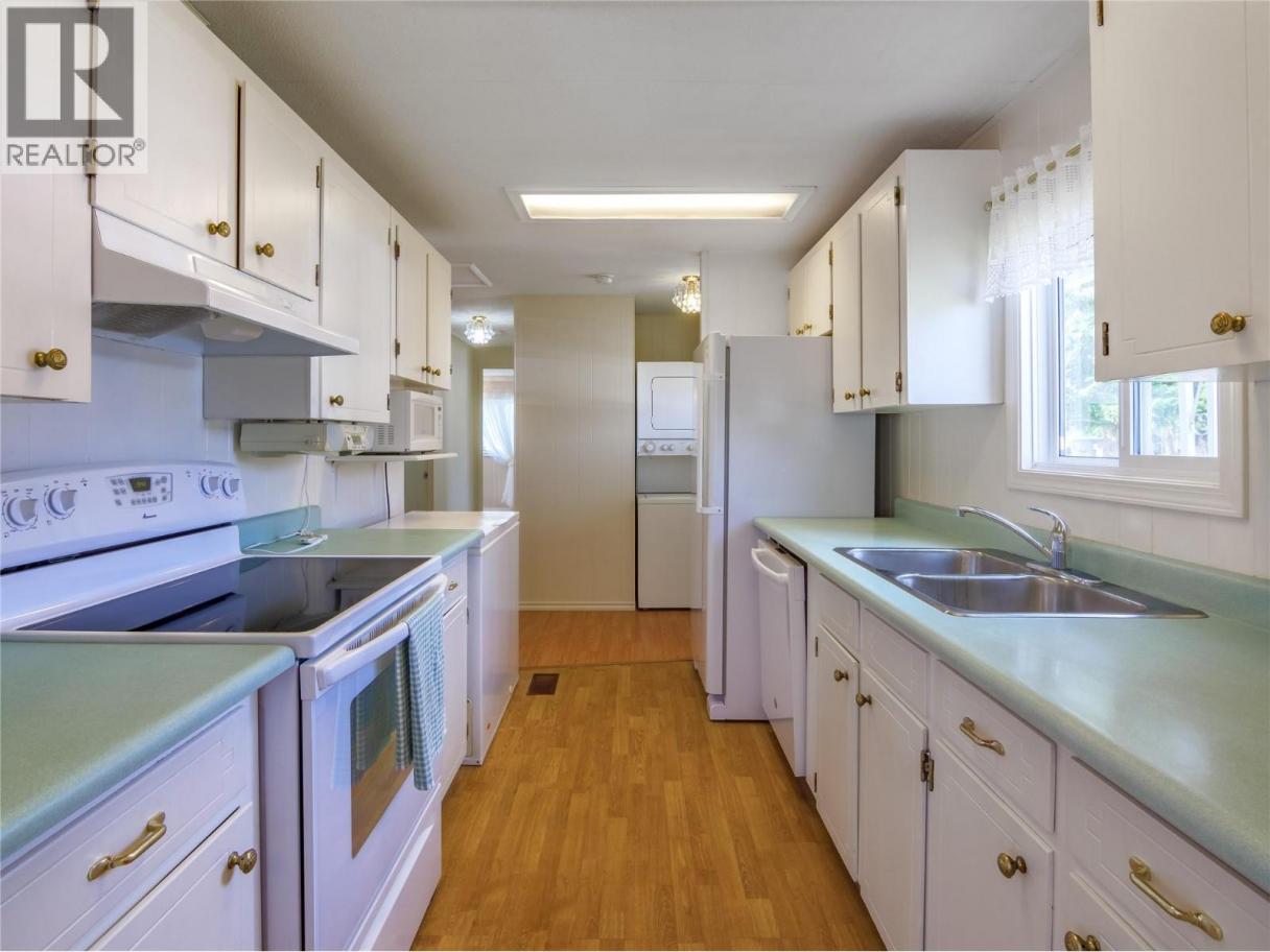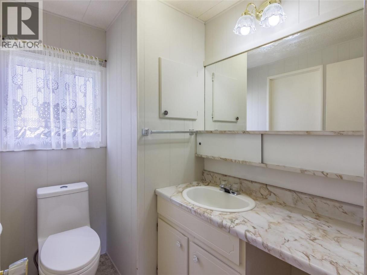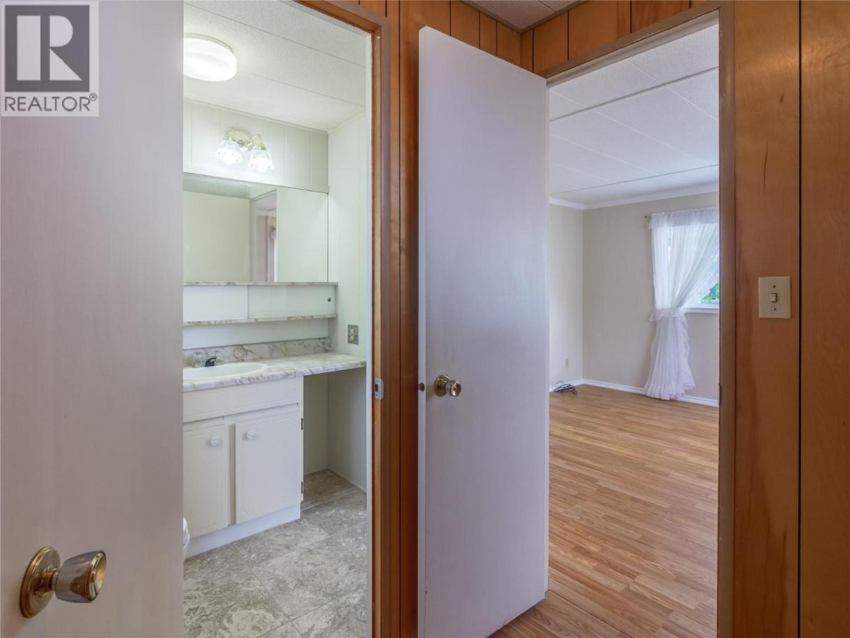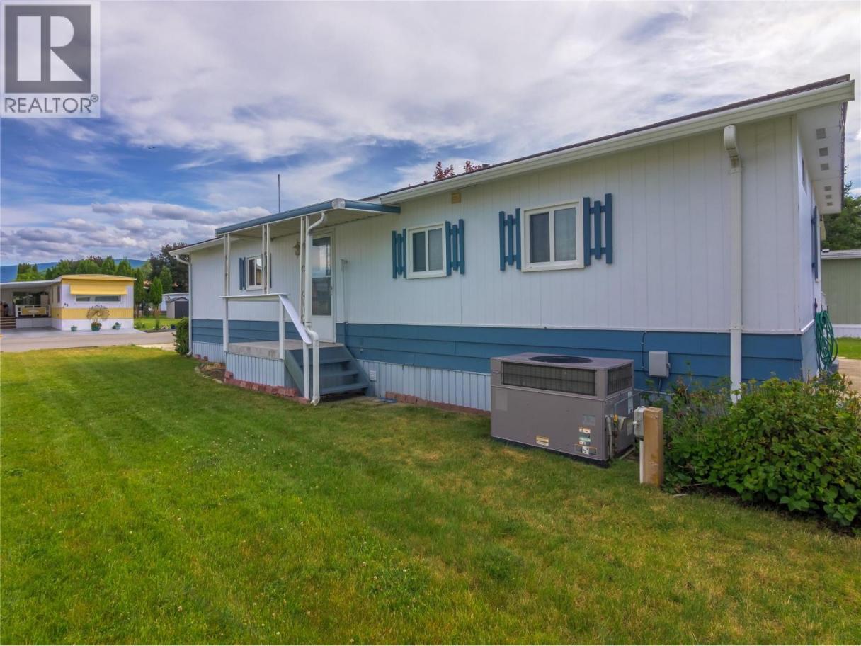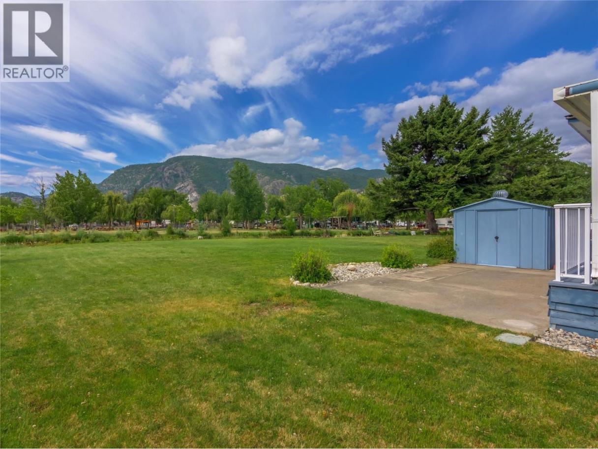 If you’re ready to downsize without compromise, here is your perfect retirement spot at Figueras Mobile Home Park. This quiet and well run MHP is highly desirable for many reasons, including its location at the end of a short street, walking distance to Skaha Lake and parks, near shops and amenities, and backing onto the peaceful Oxbows. This unit specifically has an enviable location right along the Oxbow, facing South and with a HUGE yard space you can really enjoy your outside space and have views of the lily pads and wildlife while you’re at it. The unit has been meticulously cared for and owned by the same person for a very long time. As you enter into the bright living room you’ll notice the easy care laminate flooring, spacious living room and large dining room that are open plan but separate spaces, and windows that were replaced with vinyl in 2006. The bright white kitchen has lots of cupboard and counterspace, room for a fridge and sperate freezer, and access out the side door. The laminate floors continue throughout the large second bedroom, and the main bathroom has had lots of updates and now features a huge mobility friendly walk-in shower with a seat. The spacious primary bedroom has its own two piece ensuite and a walk in closet and plenty of room for all your furniture. The unit is finished off with a huge covered deck facing East to beat the heat, the massive back yard, a back patio and large storage shed and driveway parking. Figuieras MHP is for ages 55+ (id:6769)