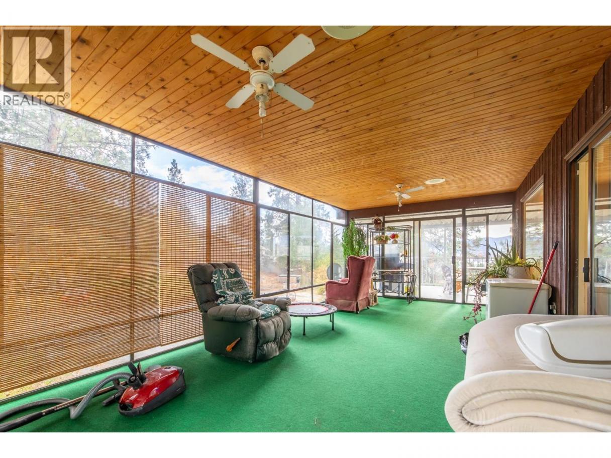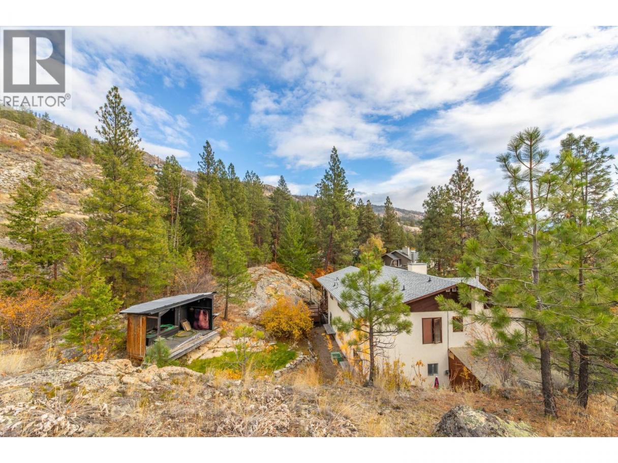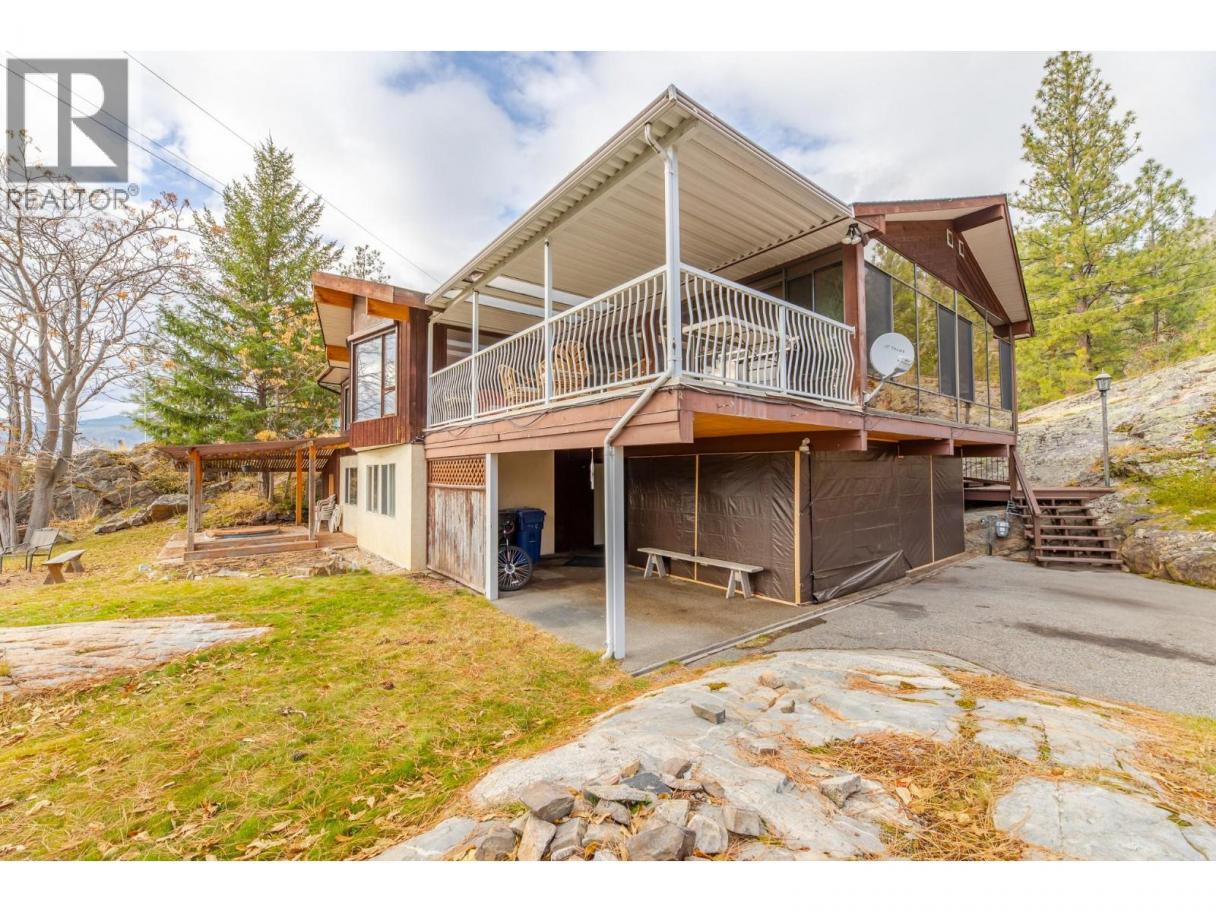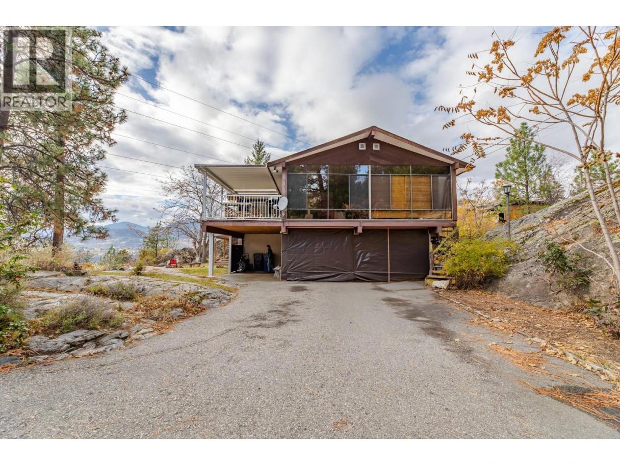 Perched at the end of a quiet cul-de-sac in sought-after Heritage Hills, this private 4-acre property offers breathtaking views of Skaha Lake and a rare natural landscape featuring striking rock outcroppings. A private driveway leads you to the home’s entrance, tucked into a serene and beautifully secluded setting. Originally built in 1982, the spacious home features a well-designed floor plan with vaulted ceilings and a cozy fireplace in the living room. The main level includes three bedrooms, while the lower level offers two additional bedrooms, a large family room with a gas fireplace, and walk-out access. An enclosed entertainment deck provides the perfect space for year-round enjoyment, and a double carport adds to the convenience. Zoned to allow a second dwelling or a legal secondary suite, this property presents an exceptional opportunity for customization or future development. Direct access to over 150+ acres of adjacent Nature Trust land with hiking trails makes this a haven for nature lovers. (id:6769)