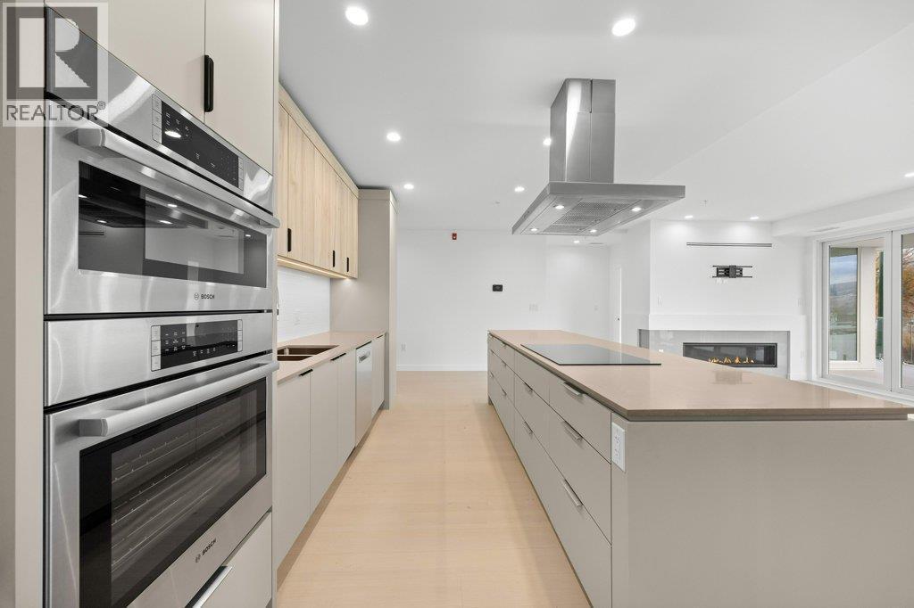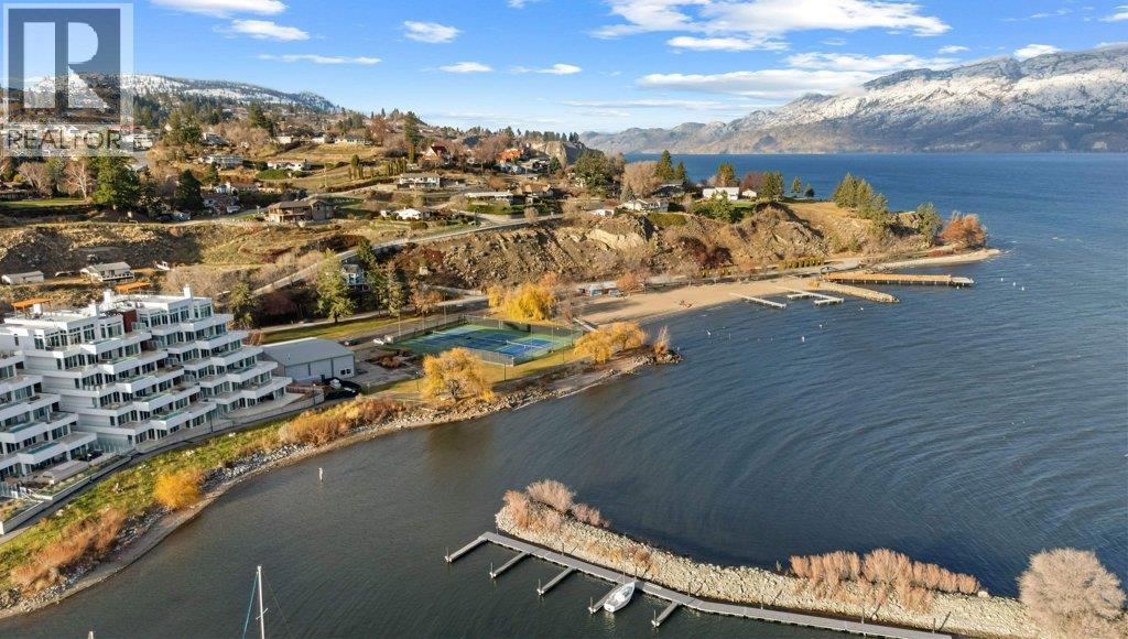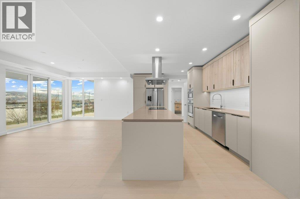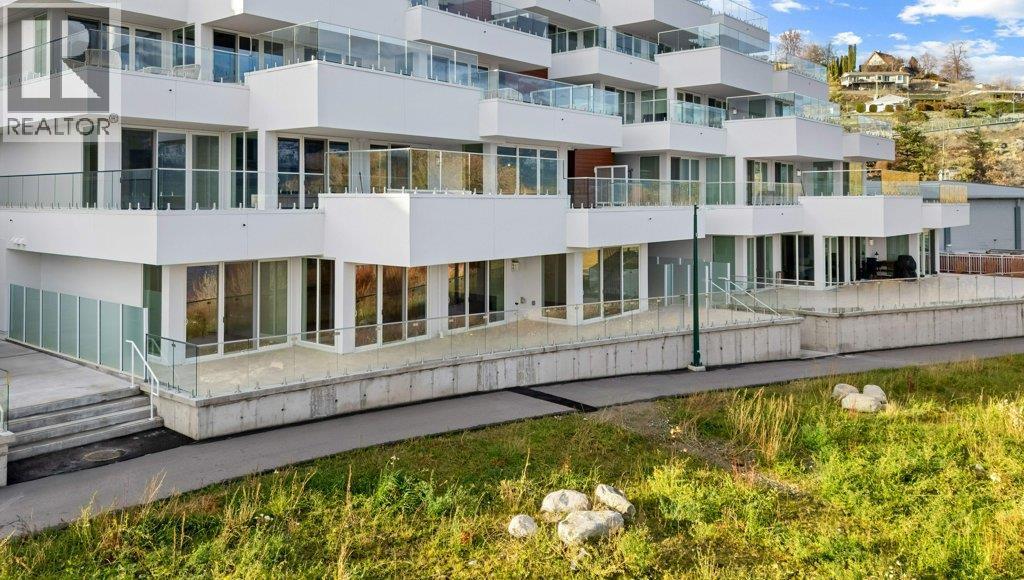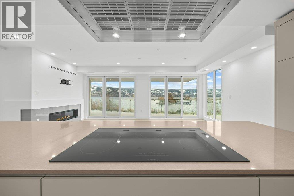 This gorgeous, luxurious, brand-new ground level lake front home awaits you, with expansive views that dreams are made of. Lavish 2 Bedroom & Den, 1829 sq ft, high ceilings, open floor plan, lovely gas fireplace for cozy winter nights, upgraded hardwood & tile throughout, quartz countertops: This Riviera living style blends coastal chic with Mediterranean elegance. Experience joyful meal prep & entertaining with the Bosch appliance package, oversized island, ample cabinetry & lake views galore. Enjoy spectacular Okanagan outdoor living on the 731 sq ft porcelain paver deck with NG BBQ outlet. The laundry room is spacious - includes countertop, sink, cabinetry, & large adjoining pantry. The mechanical room has a NG forced air furnace & there is central air, for hot summer nights. The upgraded electrical package accommodates ceiling fans if desired, & rear wall speakers to enjoy true surround sound. Construction of this complex is steel & concrete – only the best will do! 2 secure parking stalls are included in the heated garage, the breezeway from parkade to front door is tiled with luxury porcelain pavers, and there is a 260 sq ft, private & secure, heated storage unit included. The Oasis is just steps away from several beaches, water park, dog park, extensive waterfront walking paths, & upscale Shaughnessy’s Cove, for dining out with family and friends. Dreams can come true – your Oasis awaits you! Please contact your favourite Realtor to view. Measurements by iGuide. (id:6769)