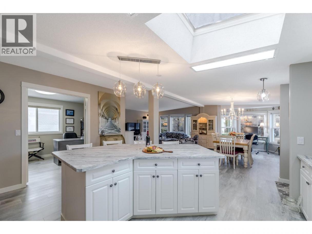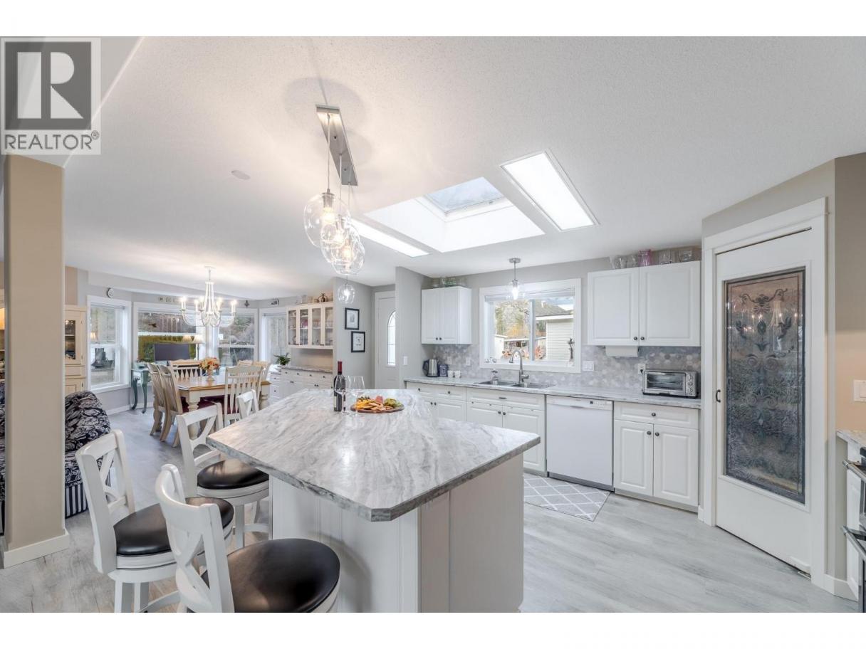 Wake up where the river whispers and the valley stretches wide. In Deer Park Estates, this rare double wide invites you to own the land beneath your feet and slow life down just enough to enjoy it. With 1,521 sq ft, this beautifully updated 3 bedroom, 2 bathroom home opens into a bright, open concept living space finished with new vinyl flooring and thoughtful hexagon details, from the marble kitchen and laundry backsplash to the patterned pavers in the backyard. Step outside and feel the calm of a quiet riverside neighbourhood, where morning walks follow the trail to the dam and evenings are framed by views of the McIntyre Bluffs. This is bare land strata living at its best, with an exceptionally low $55 per month strata fee that includes common area maintenance and access to a welcoming clubhouse featuring pool tables, a meeting space, and a full kitchen with deck and BBQs, perfect for hosting friends and neighbours. RV or boat storage is available within the park, and a fenced dog park adds to the lifestyle appeal. Rarely does a double wide manufactured home on owned land come available in Deer Park Estates, especially one that blends space, updates, scenery, and quiet living so effortlessly. This is more than a home, it is a place to exhale, settle in, and enjoy the Okanagan way of life. (id:6769)