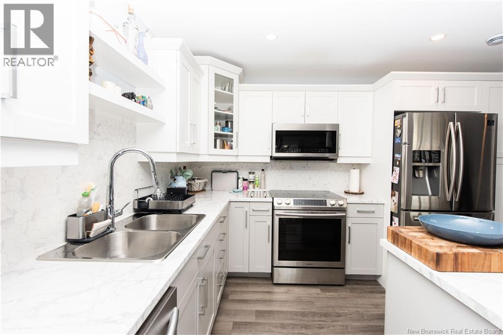 Welcome to 24 Satleville Crescent! This home is only 6 years old, in pristine condition and still feels like it is brand new! Located in the Carriage Hill Estates subdivision in Riverview East. Close to schools, parks, walking trails and not far from downtown Moncton. The modern open concept design with attached garage will not disappoint! The kitchen features beautiful white cabinets, large center island, high end stainless steel appliances and a tile backsplash, giving this space a nice sophisticated feel. The kitchen is open to the living room & dining area, making it perfect for entertaining. The mini split heat pump provides heating and cooling for this space. New plank floors were installed on this level in 2021. Patio doors off the dining area lead to a back deck. A 2 piece bath completes this level. The second floor features 3 bedrooms (one with a built in wardrobe) including the primary bedroom which has a walk-in closet and 4pc ensuite with double vanity. The 4pc family bath and laundry can also be found on the second floor. The basement has been fully finished providing loads of additional living space with a 4 piece bath and a large family room! Outside the yard was regraded in 2021. The paved driveway was made extra wide to accommodate more vehicles. If you are looking for a move in ready home that feels like new then you must check this one out! Call today to book a viewing! (id:6769)