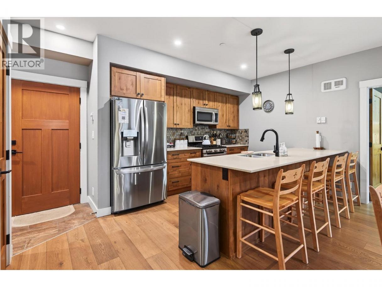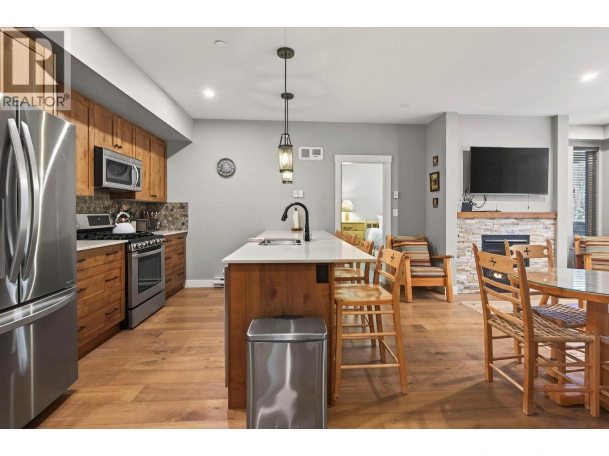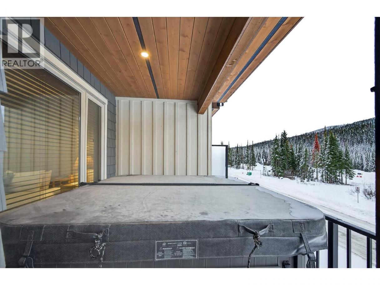 This 2 bedroom, 2 bathroom end unit townhome offers modern mountain living in the desirable East Village at Sun Peaks. This entry level home provides true ski in and ski out access near both the Orient and Morrissey chairlifts and is located directly opposite the future East Village development. Built in 2019, the upper level layout features an open concept design with large windows that bring in plenty of natural light. The living area includes a gas fireplace and opens to a south facing balcony with a private hot tub and room for a small patio set. The kitchen is finished with soft close cabinetry, stone countertops and stainless steel appliances. The primary bedroom includes a walk through closet leading to a four piece ensuite, while the second bedroom is conveniently located near the main three piece bathroom. A full size stacking washer and dryer are included in the unit. This townhome comes fully furnished and is ready to enjoy. A heated single car garage provides secure parking and storage, along with one additional parking stall out front. With year round access to skiing, biking, hiking and a short walk to the village, this property is ideal for full time living, a vacation getaway or a rental investment in a growing resort community. (id:6769)