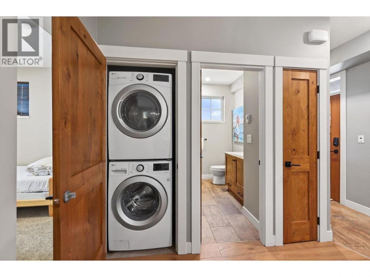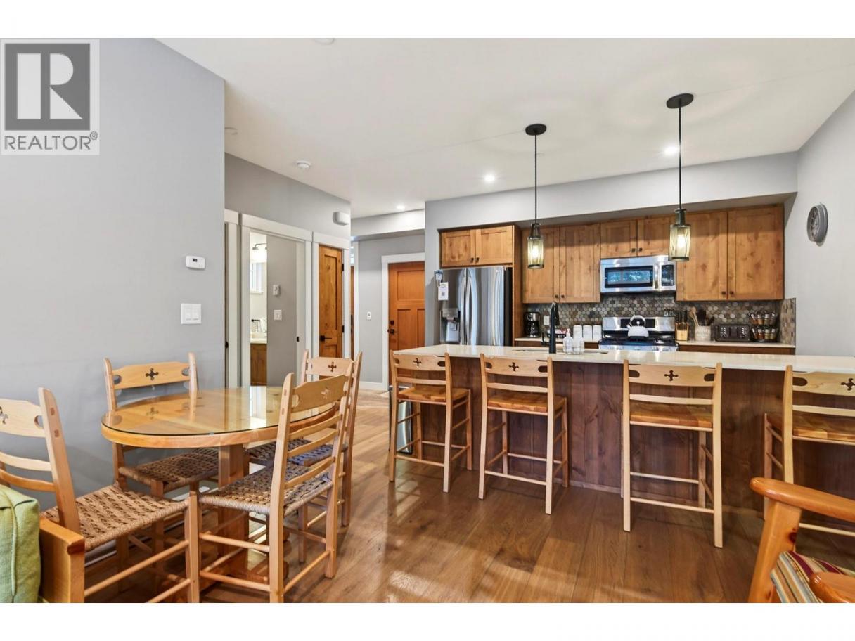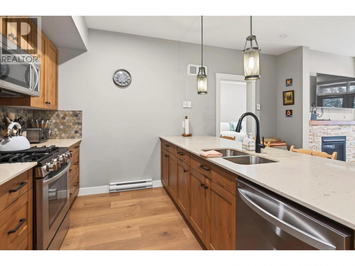 This 2 bedroom, 2 bathroom end unit townhome offers modern mountain living in the desirable East Village at Sun Peaks. This entry level home provides true ski in and ski out access near both the Orient and Morrissey chairlifts and is located directly opposite the future East Village development. Built in 2019, the upper level layout features an open concept design with large windows that bring in plenty of natural light. The living area includes a gas fireplace and opens to a south facing balcony with a private hot tub and room for a small patio set. The kitchen is finished with soft close cabinetry, stone countertops and stainless steel appliances. The primary bedroom includes a walk through closet leading to a four piece ensuite, while the second bedroom is conveniently located near the main three piece bathroom. A full size stacking washer and dryer are included in the unit. This townhome comes fully furnished and is ready to enjoy. A heated single car garage provides secure parking and storage, along with one additional parking stall out front. With year round access to skiing, biking, hiking and a short walk to the village, this property is ideal for full time living, a vacation getaway or a rental investment in a growing resort community. (id:6769)