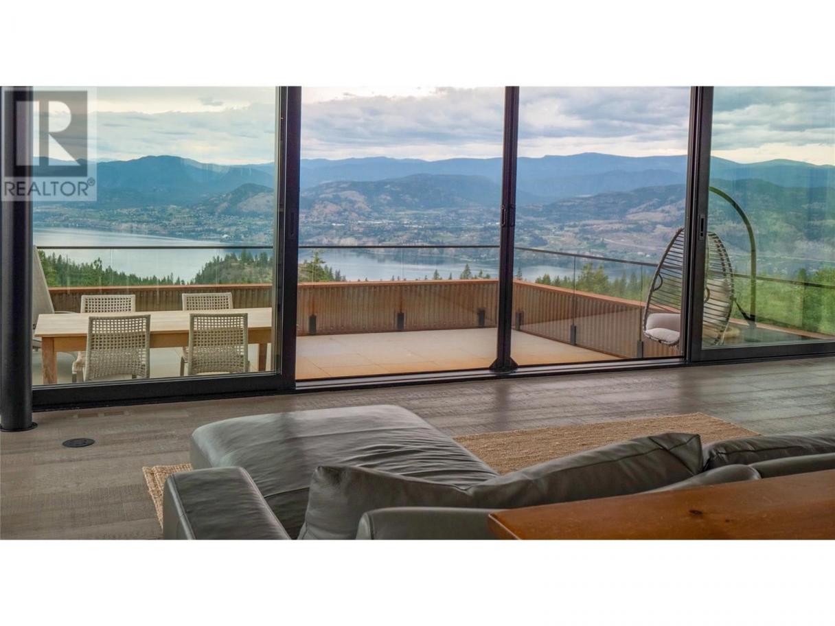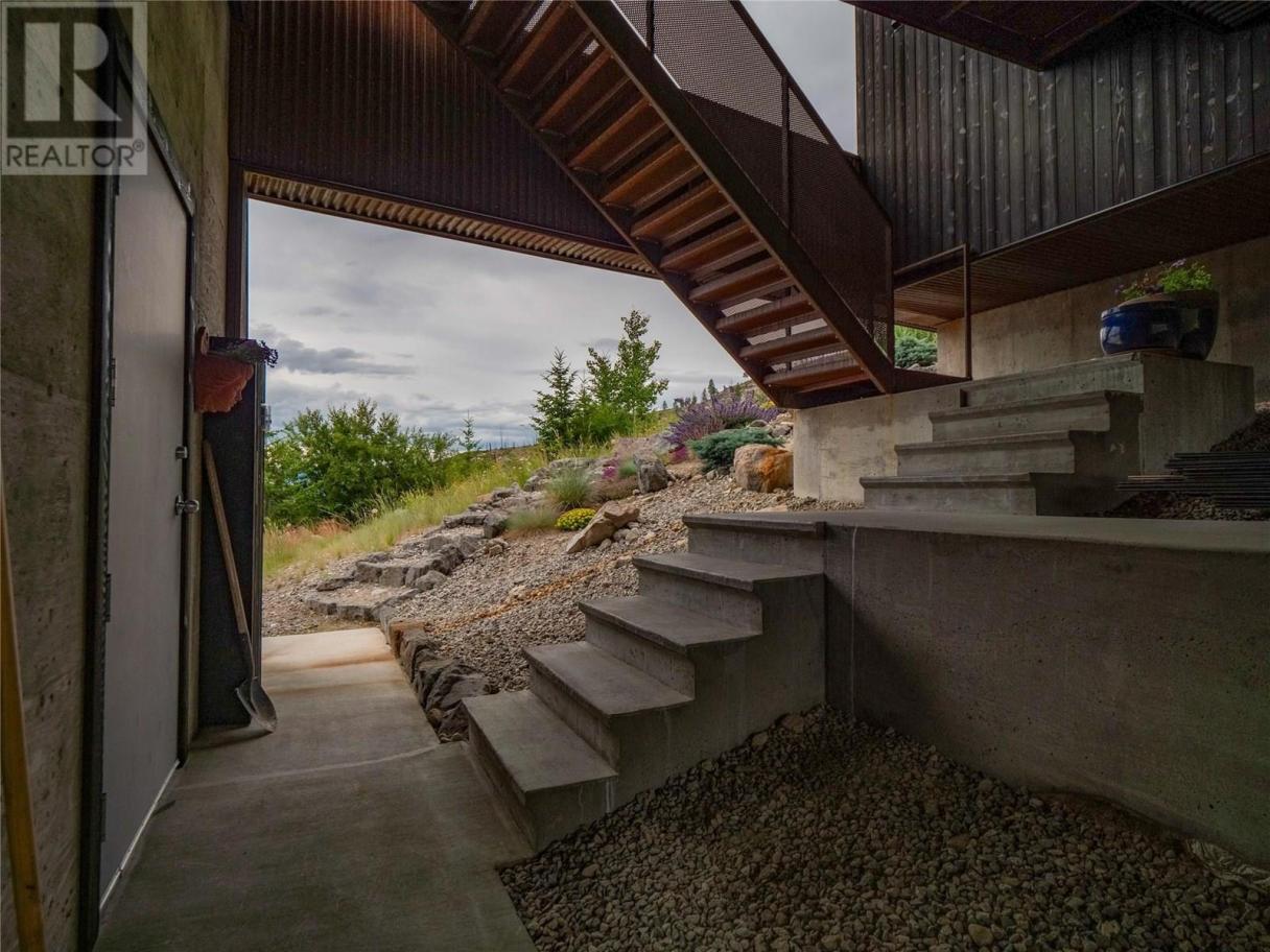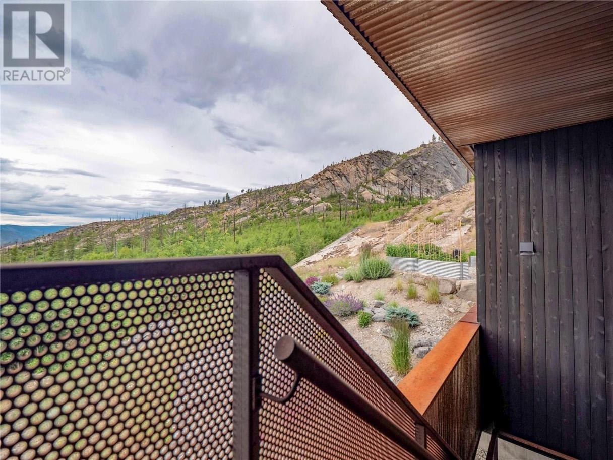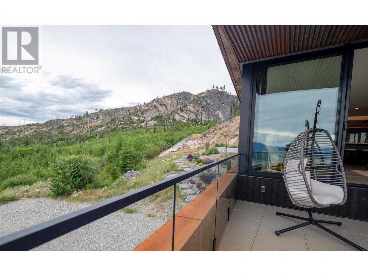 Set high above the valley floor, where eagles glide and panoramic views unfold to the distant horizon, lies a private sanctuary seamlessly integrated into the rugged terrain. Carved into rocky outcrops and overlooking sweeping lake vistas, this extraordinary residence offers a rare harmony between natural majesty and architectural brilliance. Even the sky seems bigger and bolder up here! Just beyond Naramata, you ascend the winding road towards Chute Lake to this masterpiece, conceived and brought to life by the renowned Omar Gandhi Architects. Every detail reflects a deep reverence for the surrounding landscape. Anchored firmly into the hillside, the structure rises organically from the earth. The lower level and garage support the elevated main living spaces, where floor-to-ceiling glass and expansive sliding doors erase the boundaries between inside and out. To the south and west, uninterrupted views of the Okanagan Valley command attention, while to the north, the property is bordered by Okanagan Mountain Provincial Park. Proximity to the protected lands ensures lasting privacy and tranquility. (id:6769)