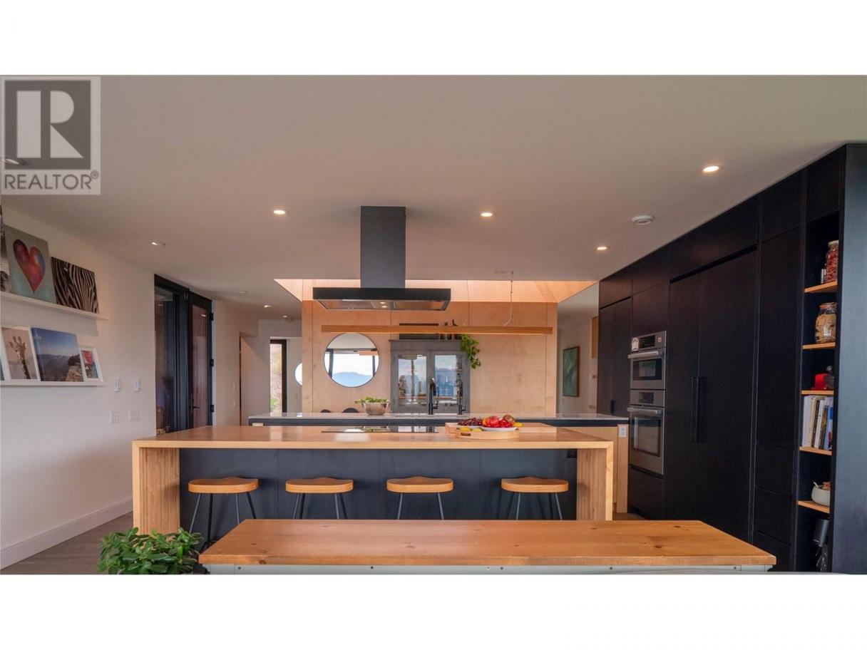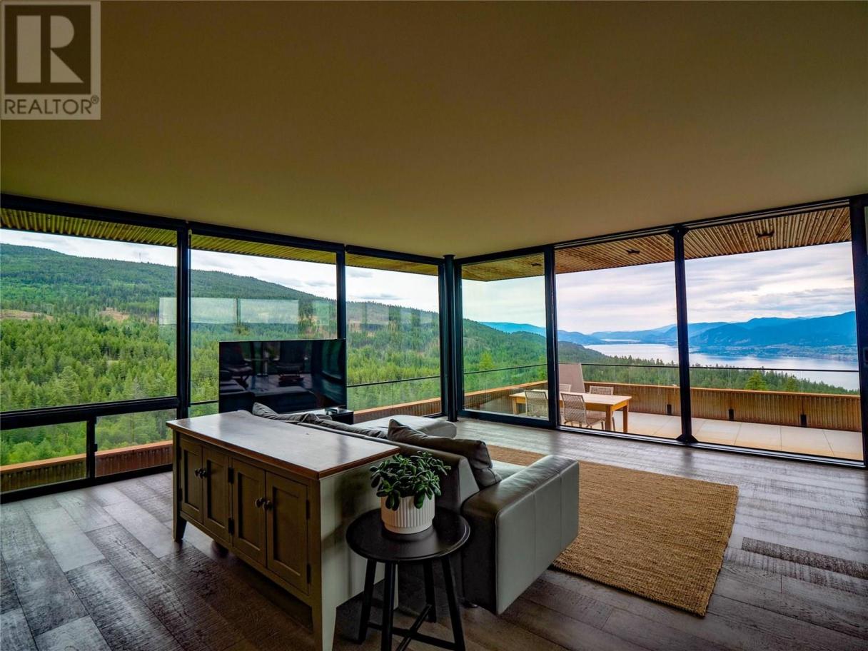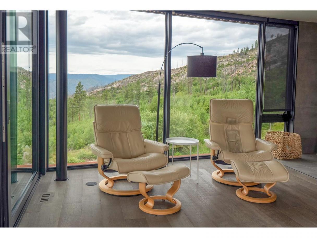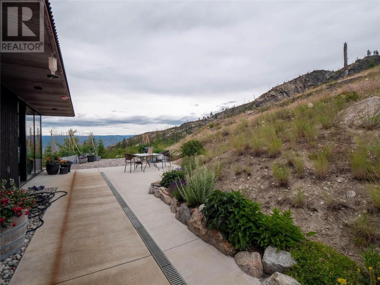 Set high above the valley floor, where eagles glide and panoramic views unfold to the distant horizon, lies a private sanctuary seamlessly integrated into the rugged terrain. Carved into rocky outcrops and overlooking sweeping lake vistas, this extraordinary residence offers a rare harmony between natural majesty and architectural brilliance. Even the sky seems bigger and bolder up here! Just beyond Naramata, you ascend the winding road towards Chute Lake to this masterpiece, conceived and brought to life by the renowned Omar Gandhi Architects. Every detail reflects a deep reverence for the surrounding landscape. Anchored firmly into the hillside, the structure rises organically from the earth. The lower level and garage support the elevated main living spaces, where floor-to-ceiling glass and expansive sliding doors erase the boundaries between inside and out. To the south and west, uninterrupted views of the Okanagan Valley command attention, while to the north, the property is bordered by Okanagan Mountain Provincial Park. Proximity to the protected lands ensures lasting privacy and tranquility. (id:6769)