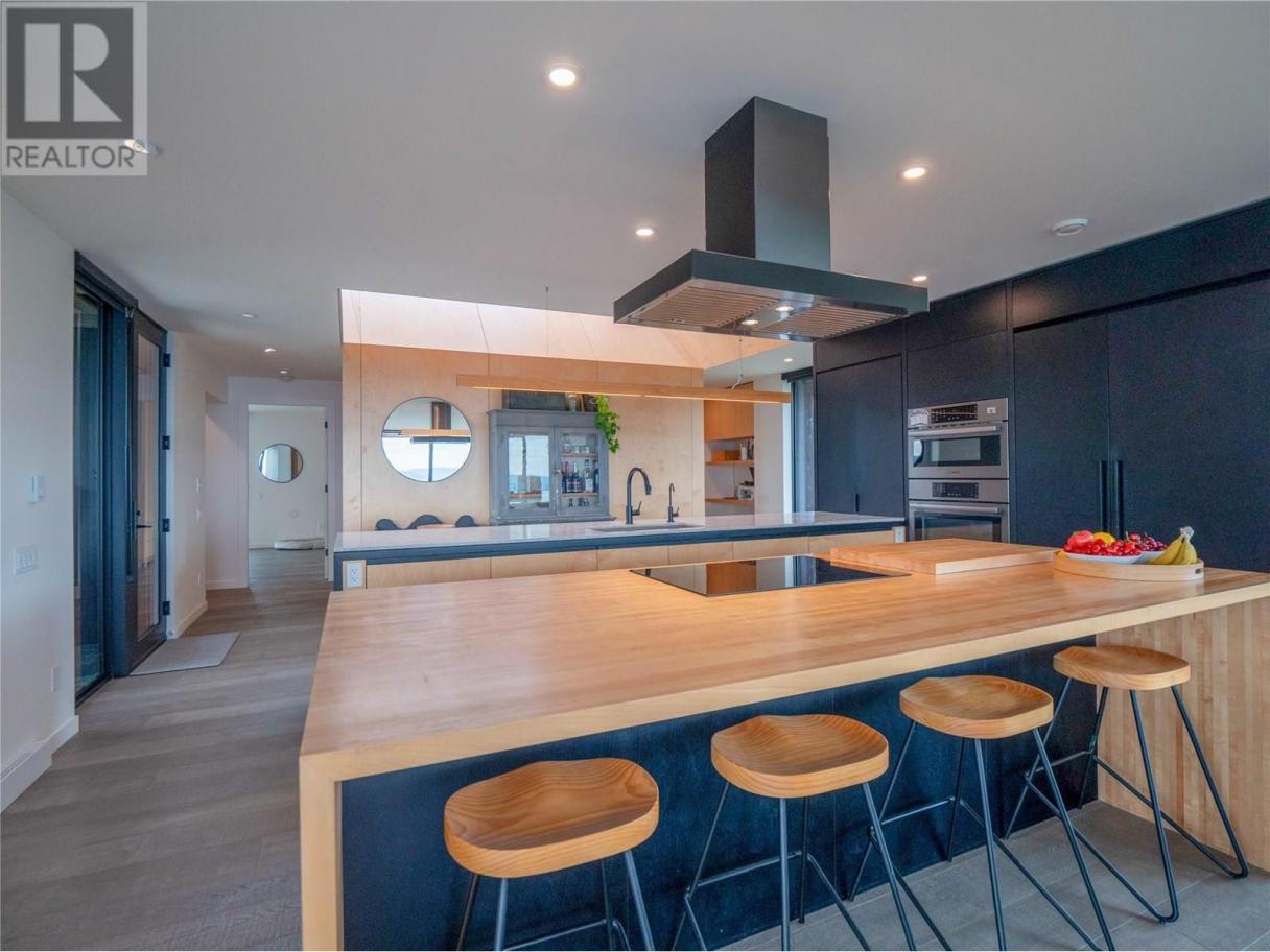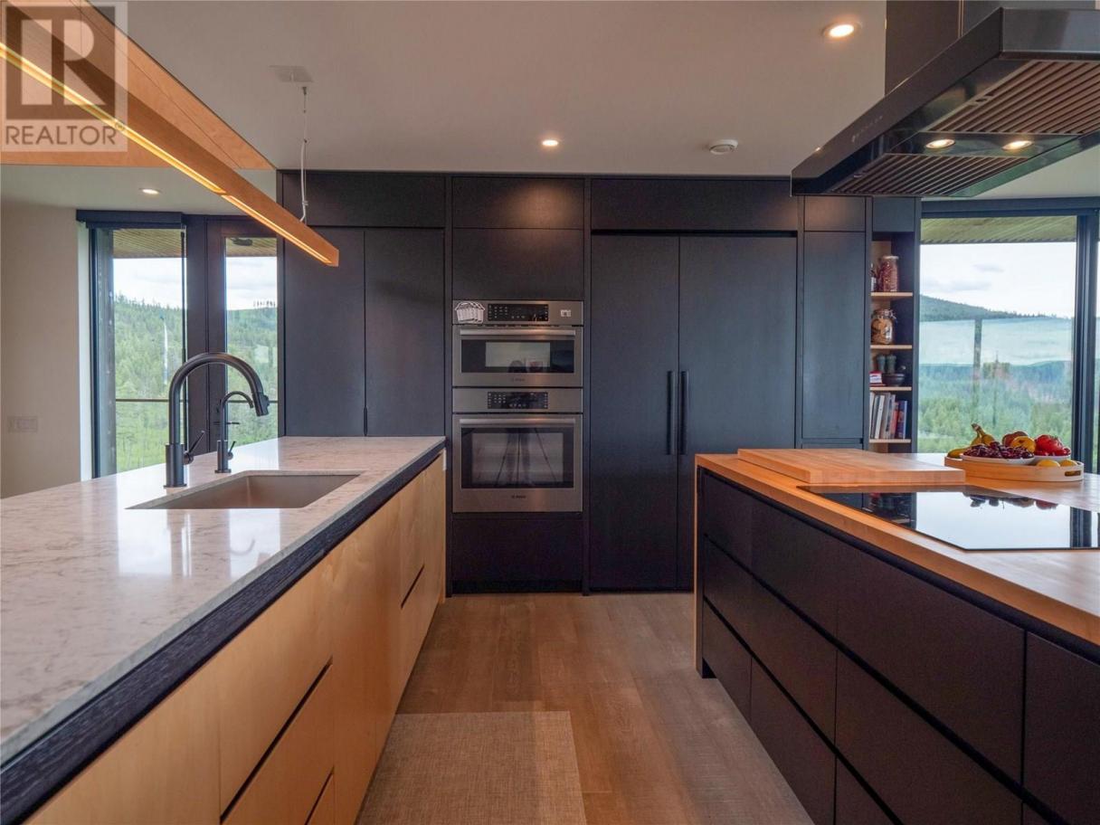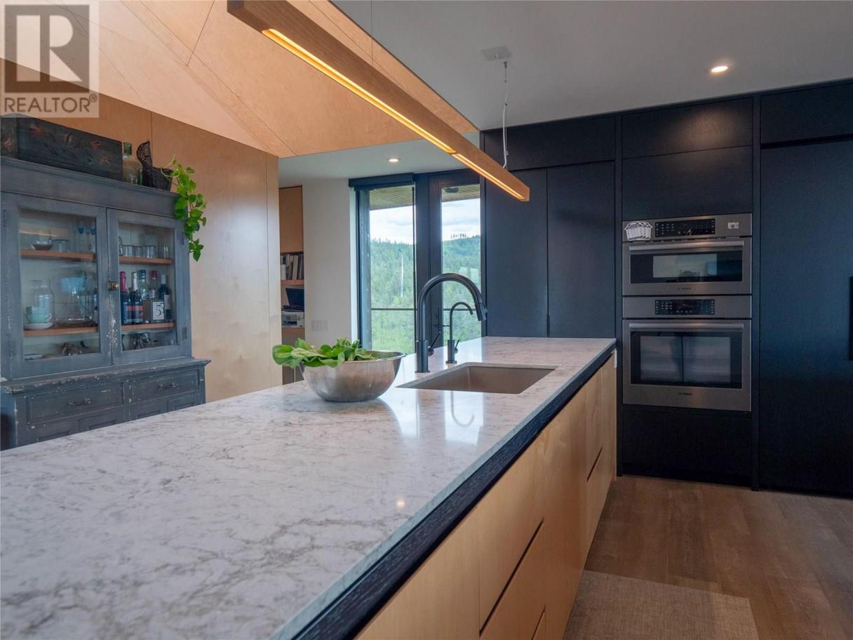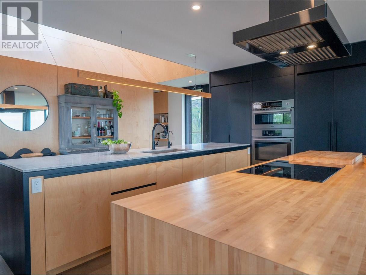 Set high above the valley floor, where eagles glide and panoramic views unfold to the distant horizon, lies a private sanctuary seamlessly integrated into the rugged terrain. Carved into rocky outcrops and overlooking sweeping lake vistas, this extraordinary residence offers a rare harmony between natural majesty and architectural brilliance. Even the sky seems bigger and bolder up here! Just beyond Naramata, you ascend the winding road towards Chute Lake to this masterpiece, conceived and brought to life by the renowned Omar Gandhi Architects. Every detail reflects a deep reverence for the surrounding landscape. Anchored firmly into the hillside, the structure rises organically from the earth. The lower level and garage support the elevated main living spaces, where floor-to-ceiling glass and expansive sliding doors erase the boundaries between inside and out. To the south and west, uninterrupted views of the Okanagan Valley command attention, while to the north, the property is bordered by Okanagan Mountain Provincial Park. Proximity to the protected lands ensures lasting privacy and tranquility. (id:6769)