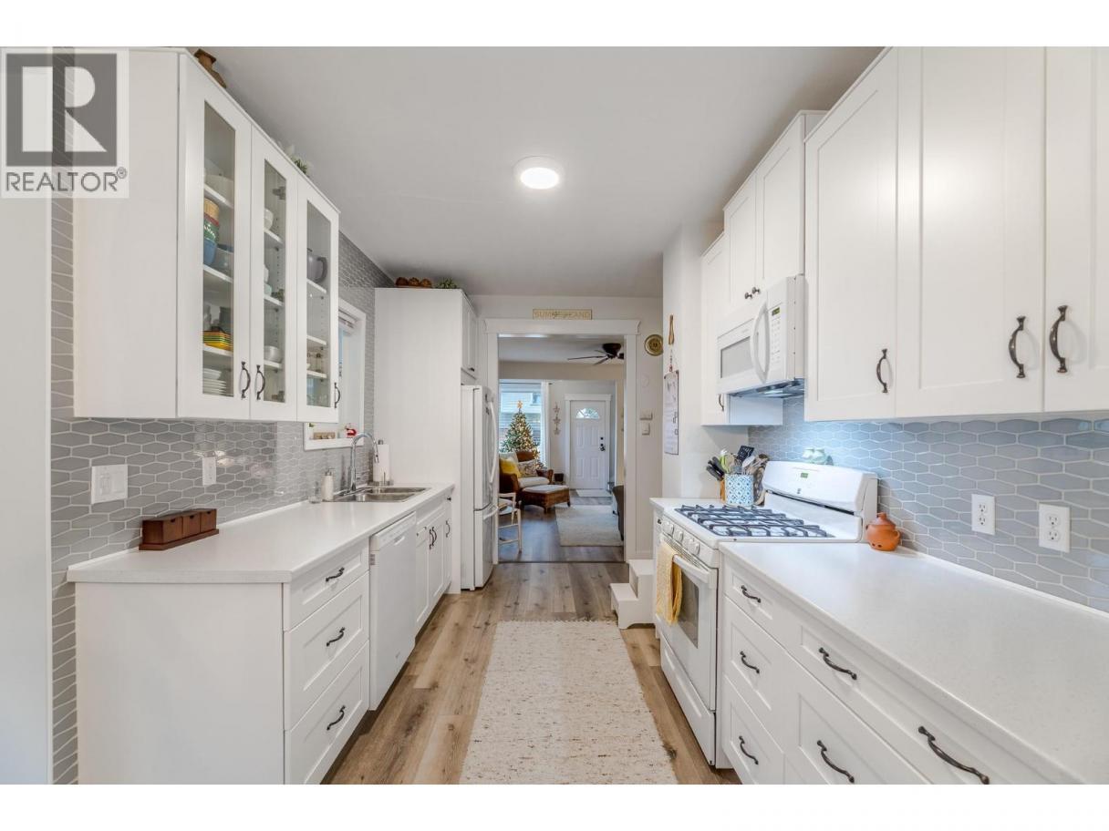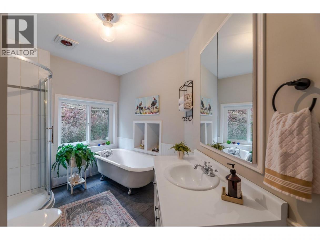 Discover the charm of Lower Town Summerland at 5706 Butler Street, a beautifully restored character home set on nearly half an acre of peaceful, manicured grounds, a block and a half from the lake. Built in 1910 and thoughtfully updated, this residence blends classic warmth with modern livability. The main floor features a bright, inviting layout with 9' ceilings, a cozy wood-stove, a dining area, a new functional galley kitchen, a spacious living room, and two comfortable bedrooms alongside a refreshed full bath. The upper level is dedicated to a private primary retreat, complete with a walk-in closet, ensuite, laundry, and a covered deck where you can take in tranquil lake views. Outside, multiple patios and decks offer endless spaces to relax or entertain, enhanced by a flowing creek that adds natural beauty to the peaceful setting. Located on a quiet no-through road just steps from the waterfront, sailing club, trail system, beaches and park, this home delivers the ideal blend of history, privacy, and Okanagan lifestyle. Also located on the school bus route. (id:6769)