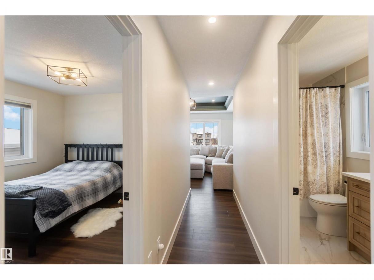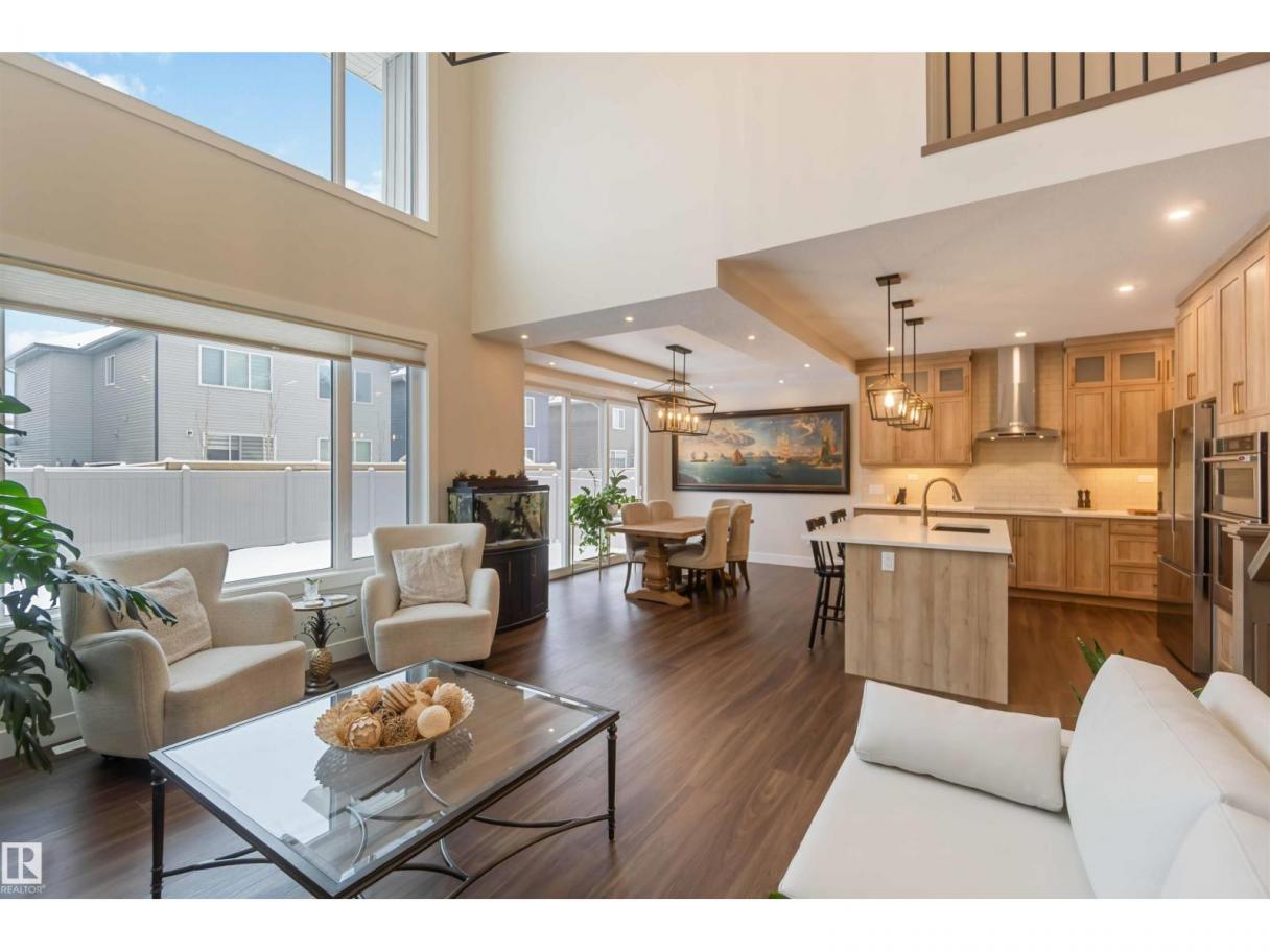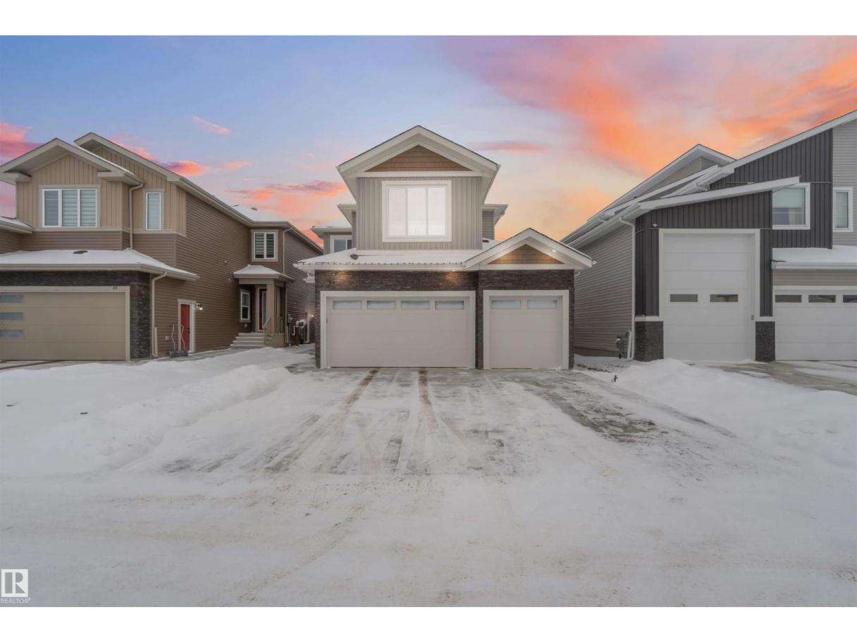 Beautiful 3-bedroom home with a triple attached heated garage and a fully finished 2-bedroom legal basement suite with separate entrance, ideal for rental income or private space for extended family. The main floor features a 2-piece bath and a striking great room with 17’ ceilings, gas fireplace, and floor-to-ceiling stone feature wall. Entry from the garage leads to a spacious mudroom and butler-style walk-through pantry connecting to the kitchen, complete with real wood cabinet boxes. Additional upgrades include light commercial–grade vinyl plank flooring, triple-pane windows with coverings, and a fully fenced backyard with low-maintenance vinyl fencing. Upstairs offers three bedrooms, including a primary suite with walk-in closet and 5-piece ensuite, a bonus room, 4-piece main bath, and convenient upper-level laundry. The legal basement suite includes its own stacked washer and dryer. Carpet is limited to the basement stairs only, ensuring easy maintenance throughout the home. (id:6769)