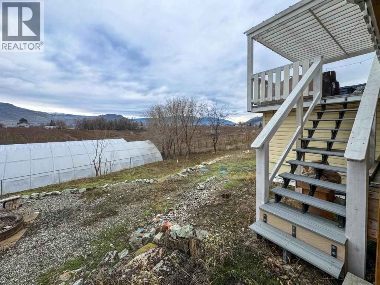 . 35 acres of rural living yet minutes away from town. Rancher with stunning views, great location for a small hobby farm. An established chicken coop and a small flock of chickens currently are maintained on the property. This walk-in rancher features a bright open design with a spacious kitchen, dining room, living room, master bedroom, bathroom, and two additional bedrooms all on the main floor. Newer large windows flood the home with natural light and offer picturesque views. Step out from the dining room onto the amazing updated deck, perfect for enjoying the spectacular views of orchards, vineyards, and the valley. The daylight basement offers versatility and can be converted into a studio suite, making it perfect for Airbnb potential. This level also includes a large flex room, laundry, bathroom, and ample storage space. Additional highlights include a workshop, fruit trees, garden shed, garage, chicken coop and plenty of extra parking for RVs or boats. The front yard is fully fenced ensures security and privacy. Large lot with lower taxes offers endless possibilities.... Call for all the details. (id:6769)