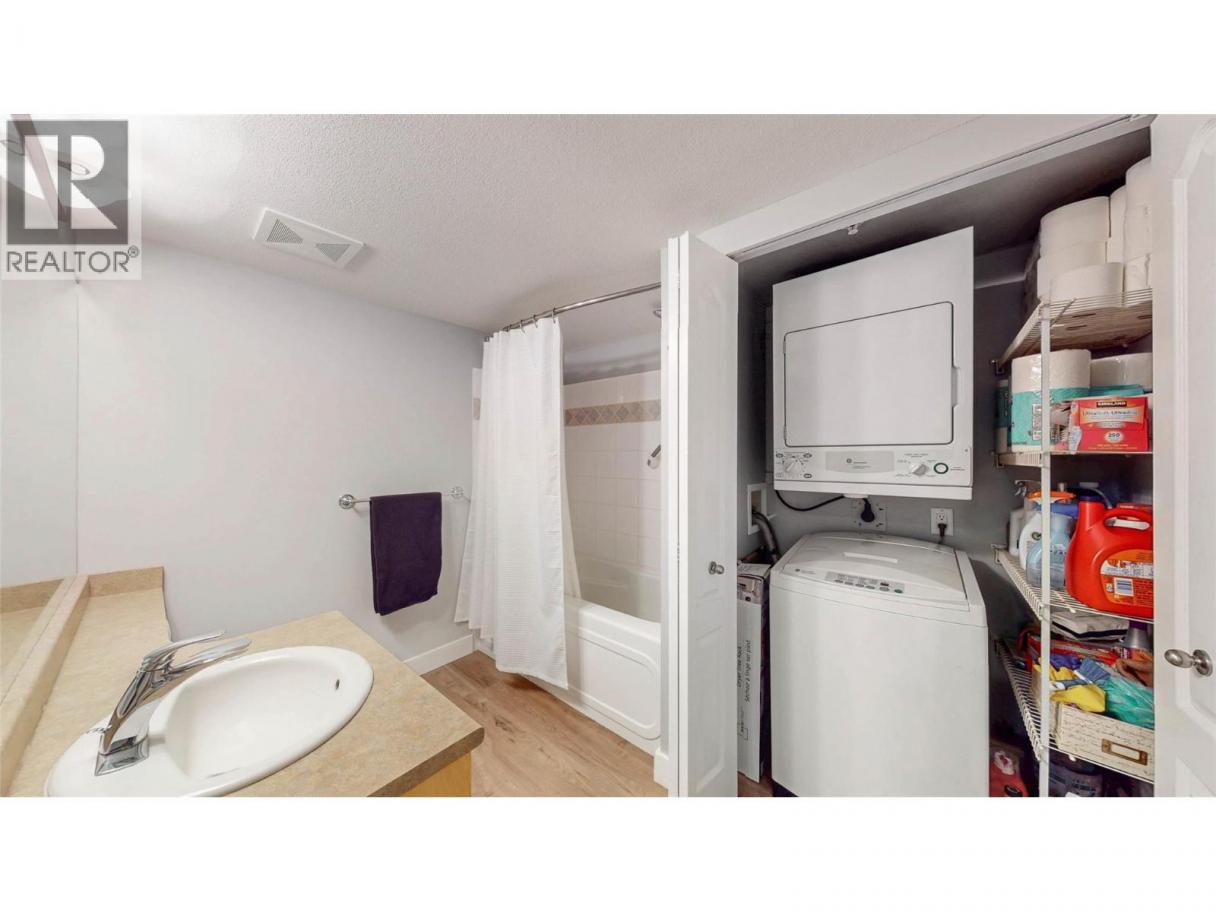 Welcome to Casa del Lago. Discover easy living in this bright and inviting 1-bedroom + den, 716 sq.ft. condo in one of Osoyoos’s most desirable waterfront communities. Step inside to find a spacious open-concept layout featuring updated laminate flooring, in-suite laundry, and plenty of storage. The kitchen boasts classic hardwood cabinetry and a thoughtfully designed bar-style counter that connects perfectly with the dining and living areas—ideal for both entertaining and everyday comfort. Wake up to the morning sun streaming through large windows and sliding glass doors. The south-facing covered patio provides vineyard and mountain views—perfect for your morning coffee or relaxing evening meals. The primary bedroom is bright and airy, with direct patio access, while the versatile den offers space for a home office or extra sleeping area for visiting guests. Casa del Lago offers resort-style amenities including a clubhouse, outdoor pool, beautifully landscaped green spaces, and private beach with dock access—perfect for enjoying the Okanagan lifestyle to the fullest. Whether you're searching for a year-round residence, a seasonal getaway, or an investment property—this is your chance to join a friendly, sought-after community on the shores of Canada’s warmest lake. *All measurements are approximate, if important buyer to verify* (id:6769)