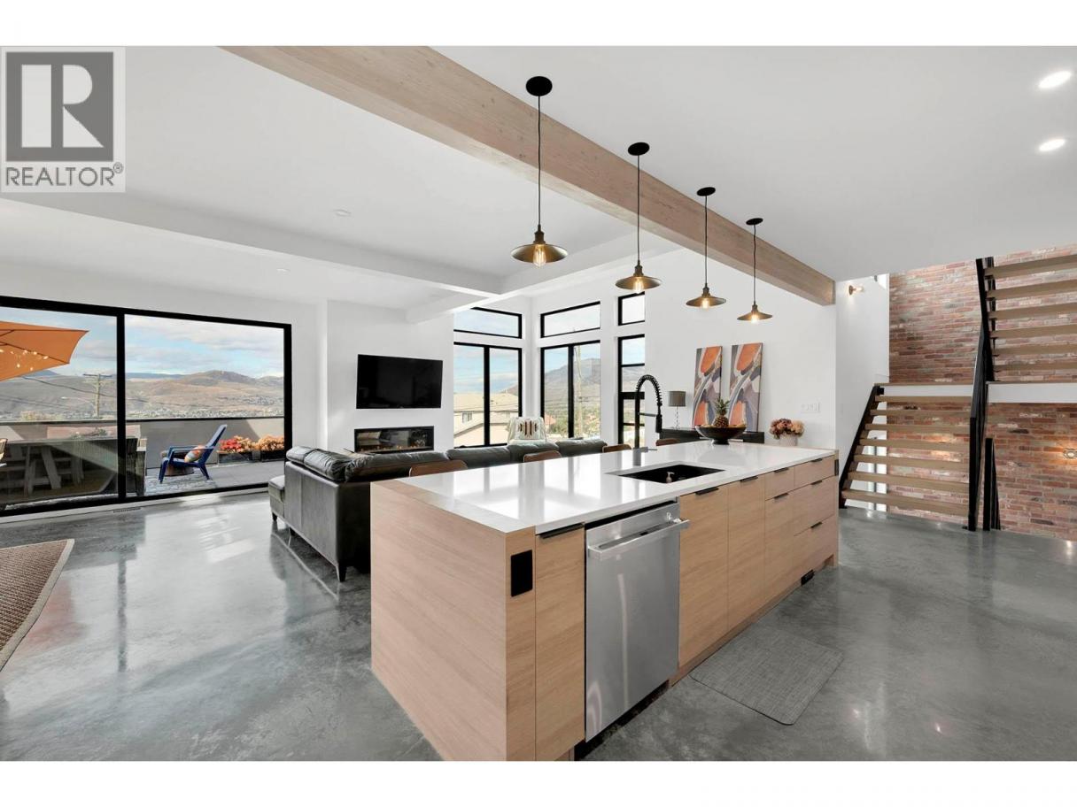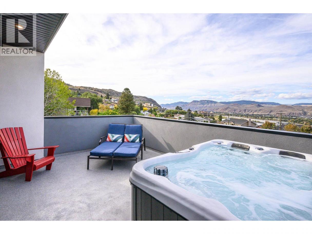 Stunning custom-built executive Sahali home offering elevated living in a prime central Kamloops location, just minutes from Thompson Rivers University and Royal Inland Hospital. This modern residence captures breathtaking views of the North and South Thompson Rivers from multiple outdoor living spaces.The main level features a bright, open-concept design with a chef-style kitchen showcasing high-end appliances, flowing seamlessly into the living and dining areas. Polished concrete floors with in-floor radiant heating add both style and comfort. Also on the main floor are the primary bedroom with ensuite and walk-in closet, powder room, laundry, and a generous butler’s pantry. Step onto the deck equipped with natural gas hookup for a BBQ. The upper level offers three spacious bedrooms, a full bathroom, and a large family or flex space opening to a second deck with hot tub and seating area. The lower level includes an additional bedroom ideal for an office or storage, radiant heat flooring, and a mechanical room with boiler, forced-air furnace, and air conditioning for year-round comfort. The lower level also has a daylight two-bedroom legal suite with in-suite laundry which is perfect for multi-generational living or provides excellent rental income. Additional features include a double garage and extra parking for suite occupants. Book your showing today to view this exceptional home, its a must see! (id:6769)