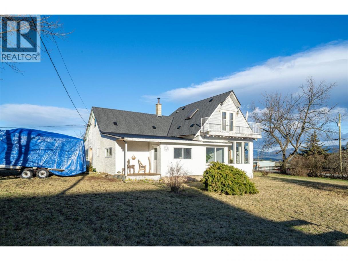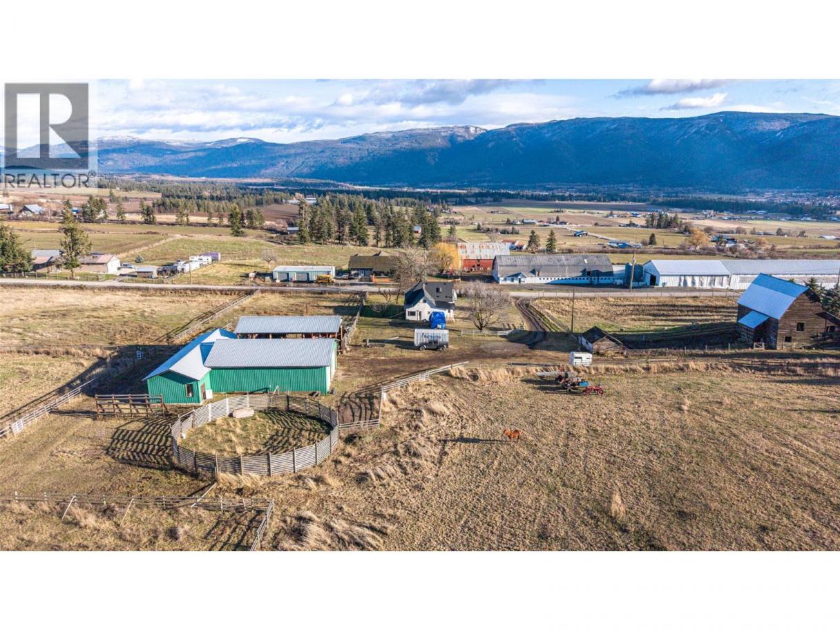 Picturesque 13.25-acre hobby farm just minutes from Armstrong! This fertile, fully perimeter-fenced property features an older 4-bedroom, 2-bathroom home with a level-entry main floor offering an open kitchen and dining area, spacious living room, and an inviting sunroom. Two bedrooms and a full bath with soaker tub complete the main level. Upstairs you’ll find the primary bedroom with 3-piece ensuite, plus a fourth bedroom. Recent updates include a new asphalt roof in 2021. The land is well-suited for agriculture and livestock, with multiple hay and horse paddocks and your own boutique vineyard planted to Foch wine grapes. Excellent infrastructure includes a 35' x 50' shop with two 12' roll-up doors, a 19' x 48' stable with four box stalls and tack room, a 24' x 48' hay cover with 14' x 48' lean-to, and the original 40' x 48' dairy barn ideal for additional storage. Domestic water is supplied by a community system, with supplemental supply via Lampert Spring water license. A fantastic rural opportunity in a prime location, close to all Armstrong and Spallumcheen amenities. (id:6769)