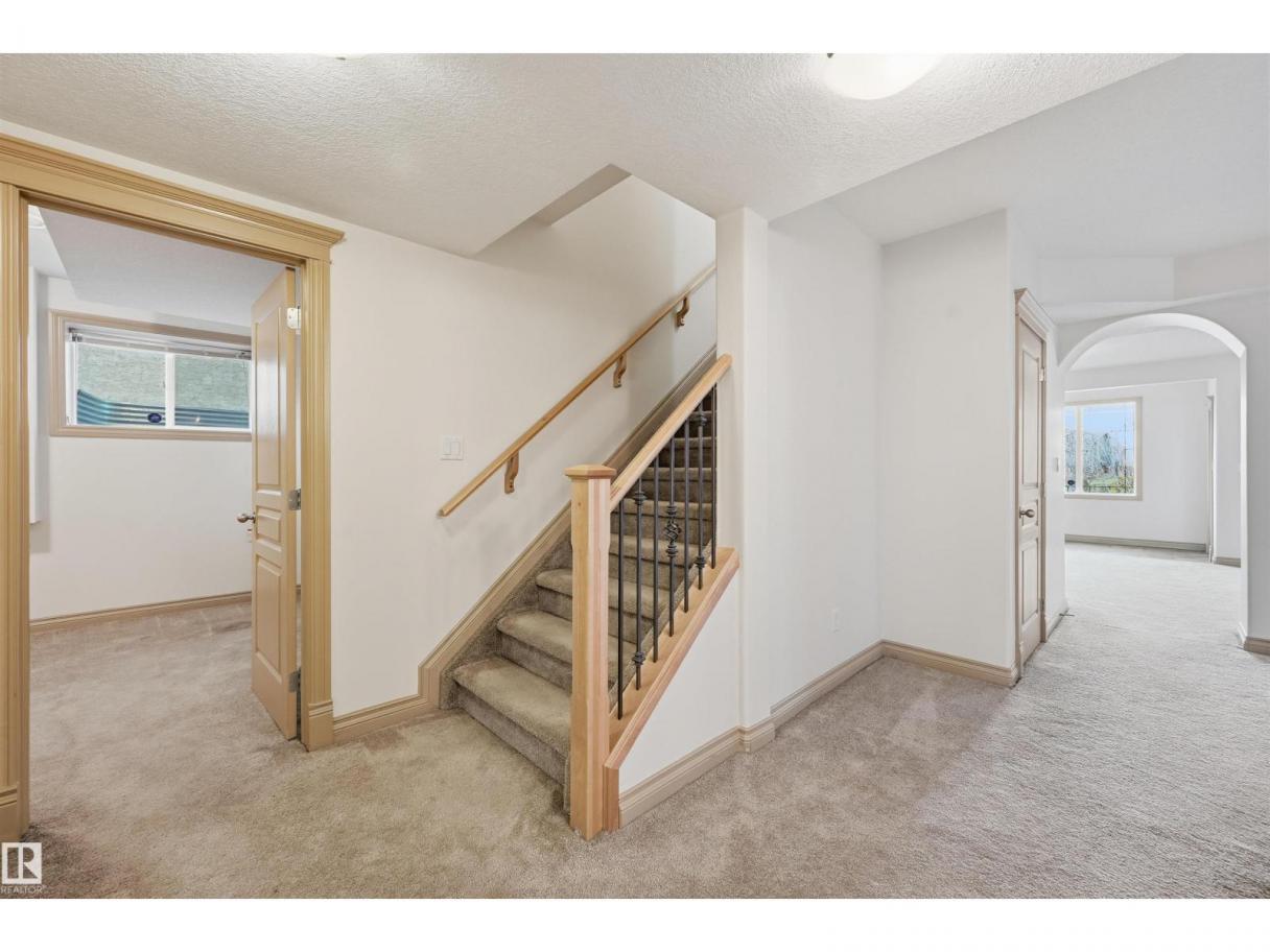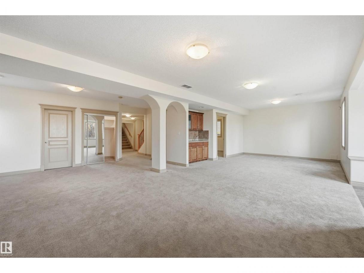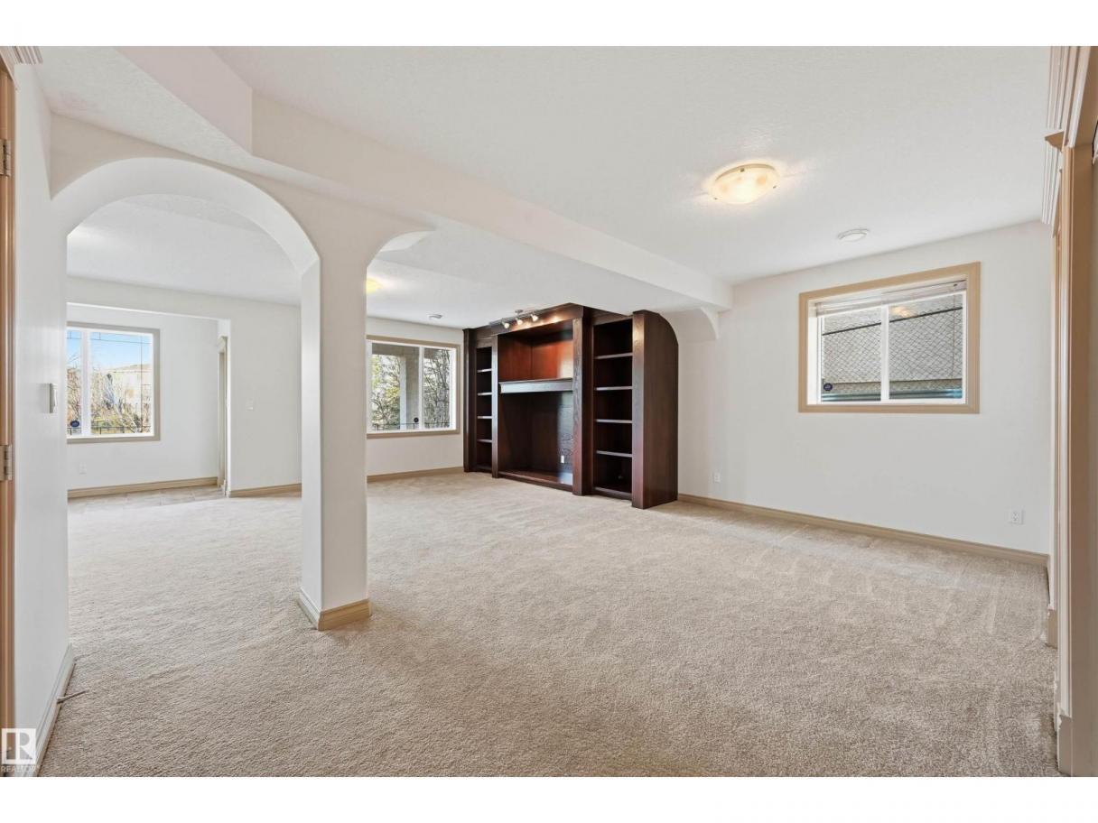It doesn’t get any better than this! Absolutely a stunning home in the perfect location in the highly desirable Haddow. Enjoy the beauty & serenity of this gorgeous well maintained 4+2 bedrm 4 full bath 2 sty home nestled on a quiet cul de sac backing to a scenic naturalized green space. Open floor plan is perfect for entertaining & filled w/natural light streaming through the oversized windows. Soaring ceilings & a dramatic stairwell greet your guests. Approx 4000 sf of living space incl the WALKOUT bsmt. Formal entertaining in LR & DR. Parties will centre around the Chef’s kitchen island & the family rm. Tech desk located off the nook area which steps out onto the balcony overlooking the mature trees & dry pond. Main floor den can double as a bedrm w/access to a full bathrm. Upstairs are 4 generous sized bedrms incl the luxurious primary bedrm & it’s spa like ensuite. New carpet, new paint & maple HW makes this home move in ready! The F/Fin Walkout boasts a Rec rm w/ 2nd FP & wetbar, 4 pc & 2 bedrms (id:6769)