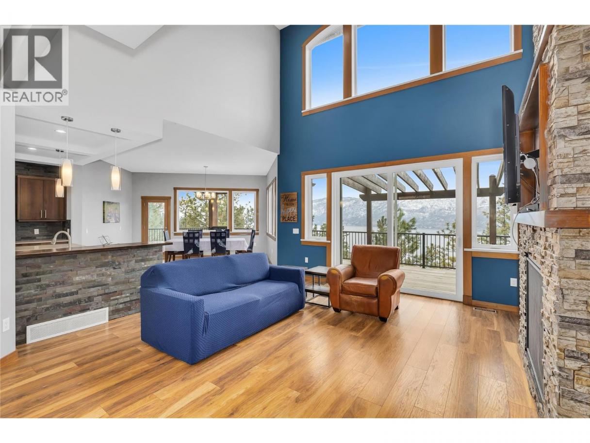 INVESTOR ALERT! Nestled in the prestigious community of Carr’s Landing, this residence offers breathtaking 180-degree views of Okanagan Lake and a peaceful, private setting and over 5,200 square feet of thoughtfully designed living space. The grand, vaulted ceilings create an airy and inviting atmosphere, while the open-concept living, dining, and kitchen area is tailor-made for entertaining. A stunning stone gas fireplace serves as the focal point, and the kitchen boasts high-end stainless steel appliances and ample space for gatherings. Upstairs, the primary suite is a true retreat, complete with a private lake-view balcony, spa-inspired ensuite, and an oversized walk-in closet. Three additional bedrooms on this level provide flexibility for family living. The walkout lower level offers endless potential—in-laws, adult children, guest suites, AIRBNB, and endless rental opportunity. Still have room left over for entertainment haven. Multiple patios across different levels showcase stunning views of the lake and surrounding forest. A triple-car garage-turned-workshop can easily be restored for full vehicle parking. Located just minutes from renowned wineries, pristine beaches, schools, and the airport, this private one-acre sanctuary is an outdoor enthusiast’s dream, with instant access to hiking, biking, and ATV trails on Spion Kop Mountain. Experience serenity, adventure, with the right location and room for it ALL!! Offered well below BC Assessment, this is a rare chance to secure a highly valuable property at an exceptional price point (id:6769)