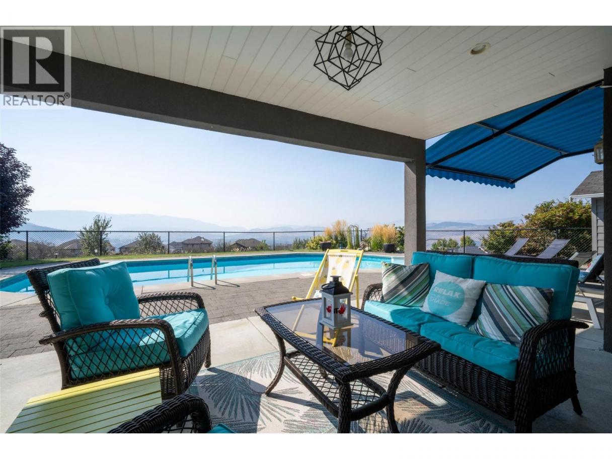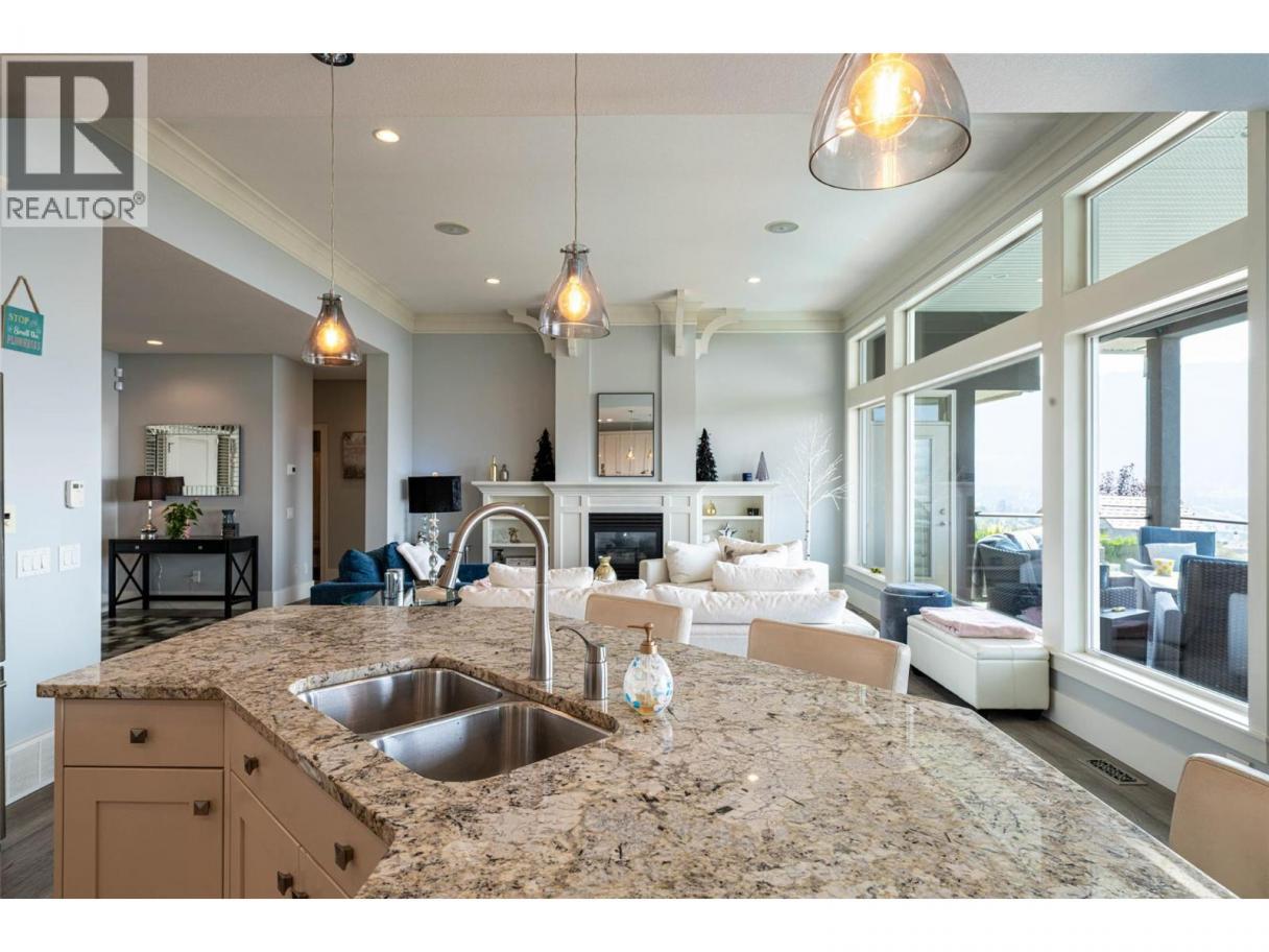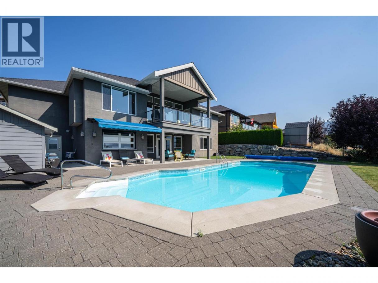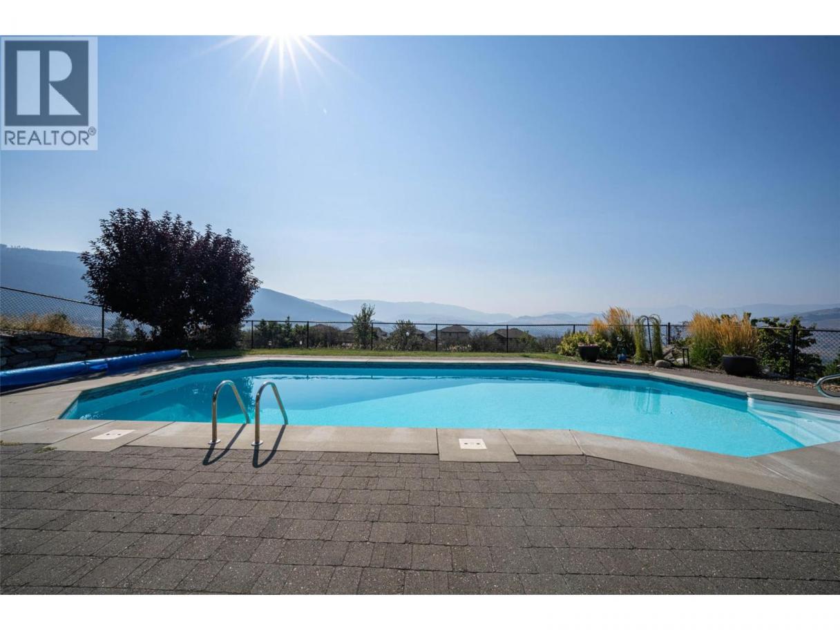Desirable floor plan, pool, suite and stunning home located in the highly desirable community of the Foothills! Perfectly positioned with walking trails outside your door. Step inside this rancher to a grand entry with soaring ceilings and expansive windows that showcase breathtaking views of the city, Kalamalka Lake, and Okanagan Lake. The open-concept main floor is light and airy, featuring engineered hardwood, a stone gas fireplace, and a chef’s kitchen complete with granite counters, stainless steel appliances, and a walk-in pantry. Step out onto the deck to enjoy your morning coffee against the incredible backdrop. The main level also offers a versatile office (or extra bedroom), a full shared bathroom and a luxurious primary retreat with walk-in closet and spa-inspired 5-piece ensuite with double vanity. Laundry with a sink and access to the double garage are conveniently located on this level. Downstairs, the walk-out basement is designed for entertaining. A family room with wet bar and garage-style door opens seamlessly to the pool deck, where bar seating sets the scene for unforgettable poolside gatherings. This level also includes two bedrooms, one featuring its own ensuite, a full shared bathroom, and a separate one-bedroom suite with private entrance-ideal as a mortgage helper or short-term rental. Outside, the private backyard is a true oasis with an in-ground heated pool and space to lounge and soak up the Okanagan sun. Lovingly maintained by its original owner, this home is ready for its next chapter. Enjoy four-season living at its finest, close to world-class skiing, golf, and two stunning lakes. This is Okanagan living at its very best. (id:6769)