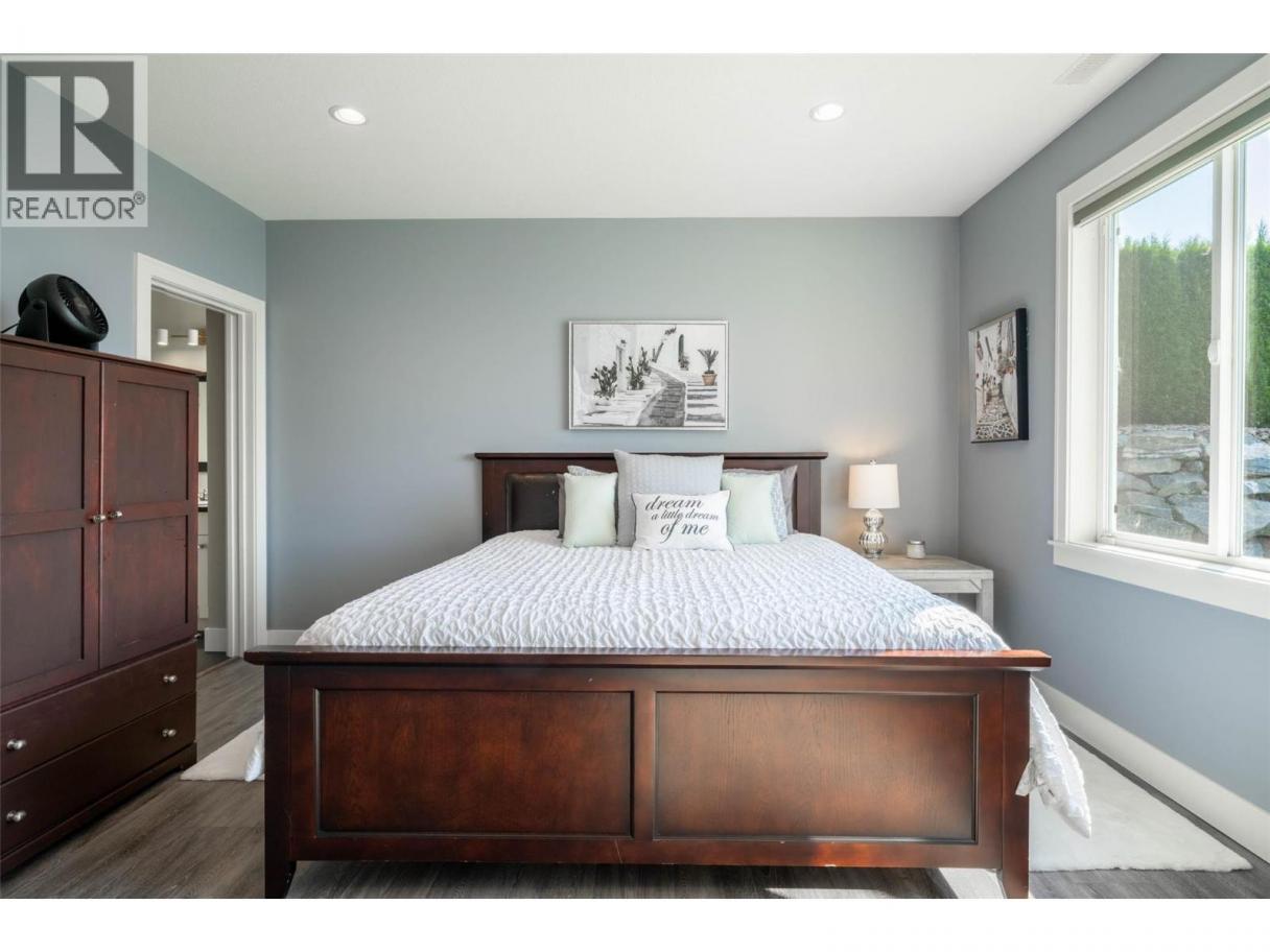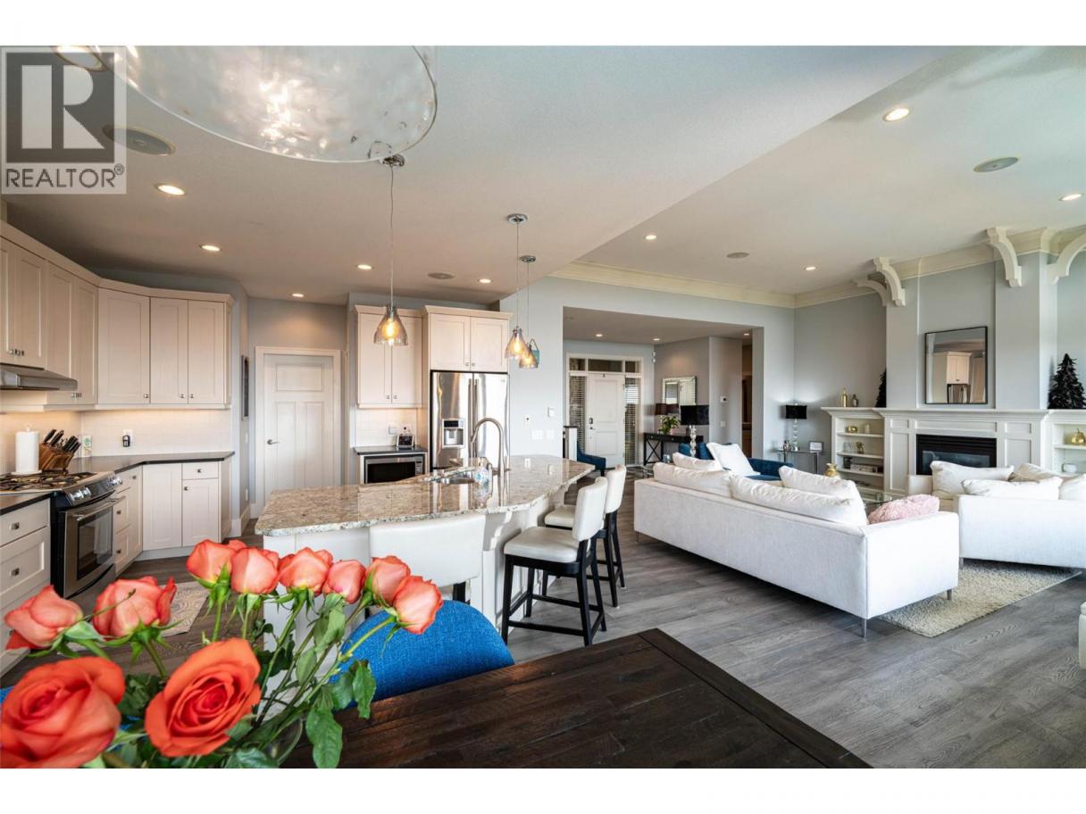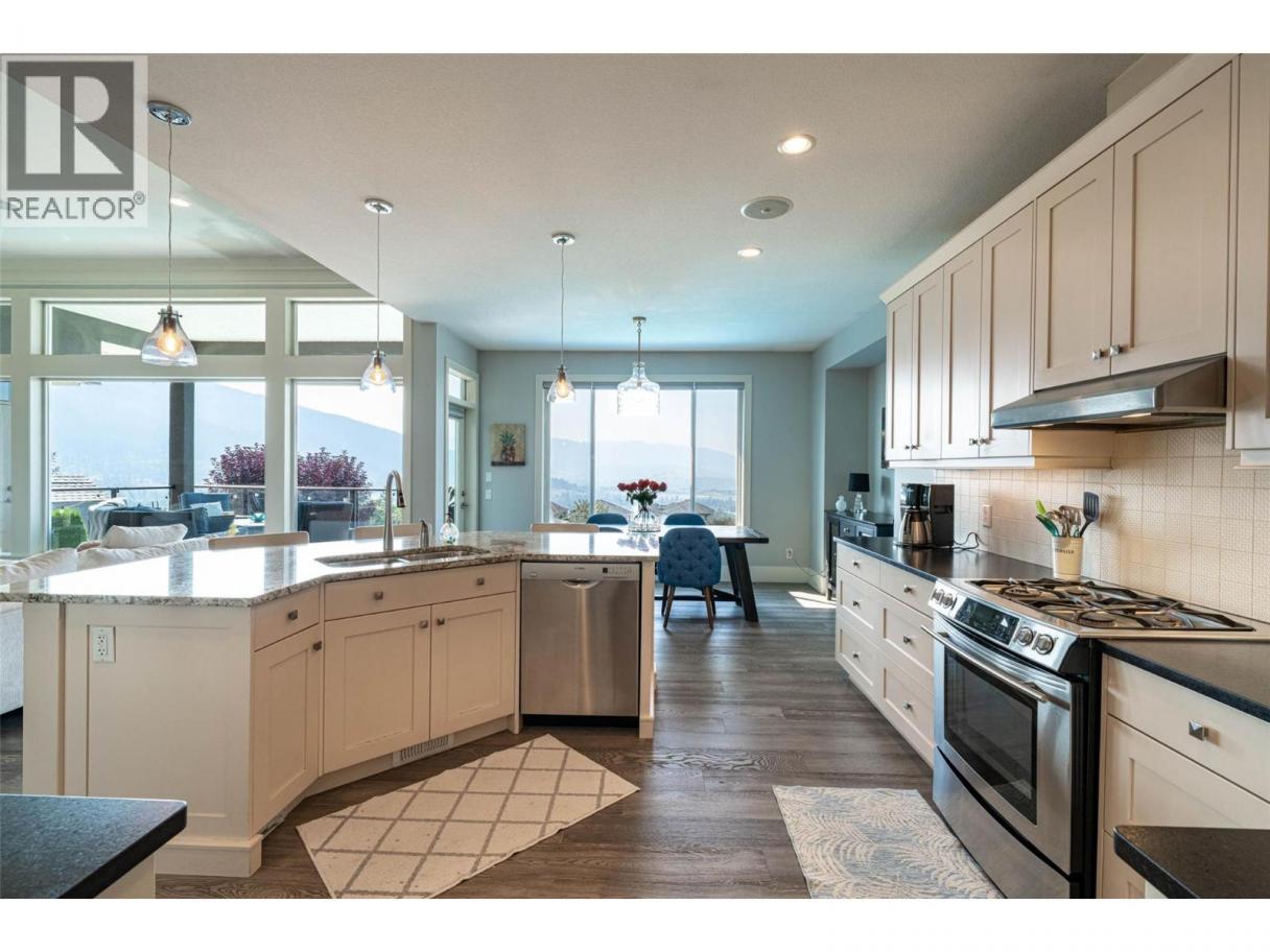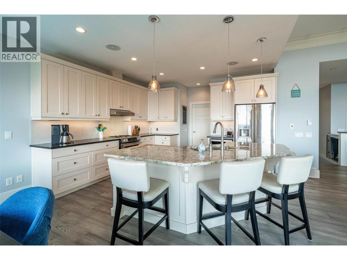 Desirable floor plan, pool, suite and stunning home located in the highly desirable community of the Foothills! Perfectly positioned with walking trails outside your door. Step inside this rancher to a grand entry with soaring ceilings and expansive windows that showcase breathtaking views of the city, Kalamalka Lake, and Okanagan Lake. The open-concept main floor is light and airy, featuring engineered hardwood, a stone gas fireplace, and a chef’s kitchen complete with granite counters, stainless steel appliances, and a walk-in pantry. Step out onto the deck to enjoy your morning coffee against the incredible backdrop. The main level also offers a versatile office (or extra bedroom), a full shared bathroom and a luxurious primary retreat with walk-in closet and spa-inspired 5-piece ensuite with double vanity. Laundry with a sink and access to the double garage are conveniently located on this level. Downstairs, the walk-out basement is designed for entertaining. A family room with wet bar and garage-style door opens seamlessly to the pool deck, where bar seating sets the scene for unforgettable poolside gatherings. This level also includes two bedrooms, one featuring its own ensuite, a full shared bathroom, and a separate one-bedroom suite with private entrance-ideal as a mortgage helper or short-term rental. Outside, the private backyard is a true oasis with an in-ground heated pool and space to lounge and soak up the Okanagan sun. Lovingly maintained by its original owner, this home is ready for its next chapter. Enjoy four-season living at its finest, close to world-class skiing, golf, and two stunning lakes. This is Okanagan living at its very best. (id:6769)