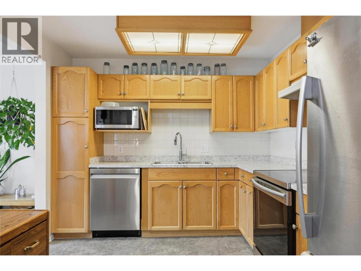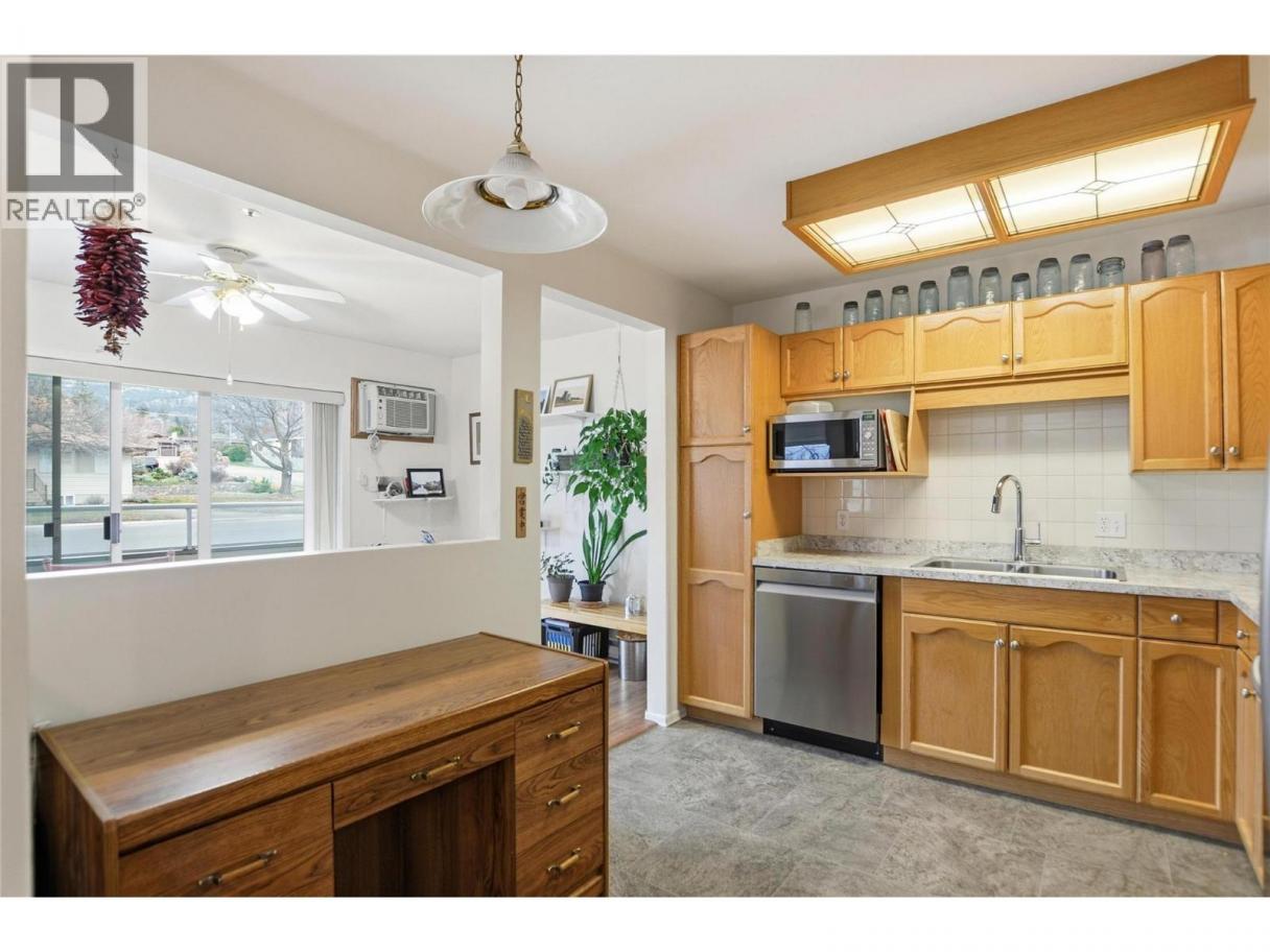 CLICK TO VIEW VIDEO: Welcome to Unit 105 at Panorama Ridge, a spacious and well-maintained ground-floor corner condo in a quiet 55+ community centrally located in Penticton. Offering over 1,250 sq ft of living space, this bright two bedroom, two bathroom home combines comfort, accessibility, and convenience. The open living and dining area is filled with natural light and features a cozy gas fireplace, making it ideal for both everyday living and entertaining. Large windows capture peaceful valley views, while upgraded flooring, appliances, and window shades add a clean, modern touch throughout. The primary bedroom includes a walk-in closet and private ensuite, creating a comfortable retreat, while the second bedroom and full bathroom offer flexibility for guests or hobbies. Additional highlights include in-suite laundry, a dedicated storage room, and a private outdoor patio; perfect for morning coffee and fresh air. This unit also offers secure parking and a storage locker conveniently located on the same floor, a rare and practical bonus. Just steps from Penticton Regional Hospital, shopping, transit, and the city core, this is an ideal option for those looking to simplify without sacrificing space or location. (id:6769)