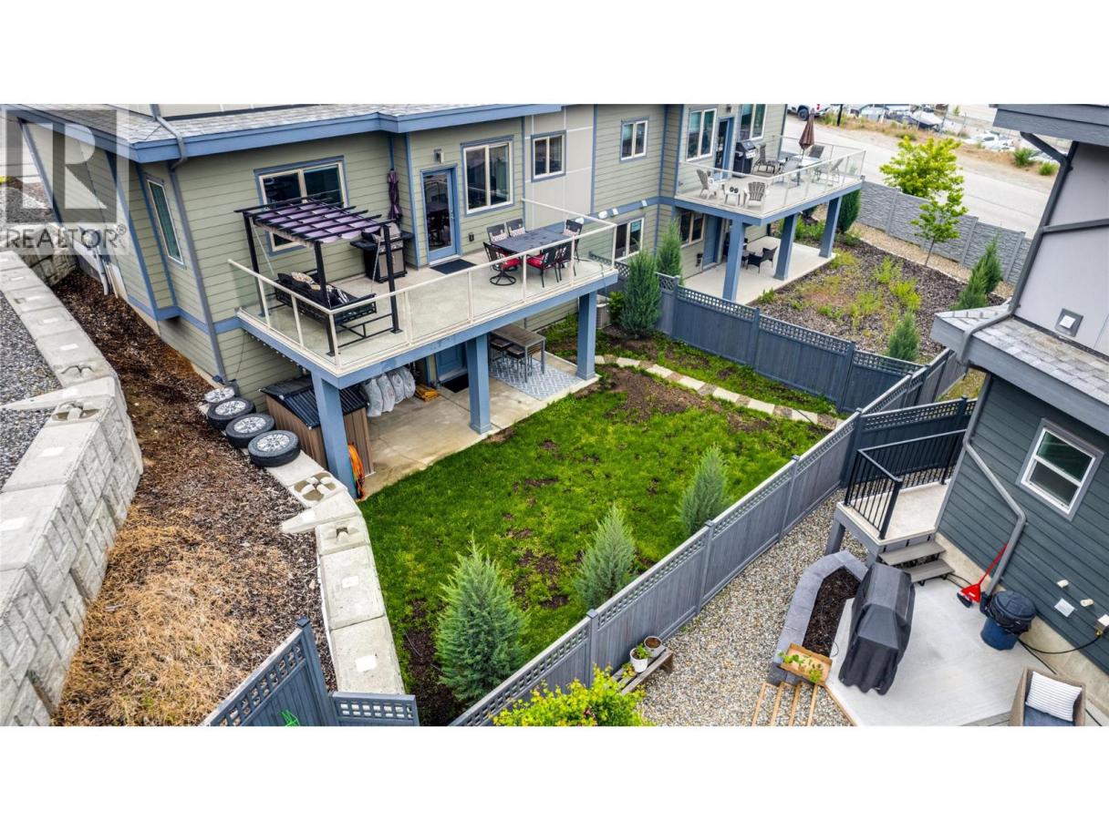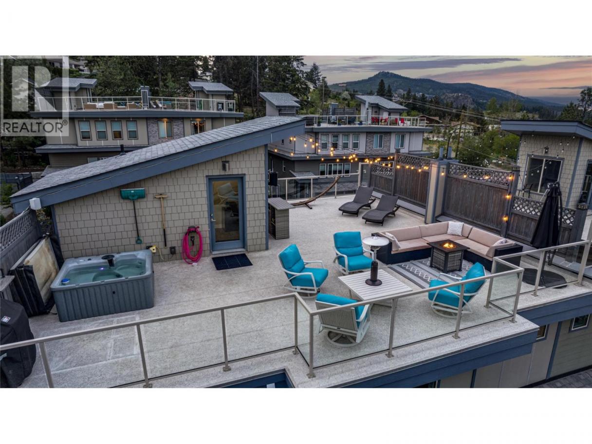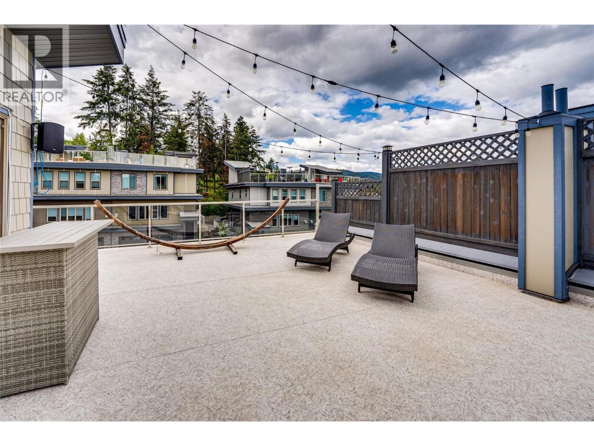 Newer Built Pet Friendly Townhome with Captivating Rooftop Views! This spacious 2,500+ sq. ft. semi-detached townhome features a massive 1,200 sq. ft. rooftop terrace offering some of the best views in the area. Nestled within a serene complex, it also features one of the largest yards and views of Wood Lake. The inviting living room is bathed in natural light from large windows, high ceilings, and features a gas fireplace, perfect for relaxing evenings. The modern kitchen is a chef's delight with high-end black gloss appliances, ample cabinet space, a walk-in pantry, and access to a balcony with upgraded dura-deck – an ideal spot for summer BBQs. A convenient 2-piece powder room and a laundry room complete the main floor. The oversized primary bedroom offers extra space for an additional sitting room or small office, and large windows, and access to an expansive luxurious 5-piece ensuite featuring a soaker tub leads into a well sized walk-in closet. Two additional bedrooms and a 4 piece bathroom complete the upper level, providing plenty of space for family or guests. Partially finished basement includes a bedroom, or convert into a gym, office, or suite. Imagine unwinding in your private hot tub or entertaining guests on your expansive rooftop terrace while taking in the stunning lake views. A double attached garage provides ample space for vehicles and storage. Your Lake Country oasis awaits! (id:6769)