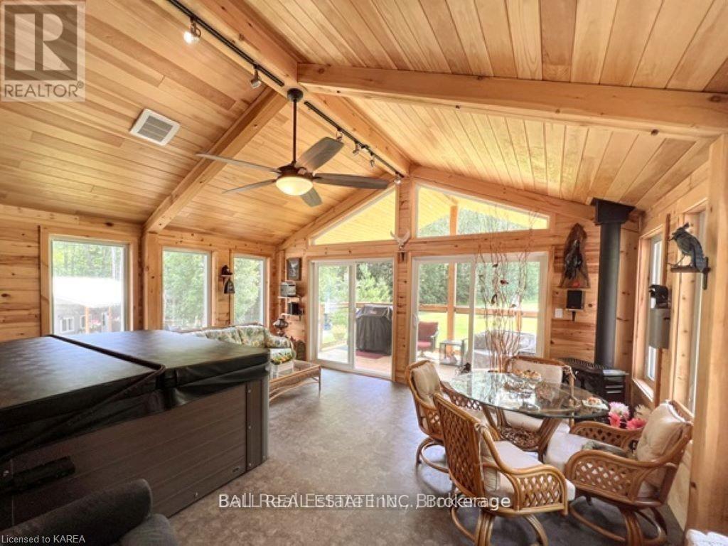 MUST SELL - SELLERS HAVE PRECURED A HOME. Beautifully Updated from 2021 to 2025 - This Home Feels Brand New- Every corner of this property has been thoughtfully improved, making it truly move-in ready. 2021 Upgrades Include, Stunning post-&-beam four-season sunroom with vaulted ceilings and a hot tub. Steel roof, new flooring, kitchen, & all windows. Extensive landscaping - Impressive 38' x 32' insulated and heated workshop/garage (stand-alone), perfect for hobbyists or professionals - Heat exchanger & central air conditioning - Generator - Propane furnace - 2025 Enhancements: Beautifully upgraded main bathroom - Updated primary ensuite with walkout to the deck with breathtaking views of backyard - Full basement renovation, including new e-gress windows and an additional bathroom. This property offers privacy, peace, and comfort, with three covered porches ideal for relaxing outdoors. Located just 5 minutes from multiple lakes for summer fun and close to snowmobile trails for winter adventure, it's a dream location for outdoor enthusiasts. Two driveways provide excellent access- the second taking you directly to the impressive 3+ car workshop/garage, with tandem doors. Pride of ownership shines throughout this meticulously maintained oasis. The active local community offers plenty of opportunities to get involved-or simply enjoy the tranquility at your own pace. Snowmobile trails & Lakes Surround this for year round adventure. (id:6769)