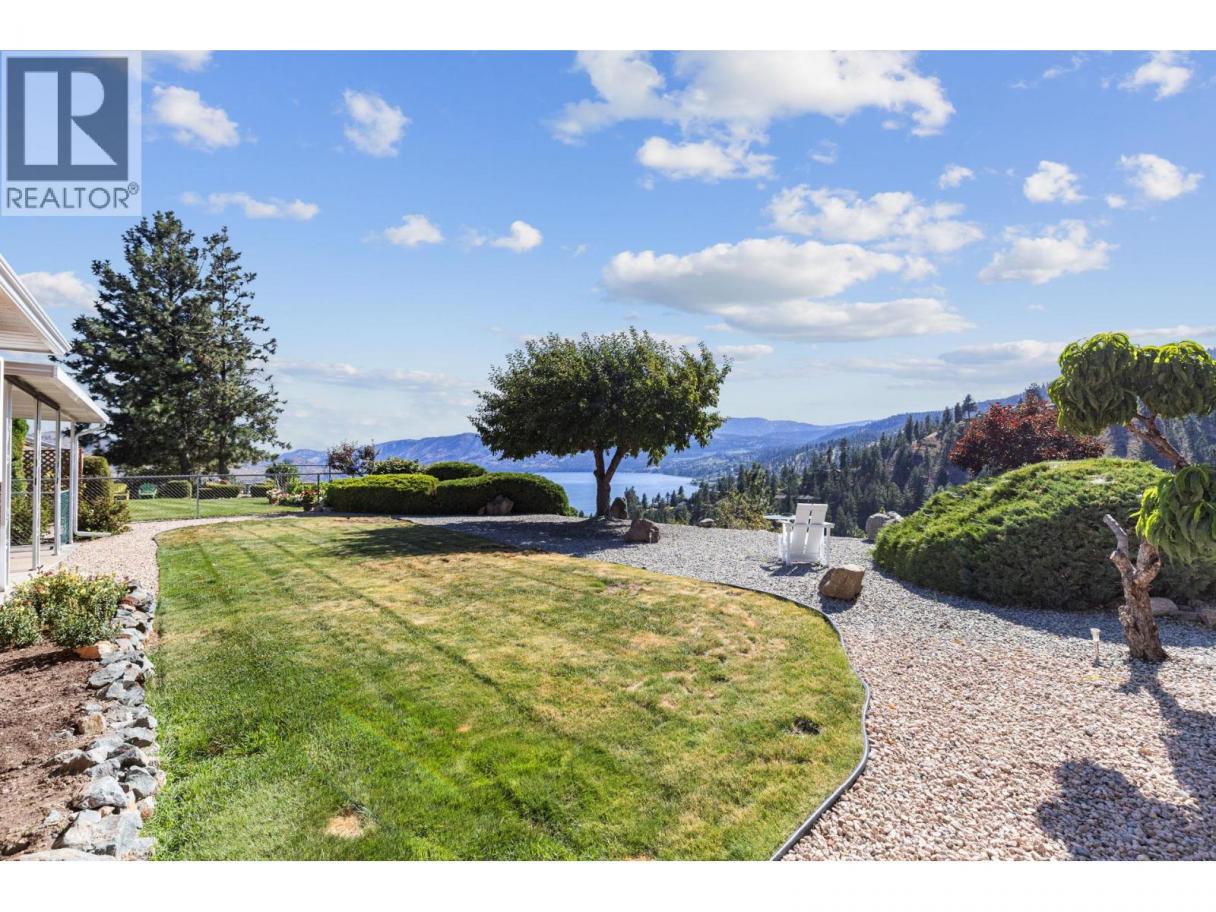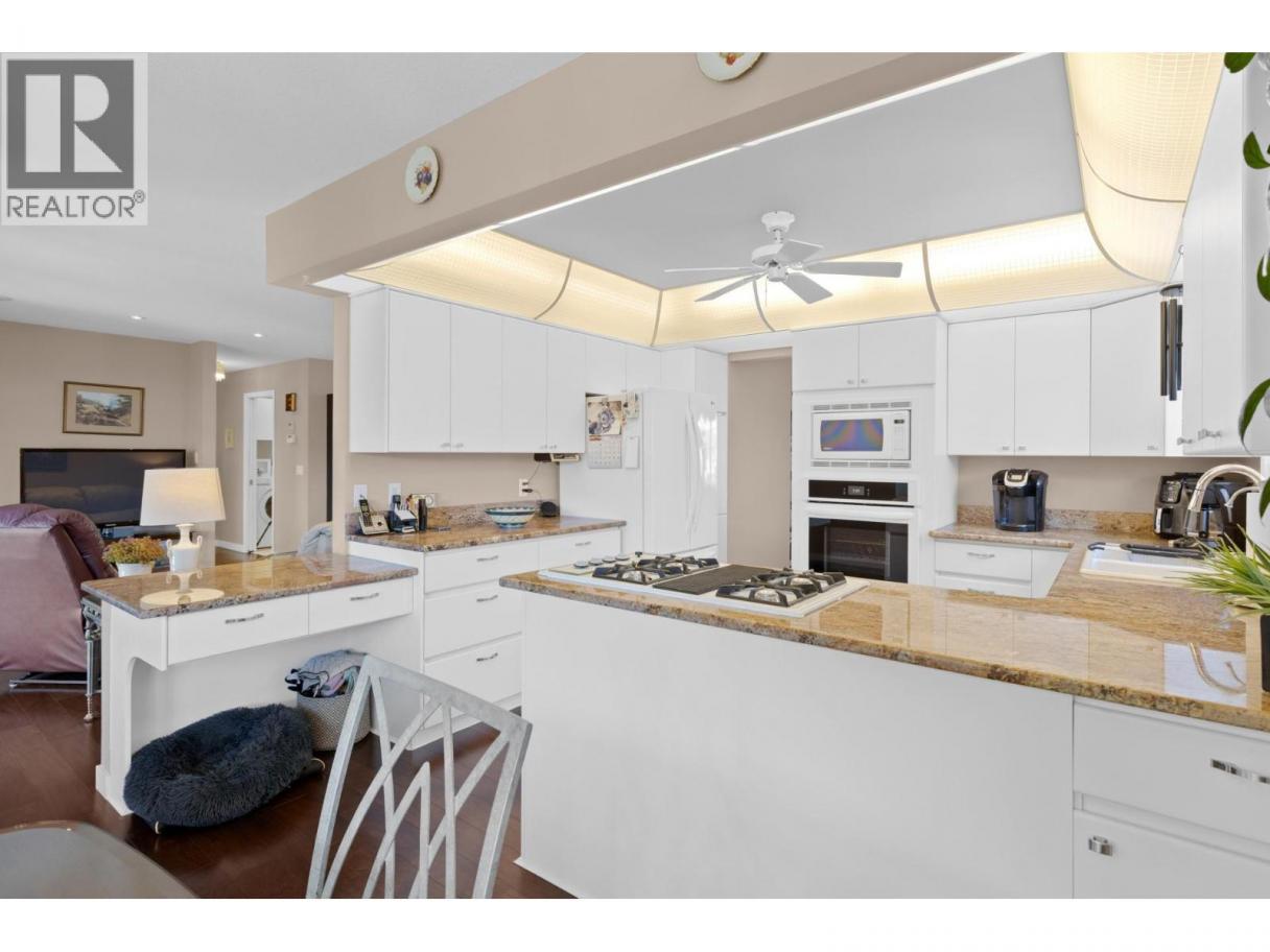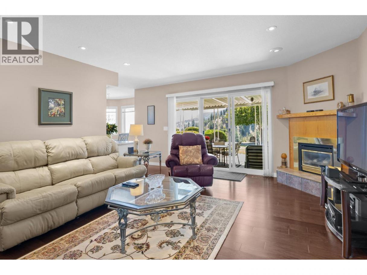 This beautifully maintained 3-bedroom, 2-bath no-step one-level rancher is tucked away in a peaceful, established neighborhood in Peachland. Ideal for those looking to downsize without sacrificing space or style, with no strata fees. The well-appointed peninsula kitchen comes with a new fridge and built-in convection oven, gas cook-top with grill attachments, granite counter and unique lighting. Formal living and dining rooms. Family room with gas fireplace and a breakfast nook. Custom stained glass details in the primary bedroom, living room, front door, and garage add warmth and character, setting this home apart with artistic charm. Primary suite with ensuite bath, custom steam shower, walk-in closet. Two additional bedrooms and full bath. Hardwood and tile floors throughout! Central vacuum. Laundry mudroom to double garage. Extra wide driveway. The fully landscaped yard backs directly onto the serene Trepanier Creek ravine, offering privacy and a tranquil natural backdrop. Enjoy lake views, a peach tree, raspberry bushes, and plenty of space to add a pool if desired. An underground sprinkler system keeps the outdoor space lush and easy to maintain, while the reverse osmosis water system, water softener, and central air conditioning provide modern comfort inside. The home is also wired for an alarm system and features upgraded plumbing with no Poly-B! With its ideal location, mature setting, and turnkey upgrades, this home invites you to settle into the Okanagan lifestyle. (id:6769)