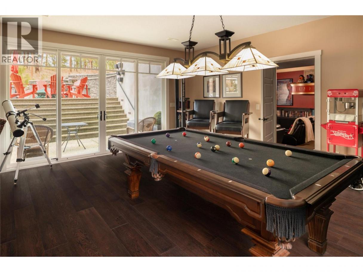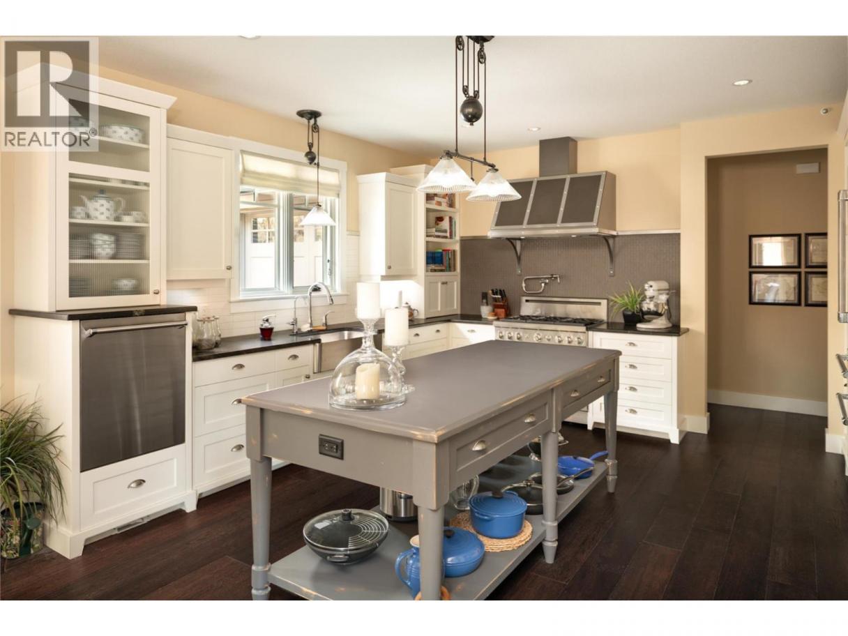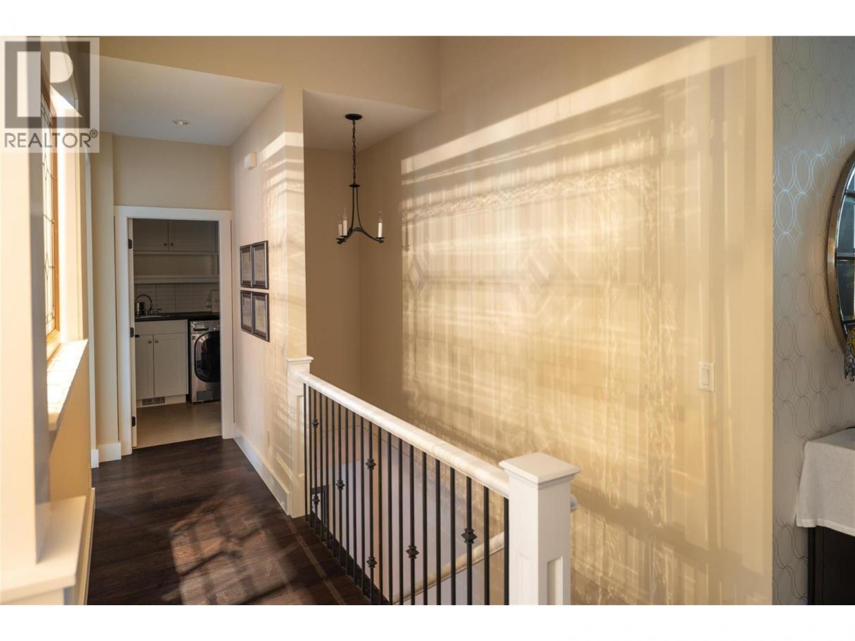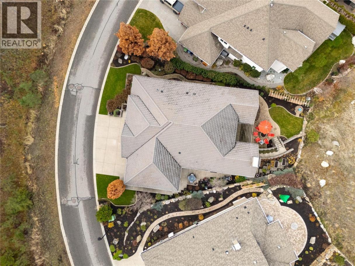 Privately positioned in an exceptionally quiet setting with no neighbours in front or behind, this thoughtfully designed residence is surrounded by mature trees and meticulous landscaping, offering a rare sense of seclusion. Built with longevity and quality in mind, the FireSmart Hardie Board exterior, concrete tile roof, Loewen windows, and handcrafted fir front door set the tone for the level of finish carried throughout. Engineered hardwood flooring, solid core doors, and all-wood casings create a cohesive, timeless interior. The kitchen is the heart of the home, featuring Brazilian soapstone countertops, solid maple cabinetry, an expansive custom island, six-burner gas range, Thermador appliance package, and a dedicated beverage centre. Indoor-outdoor living is seamless with a covered upper deck complete with gas fireplace and BBQ hookup. The walk-out lower level offers impressive ceiling heights, a custom wet bar, gas fireplace, theatre room, and access to a private patio with Beachcomber hot tub and Restoration Hardware fire bowl. A hybrid heat pump/gas furnace, EV-ready 3 car garage, grade-level windows, and thoughtful accessibility features further enhance this exceptional home designed for comfort, privacy, and everyday enjoyment. Set within the prestigious Gallaghers Canyon community, residents enjoy an unmatched lifestyle with world-class golf, scenic walking trails, and a strong sense of community—just minutes from Kelowna’s amenities. A rare combination of privacy, craftsmanship, and lifestyle — this is a must-see to be fully appreciated. (id:6769)