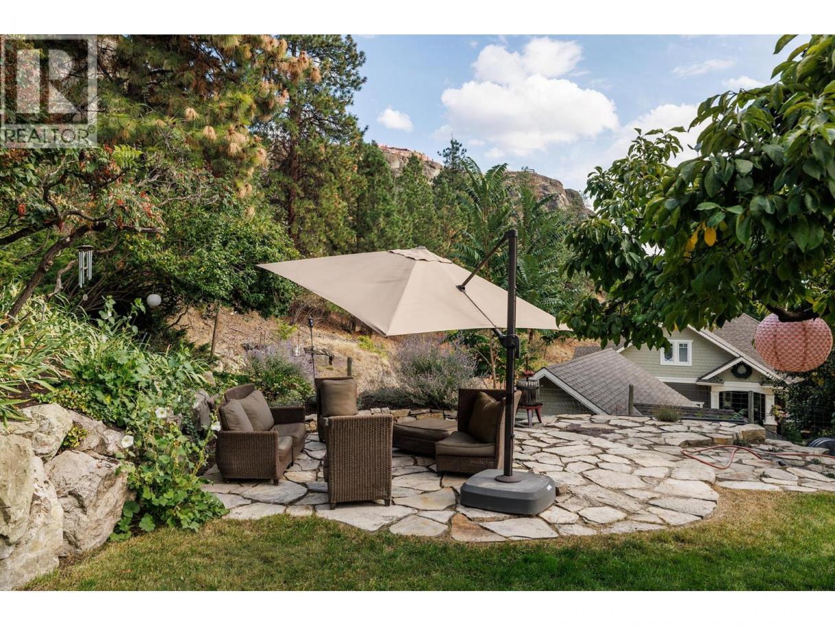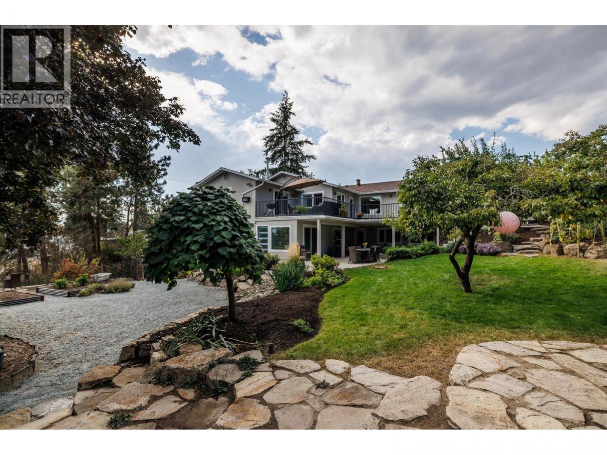 VIEWS/4879 SQ FT/2 HOUSES in 1. Unique and one of a kind home in the desirable Knox Mountain neighbourhood! Discover this character home tucked away at the end of a private cul-de-sac and offering breath taking views from all directions. This 4,879 sqft residence masterfully blends sophisticated living with a serene, secluded setting. Featuring 2 kitchens, 6 bedrooms, and 5 bathrooms, there is abundant space for your large family or guests, while a separate, fully equipped suite is perfect for generational living or an excellent income opportunity or a private retreat for visitors. Inside, an inviting open floor plan with 2 wood and 2 gas fireplaces to create the perfect atmosphere for relaxed evenings. Step outside to your private oasis with a fully fenced yard and an expansive deck that has a beautiful view of the cliff face, ideal for summer BBQs and soaking in the breathtaking panoramic lake views. The backyard is a gardeners dream with fruit trees, mature landscaping, perennials and a cozy stone fire pit area for entertaining friends and family. This prime location provides the best of both worlds—peaceful suburban living with easy access to adventure. You're just minutes from Knox Mountain's renowned hiking and biking trails and a short drive to the vibrant shops, restaurants, and recreation of downtown Kelowna. Thoughtfully renovated and brimming with charm, this rare find perfectly balances modern comfort with timeless charm. (id:6769)