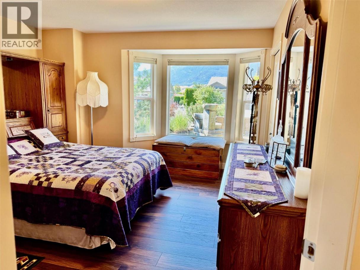 Welcome to your dream retreat in this exclusive 40+ community, nestled on the edge of a prestigious golf course. This exquisite custom-built home offers the perfect blend of comfort, sophistication, and outdoor charm, with breathtaking views and refined finishes throughout. Step inside to discover a thoughtfully designed layout featuring a spacious master suite complete with a walk-in closet and a luxurious 4-piece ensuite. The heart of the home boasts two cozy gas fireplaces, skylights, a custom wine cellar and bar, a large games room, and ample storage, ideal for both entertaining and relaxation. The outdoor spaces are truly exceptional. Enjoy your morning coffee in the charming front seating area, or unwind in the backyard paradise, a meticulously landscaped haven with mature trees, brick walkways and stairs, a gazebo, and a covered deck perfect for year-round enjoyment. The BBQ gas hookup, outdoor fire pit gas line, and garden shed complete the outdoor lifestyle experience. Whether you're hosting friends or enjoying a quiet evening with a glass from your private cellar, this home offers an unparalleled blend of elegance and leisure. A rare opportunity for those seeking a tranquil, upscale community with resort-style amenities right outside your door. Enjoy the clubhouse benefits including an indoor swimming pool, whirlpool, fitness room, library and social room. Vernon just 15 min away. Book your private viewing today and step into the lifestyle you've been waiting for. (id:6769)