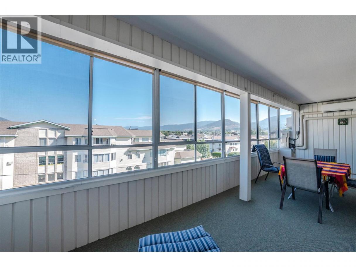 Walk a block to Cherry Lane Mall, Parks, Restaurants, Clinics! This very desirable top floor features a skylight, 2 bed, 1 1/2 bath, fresh paint, new vinyl plank flooring, an updated kitchen with new kitchen counter tops, large closets and a massive glass-enclosed balcony with it's own new heat pump that making it a comfortable, year round space. At an impressive 1238 sf, this spacious layout offers inviting views of Penticton's hills to the east and west from the enclosed balcony, Located on the quiet side of the building. Secure and gated parking also features a 2nd large storage locker located in front of your stall. Roughly 1/2 way between Okanagan Lake and Skaha Lake which is an easy commute via public transit. Welcome to Brookfield Place. 55+, no short-term rentals, no pets, no smoking. Ask your agent for a showing today! (id:6769)