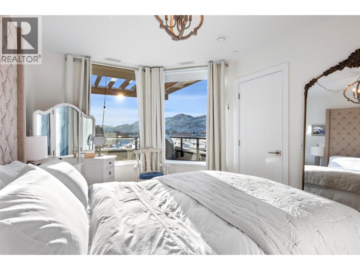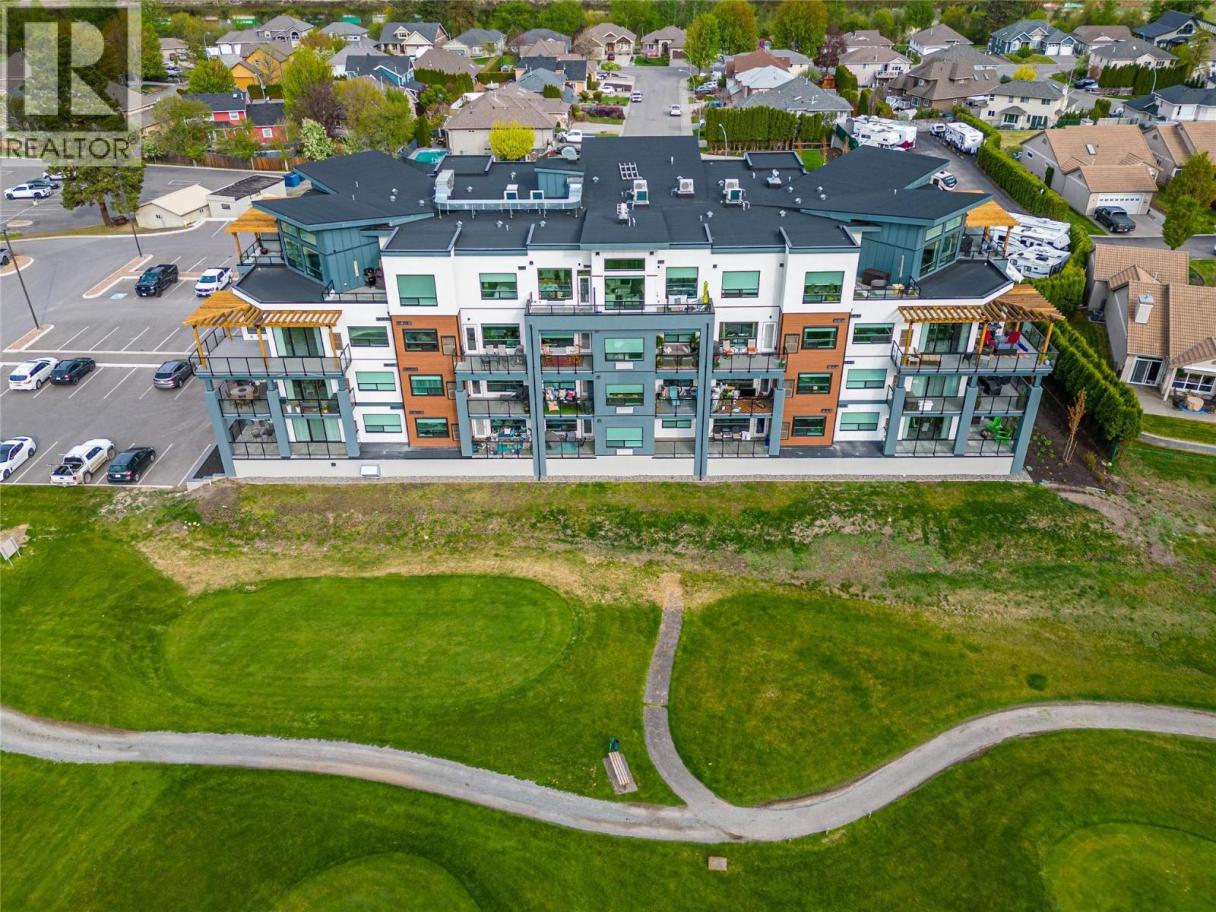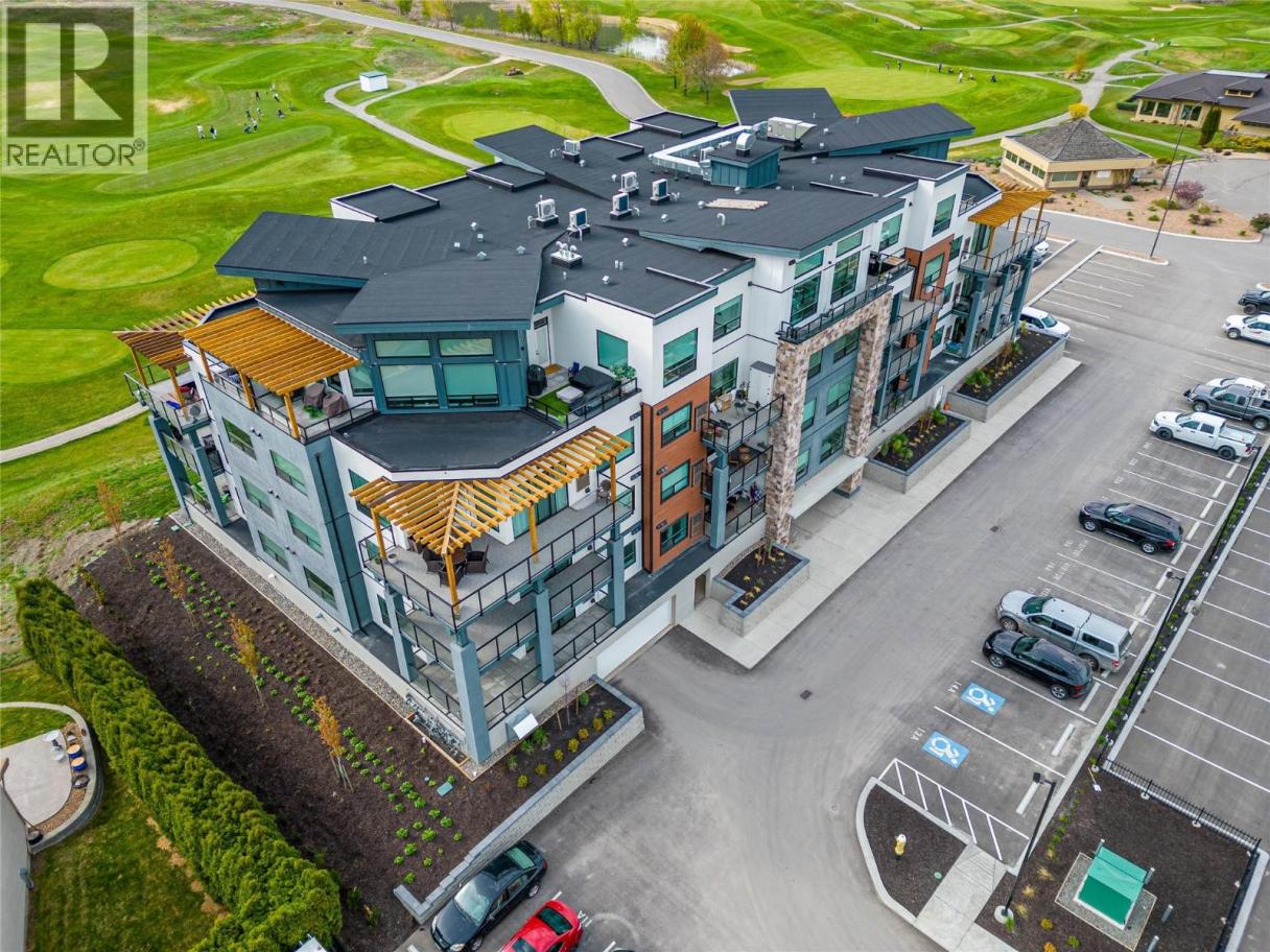 Welcome to Unit #401, a bright corner unit in Fairway 10, ideally located on the Dunes Golf Course. With its elevated position and expansive windows, this home is flooded with natural light all day long, creating an airy, warm, and inviting atmosphere throughout. Offering 702 sq ft of thoughtfully designed living space, plus an additional 146 sq ft deck with beautiful vistas of the golf course and mountain range in every direction. The open-concept layout features high ceilings, a modern kitchen with quartz countertops and a peninsula/eating bar, a sun-filled living room, and a dedicated dining area—perfect for both everyday living and entertaining. The spacious primary bedroom includes a walk-in closet, complemented by a 4-piece main bathroom/ensuite, along with the convenience of in-suite laundry. Additional highlights include central air conditioning, a gas BBQ hookup, and one underground parking stall in the secure, heated garage. The building offers an elevator, intercom entry, and allows pets with some restrictions, as well as rentals (excluding short-term rentals). Step outside and enjoy an active lifestyle with walking paths, hiking and biking trails, river access, and world-class golfing just moments away. All of this is located only a 2-minute drive to groceries, schools, gyms, and everything Westsyde has to offer. (id:6769)