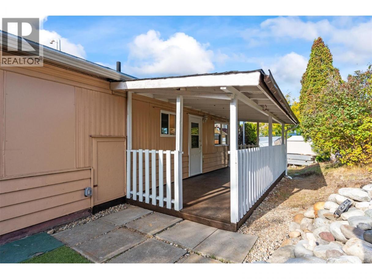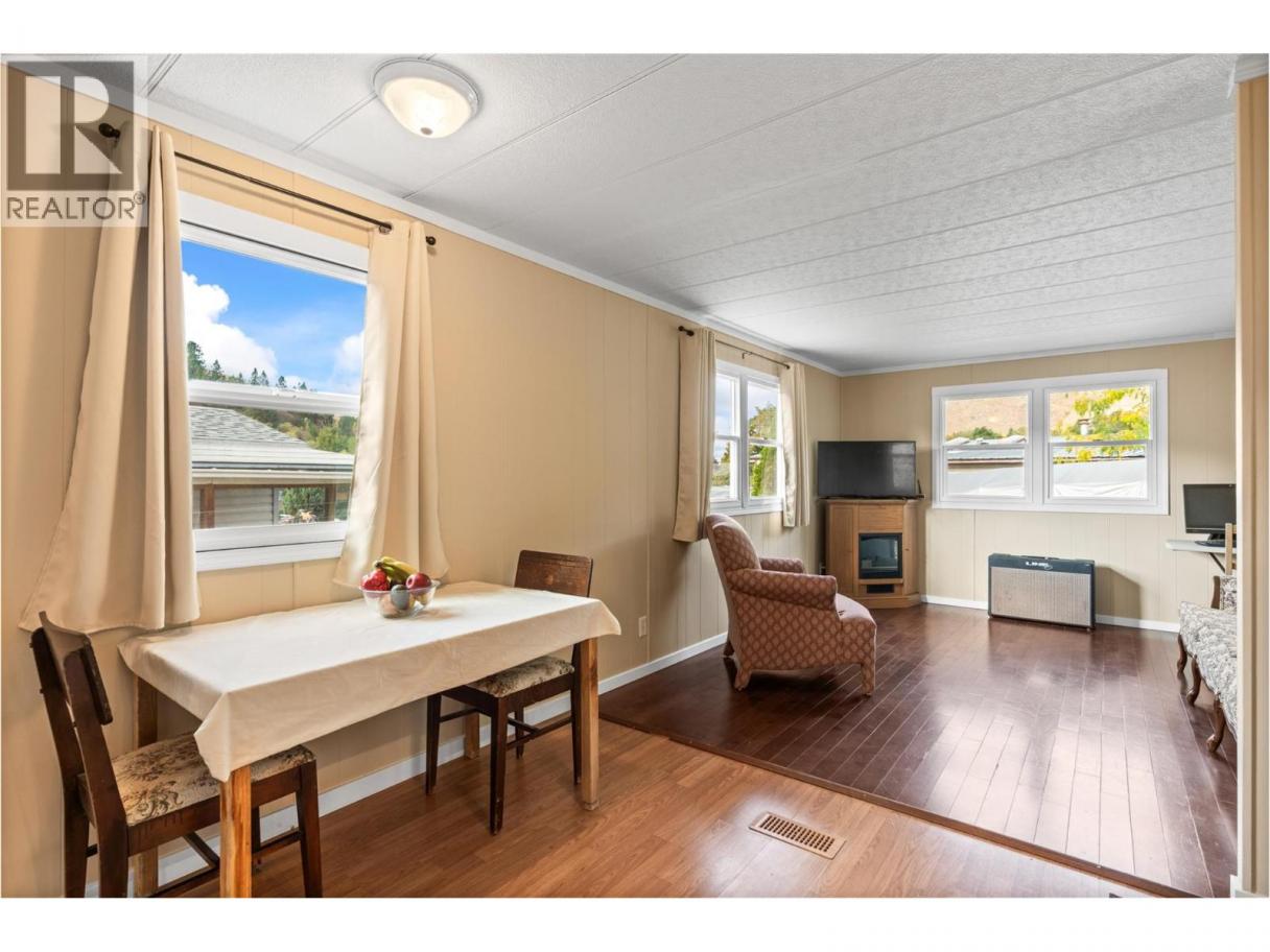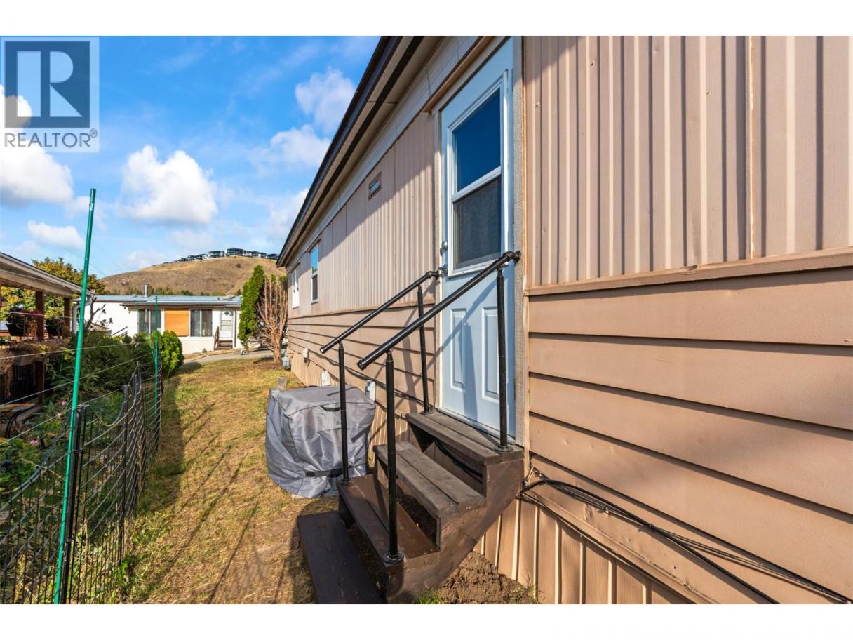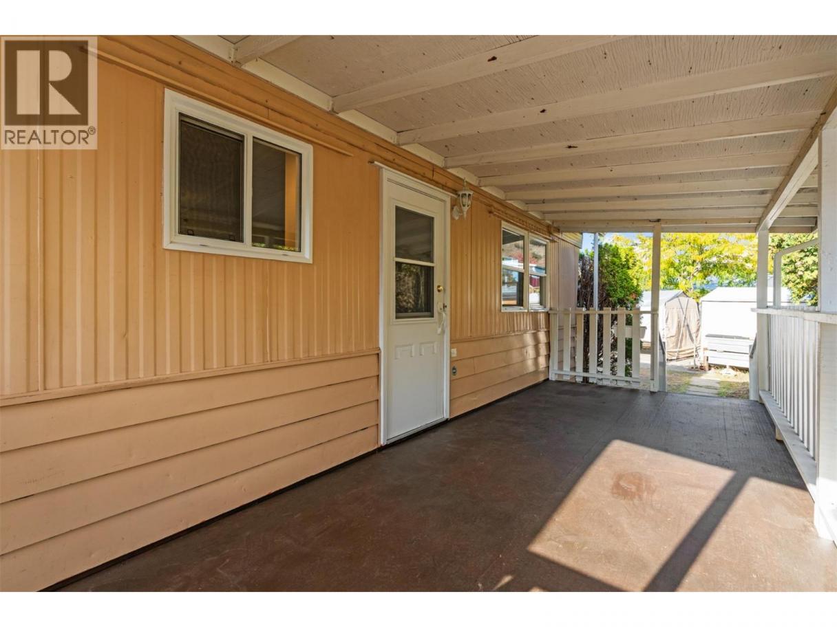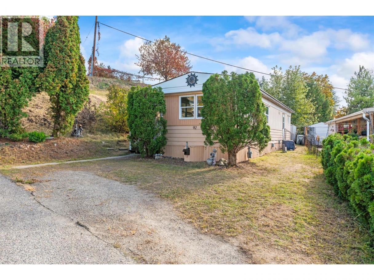 Welcome home to Unit #92 in Lakeway Mobile Home Park! Perfectly situated in a prime location, this home offers convenience and comfort in a well-maintained park. This home is in the 55+ Section. Public transit is right at the park entrance, and you’re just a short walk from Kal Beach, the Rail Trail, Middleton Mountain hiking trails, shopping, and dining — everything you need is close by! This bright and inviting 2-bedroom, 1-bathroom home has been lovingly cared for with updates including fresh paint and newer windows. The open-concept kitchen and living area create a warm, welcoming space filled with natural light. Stay cool all summer long with central air conditioning. Step outside to enjoy the spacious, covered deck — perfect for relaxing or entertaining. The side yard offers added privacy with no neighbor on one side, and two garden sheds provide plenty of extra storage for your tools and outdoor gear. Pets are welcome with park approval. Don’t miss this affordable opportunity to enjoy the Okanagan lifestyle in a peaceful, well-kept community! (id:6769)