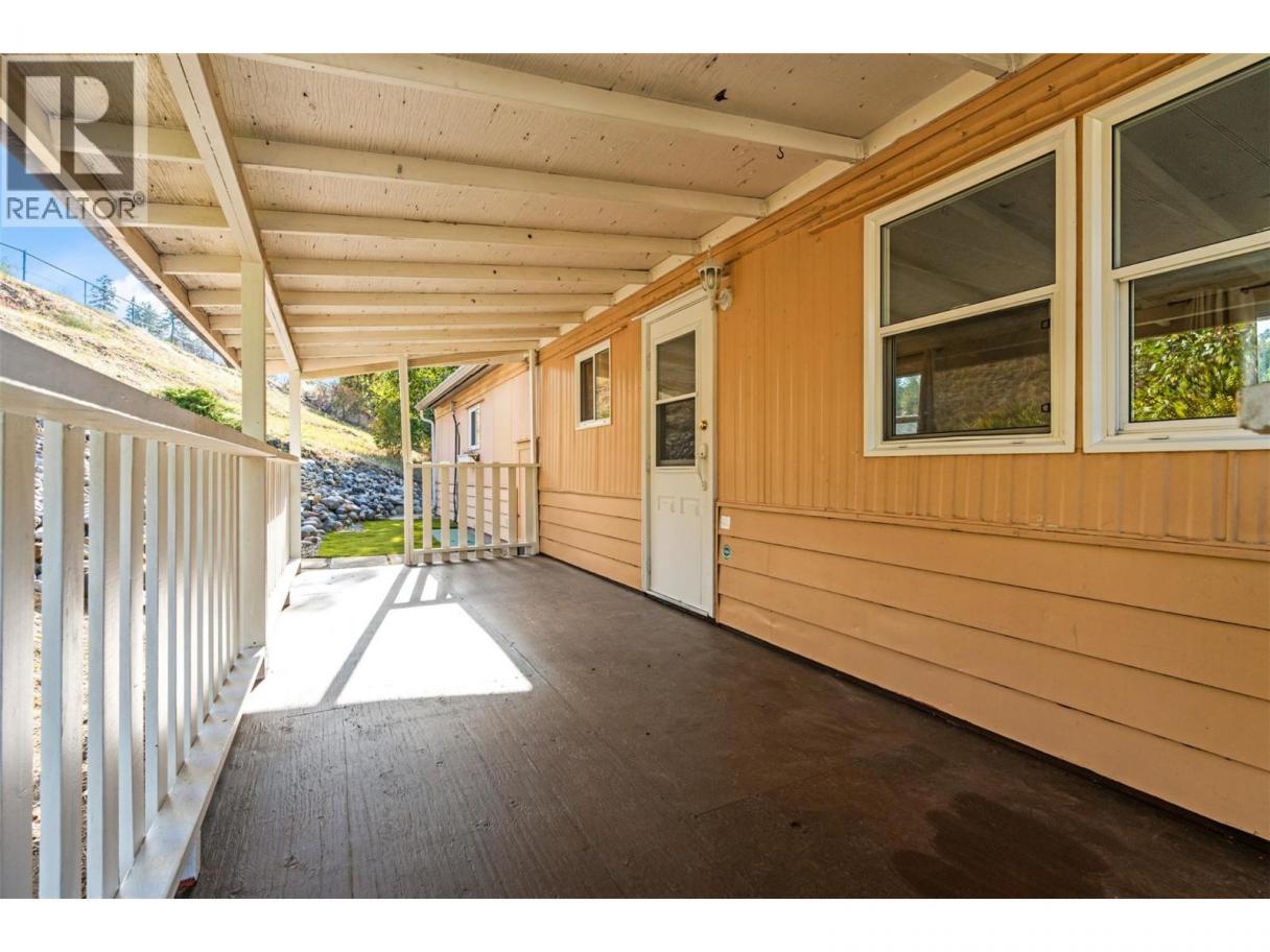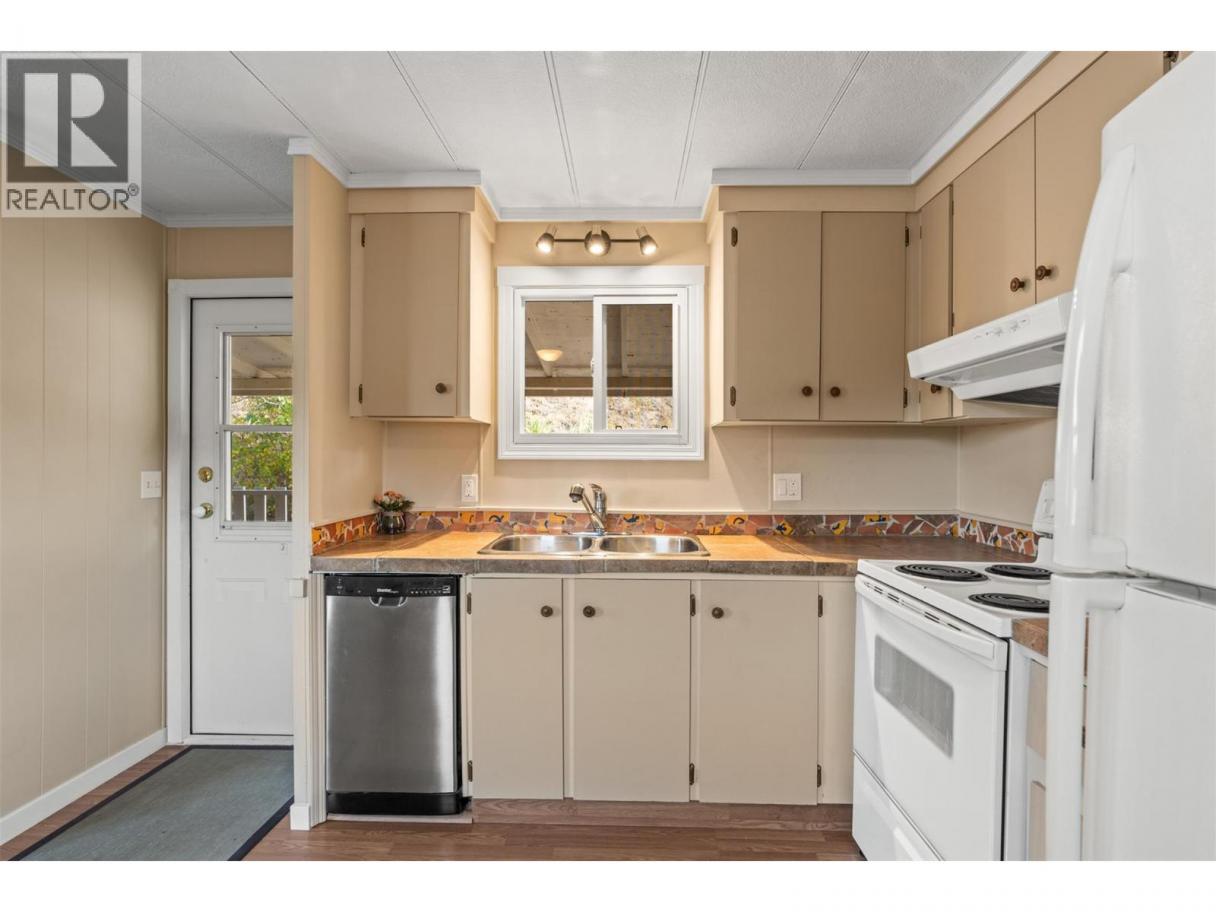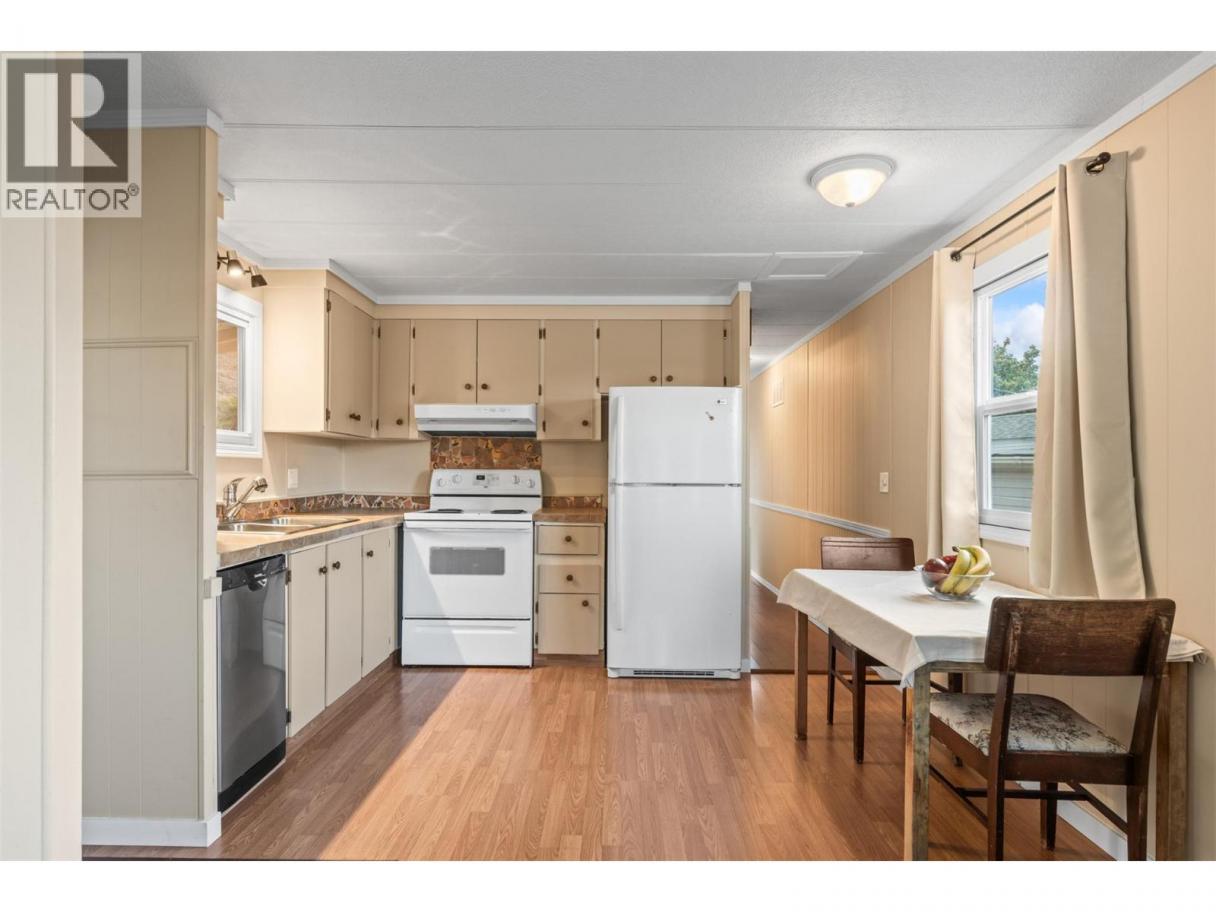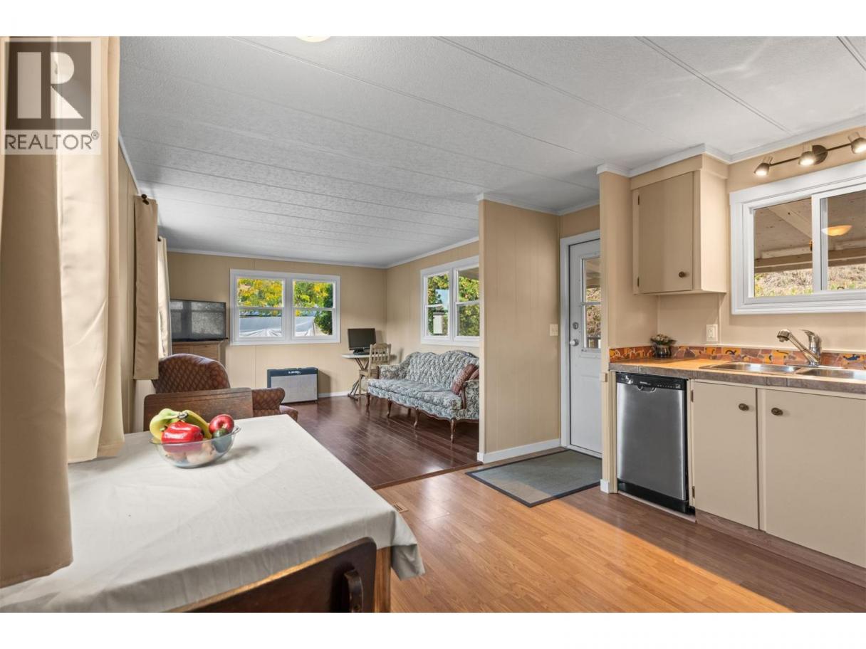 Welcome home to Unit #92 in Lakeway Mobile Home Park! Perfectly situated in a prime location, this home offers convenience and comfort in a well-maintained park. This home is in the 55+ Section. Public transit is right at the park entrance, and you’re just a short walk from Kal Beach, the Rail Trail, Middleton Mountain hiking trails, shopping, and dining — everything you need is close by! This bright and inviting 2-bedroom, 1-bathroom home has been lovingly cared for with updates including fresh paint and newer windows. The open-concept kitchen and living area create a warm, welcoming space filled with natural light. Stay cool all summer long with central air conditioning. Step outside to enjoy the spacious, covered deck — perfect for relaxing or entertaining. The side yard offers added privacy with no neighbor on one side, and two garden sheds provide plenty of extra storage for your tools and outdoor gear. Pets are welcome with park approval. Don’t miss this affordable opportunity to enjoy the Okanagan lifestyle in a peaceful, well-kept community! (id:6769)