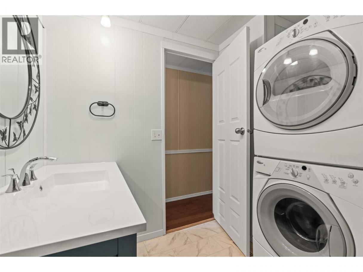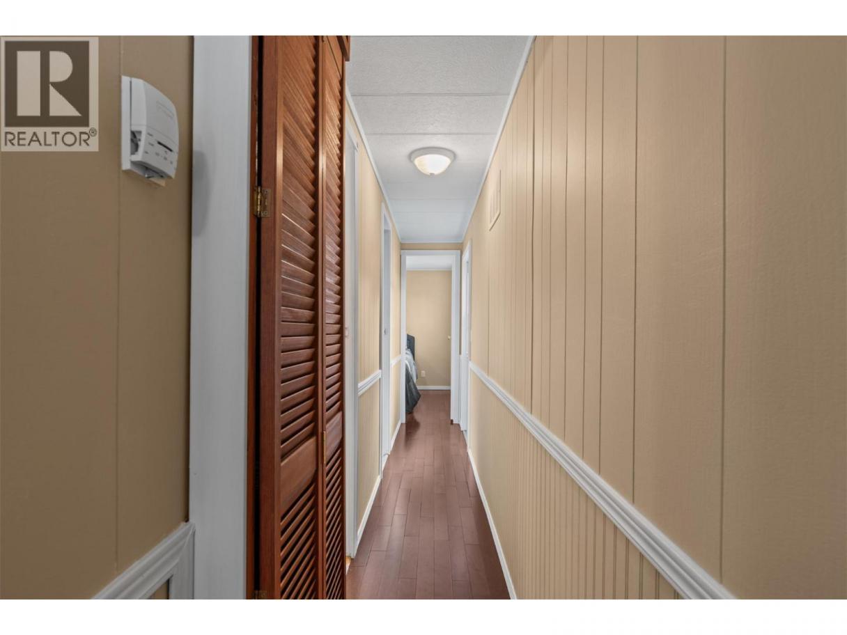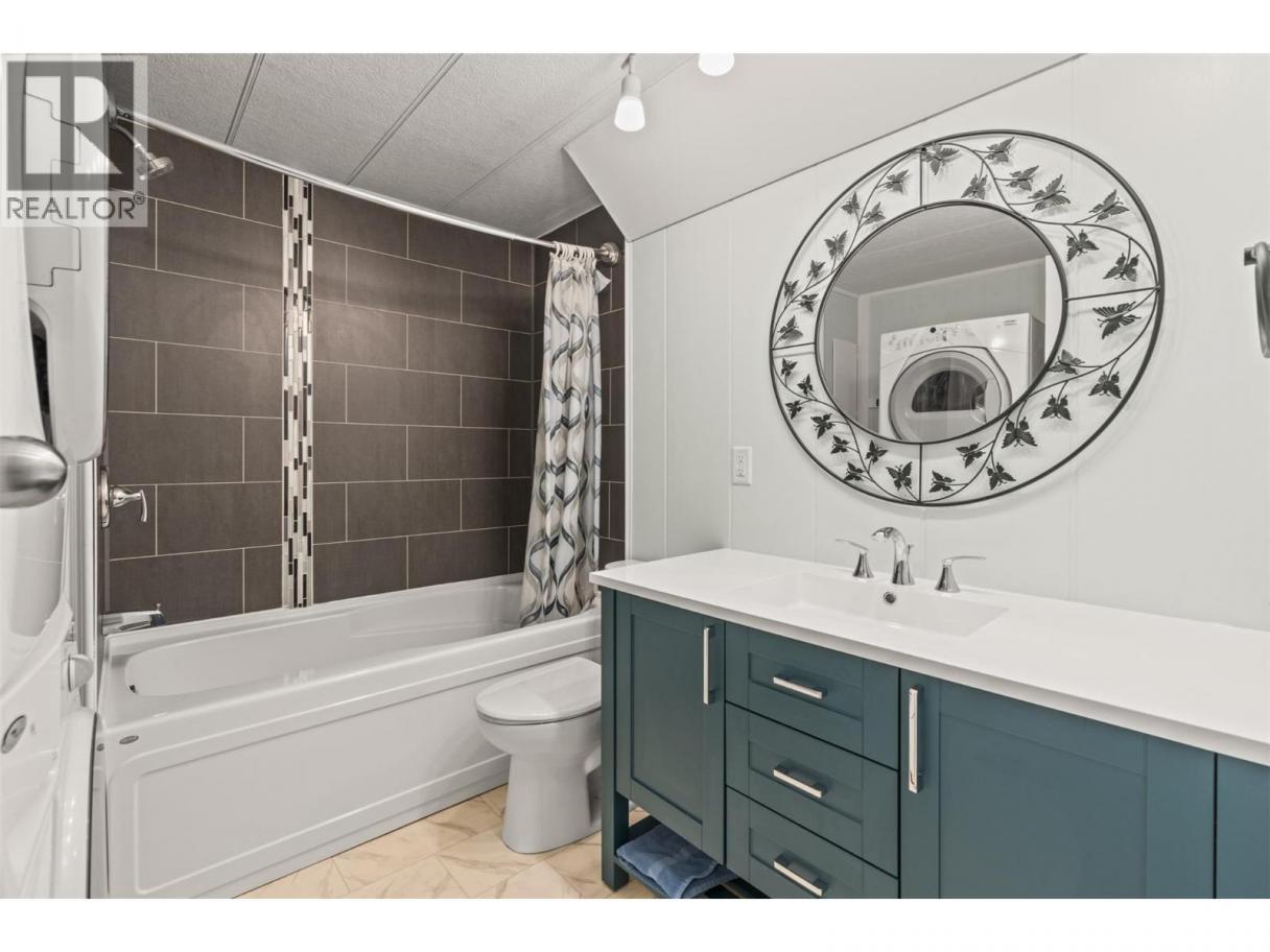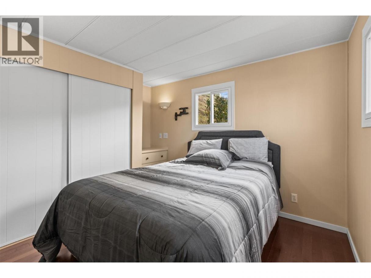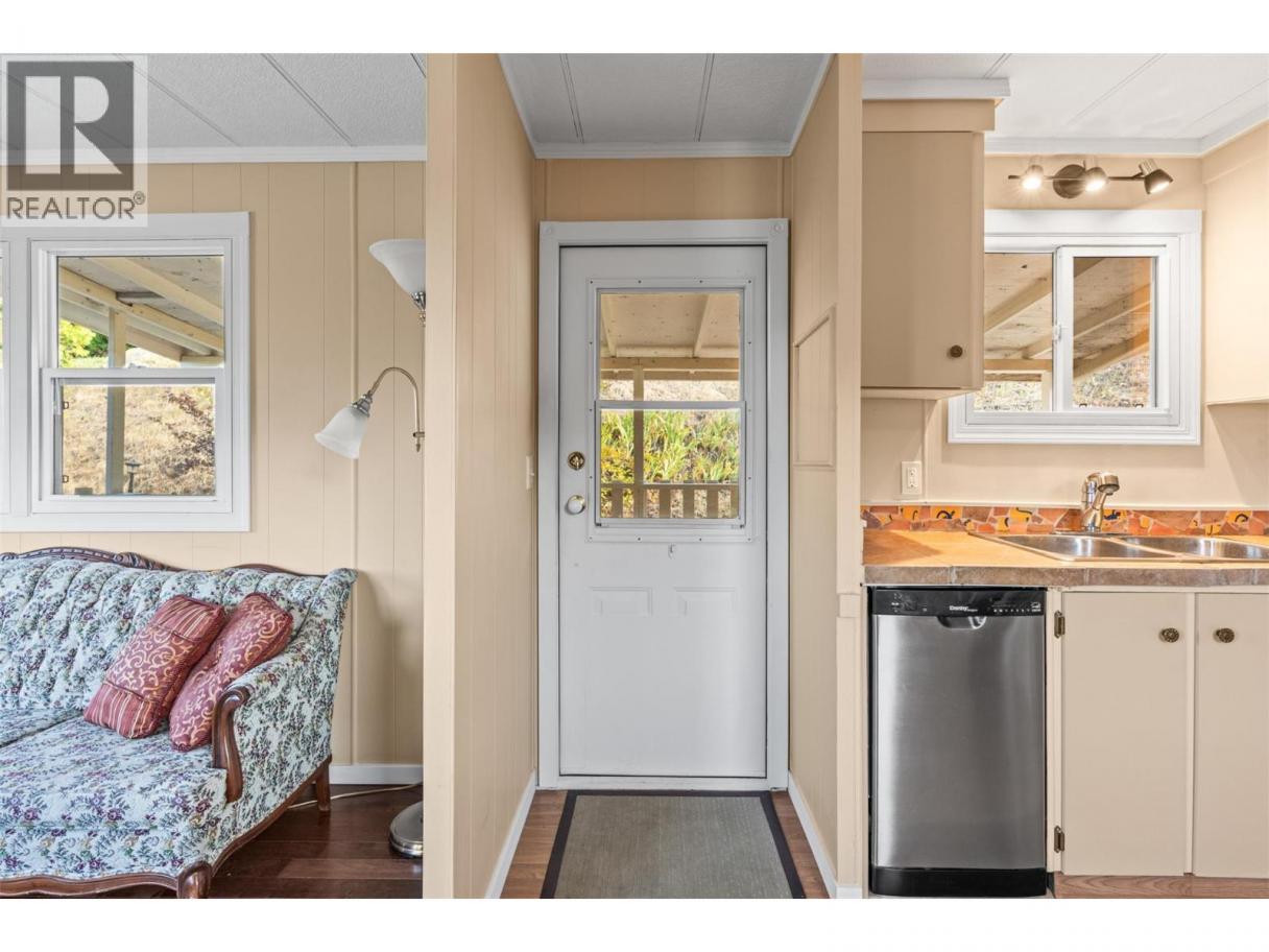 Welcome home to Unit #92 in Lakeway Mobile Home Park! Perfectly situated in a prime location, this home offers convenience and comfort in a well-maintained park. This home is in the 55+ Section. Public transit is right at the park entrance, and you’re just a short walk from Kal Beach, the Rail Trail, Middleton Mountain hiking trails, shopping, and dining — everything you need is close by! This bright and inviting 2-bedroom, 1-bathroom home has been lovingly cared for with updates including fresh paint and newer windows. The open-concept kitchen and living area create a warm, welcoming space filled with natural light. Stay cool all summer long with central air conditioning. Step outside to enjoy the spacious, covered deck — perfect for relaxing or entertaining. The side yard offers added privacy with no neighbor on one side, and two garden sheds provide plenty of extra storage for your tools and outdoor gear. Pets are welcome with park approval. Don’t miss this affordable opportunity to enjoy the Okanagan lifestyle in a peaceful, well-kept community! (id:6769)