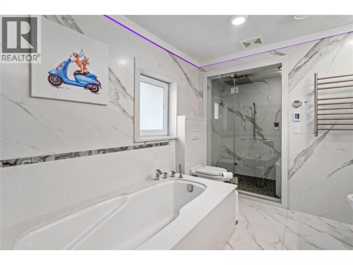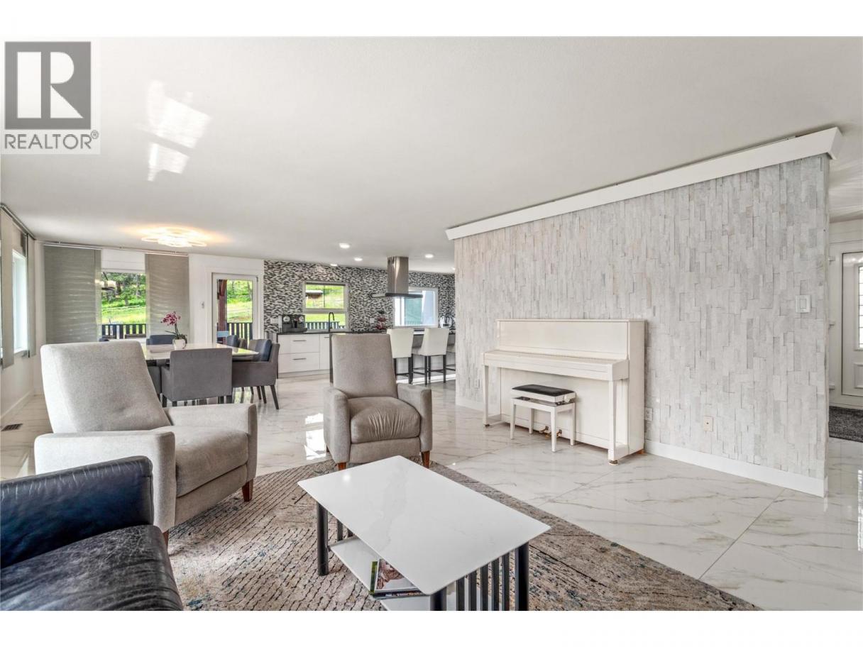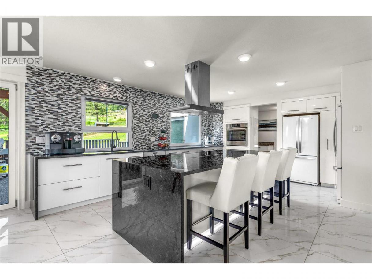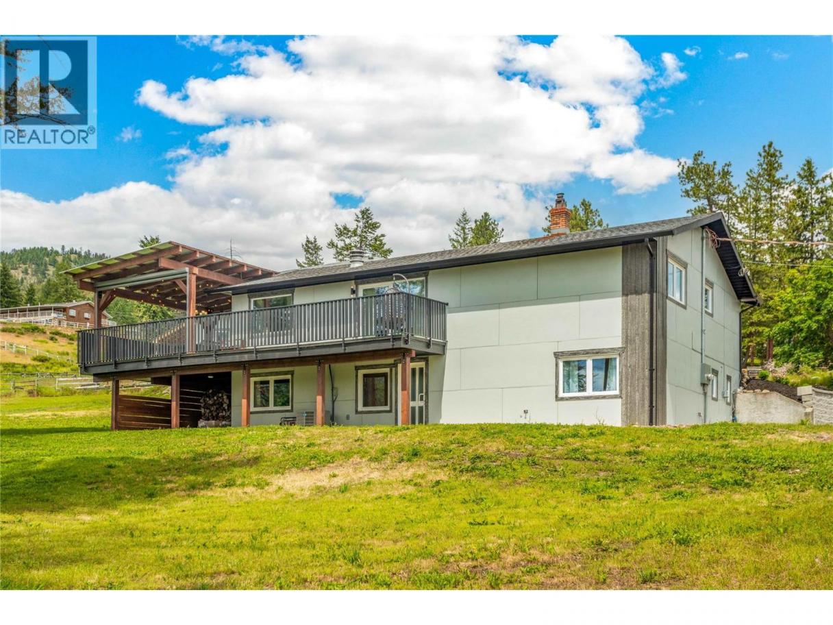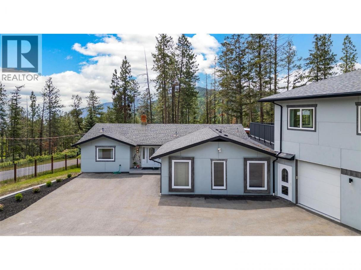 The perfect multigenerational family property, this beautifully renovated home situated on 2.47 acres in the hills of Peachland is sure to impress! Fully fenced w/security gate, driveway that leads to the main house as well as to the upper level of the property where the private 3 bed legal suite is located. The two living spaces are separate from each other and create an ideal living arrangement. Main home is just over 3400 sqft, 4 bed plus den and 4 bathrooms. European windows/doors are triple glazed and feature multi point locks for added security and efficiency. Open concept main floor w/ modern kitchen, beautiful appliances, custom lighting and high end window coverings. Patio w/pergola and electric roll screens for comfort. Master suite has lavish ensuite w/steam shower. Leading to the garage is an indoor hot tub area with massive 12 person hot tub and sauna that are all included. Oversized triple garage with epoxy floors. Upper level suite is almost 1400 sqft, featuring its own private oversized single garage, carport and this LEGAL suite is 3 bed, 2 full bath. Modern finishing and an open concept living space with forced air heating and even a massive patio space with a view! The property is almost 2.5 acres with space to build a detached shop where you could have a home based business. Was a horse property so there is fenced paddocks and an outbuilding being used as storage. Very well constructed and versatile! Check out the virtual tour and marketing video! (id:6769)