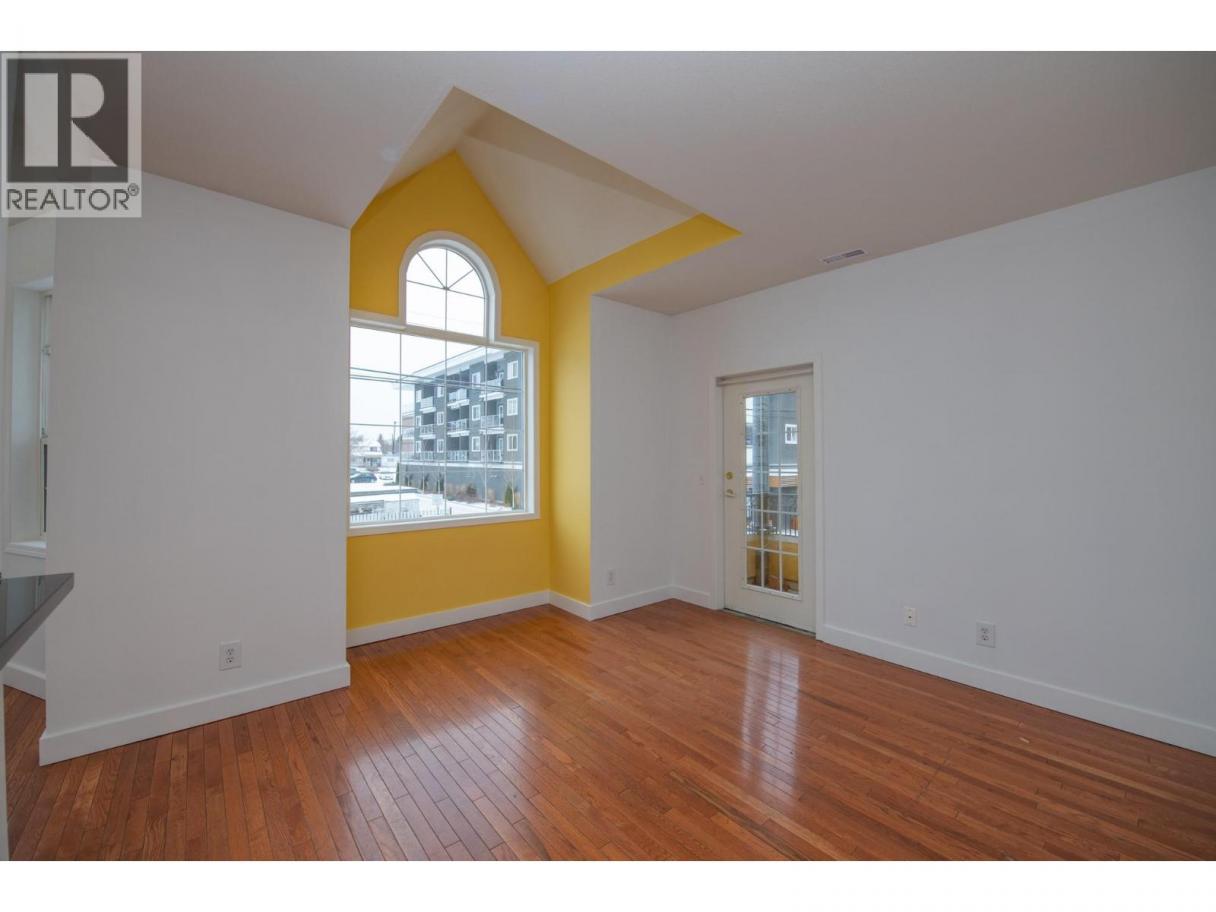 Unique 2 level townhome in downtown Vernon. This spacious townhome features over 1500 sq/ft of living space, including 3 bedrooms and 2 full bathrooms. The spacious kitchen has solid surface counters, stainless steel appliances and an eat in island. The living room is bright, flows nicely from the dining room and has real hardwood flooring. 2 bedrooms and a bathroom complete the main living level. Upstairs, you will find a oversized loft style master bedroom with vaulted ceiling plus an adjoining bathroom. Plenty of storage, balcony patio and tall ceilings make this unit stand out. Small 3 unit strata with quaint design, walking distance to all shops and amenities downtown has to offer. Freshly painted,1 pet allowed. Book your showing today! (id:6769)