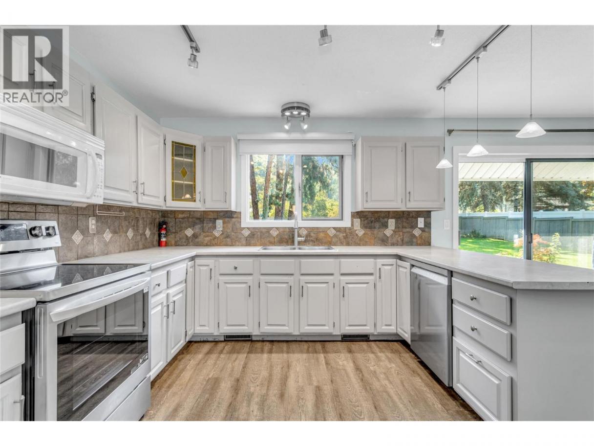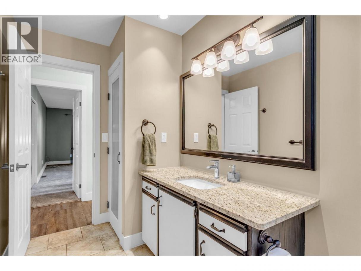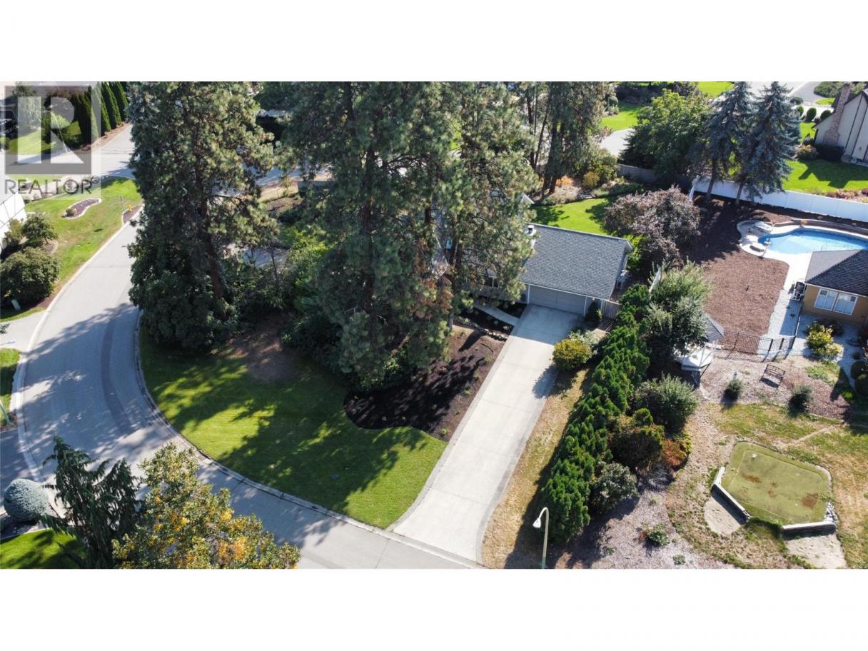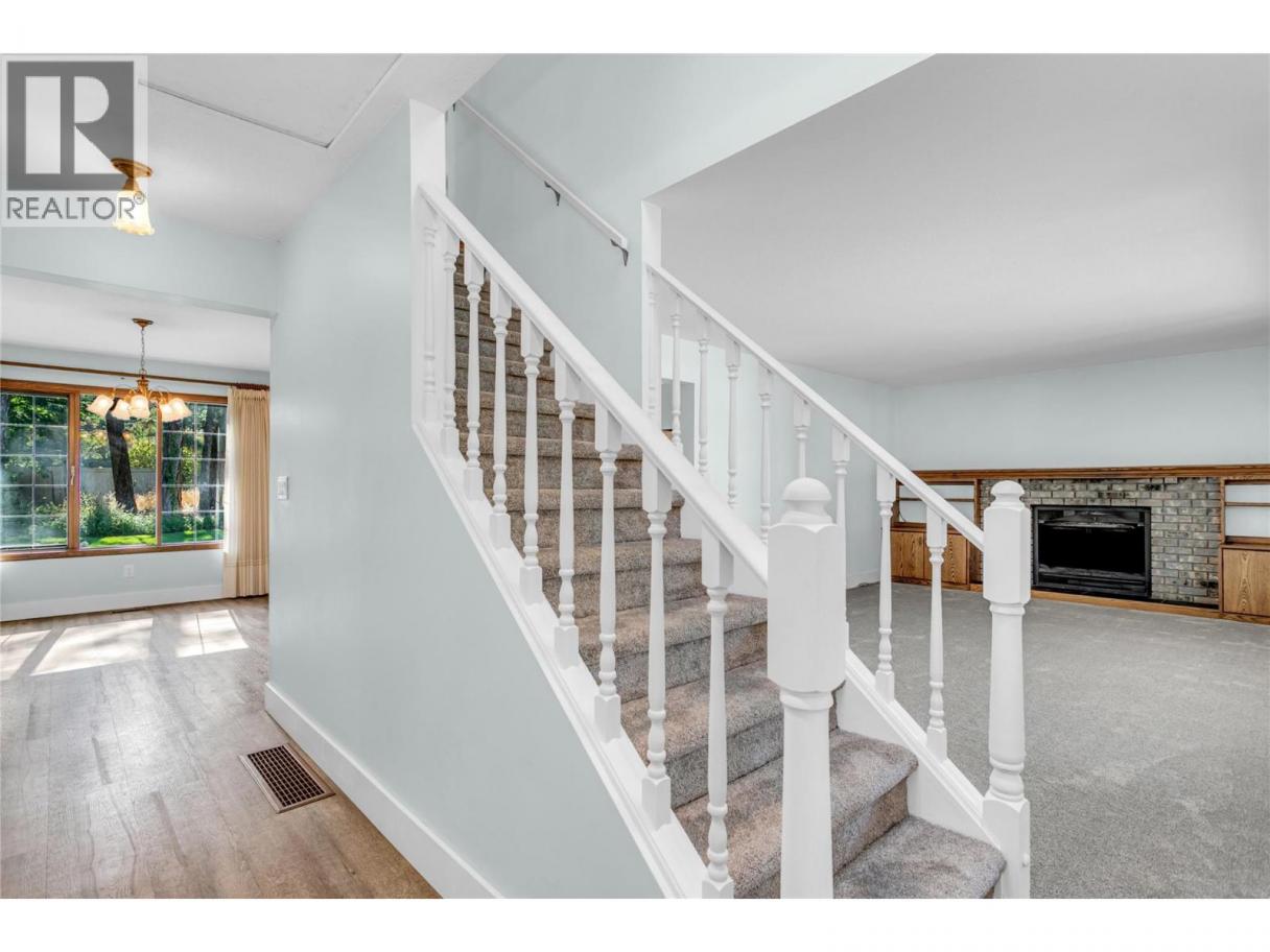 Welcome Home! This is your opportunity to live on the most desired, quiet cul-de-sac in the Hall Road area on an estate sized half-acre lot with 2 driveways! Step in to over 3,000 sqft with 3 bedrooms and a den (could be 4th bedroom w/ added window) in this 1.5 storey home plus a full basement w/ separate entrance. The main level hosts a spacious kitchen, breakfast nook, formal dining room, cozy living room (brand new carpets throughout house) and a separate laundry w/ several easy accesses to the magnificent, private and fully-fenced backyard with stamped concrete patio. The primary bedroom is located on the main across from an elegant bathroom, plus 2 bright bedrooms and a newly renovated full-bathroom upstairs. The basement offers a large den (potential 4th bed), 3rd full bathroom (brand new tub and tile surround) family and rec room area plus huge storage/utility area. This home has been cherished and offers incredible potential with solid bones. Equipped with built in vac, central air, underground irrigation and an oversized double garage (27ft deep one side). Loads of parking for RV and boats and potential for a suite with own driveway/entrance. Supreme cul-de-sac location with only 7 houses and an oaisis with plenty of space for a pool and/or detached shop. Walk to parks, bus stops, the turtle pond and the trails of Mission Creek from your front door. Rural living just minutes from world class golf and dining, orchards and wineries. Buy a slice of paradise today! (id:6769)