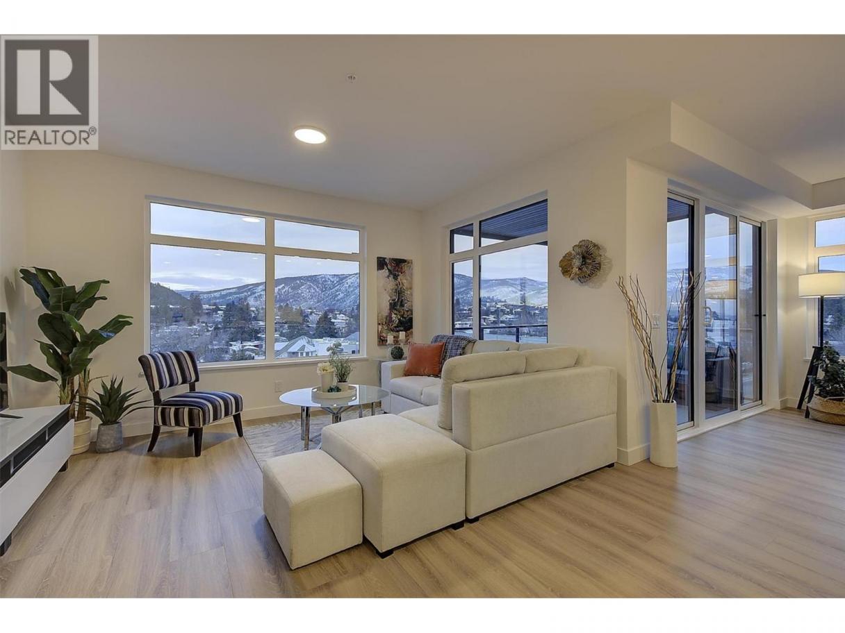 Stunning 5th Floor Corner Unit at The Residences at Lakeview Village, featuring 2 bedrooms plus a den, 2 parking stalls and a storage locker. As you enter, floor-to-ceiling windows frame the panoramic lake and mountain views, creating an immediate wow factor. Step onto the covered deck, complete with gas bbq hookup, and you will experience the pleasure of Okanagan living. Inside, you will be impressed by the contemporary design and premium finishes featuring light oak and white cabinetry, elegant quartz countertops, and sophisticated large-format tile accents. The chef-inspired kitchen boasts premium appliances, including a 6-burner gas stovetop, providing inspiration to experiment with new recipes. And with 9-foot ceilings, the home provides a fantastic open and airy feeling β ideal for entertaining while taking in the views. The primary ensuite offers a large glass-walled shower, double vanity, heated floors, and custom lighting for a luxurious personal retreat. Residents of Lakeview Village will enjoy an impressive array of amenities β an outdoor pool and hot tub, large fitness room, greenhouse, rooftop terrace and lounge, all within minutes to restaurants, breweries, wineries, groceries, golf, tennis and pickleball courts, hiking and biking trails, beaches and so much more. This exceptional home is a gem β book your showing before itβs gone! (id:6769)