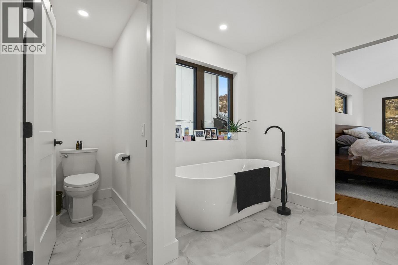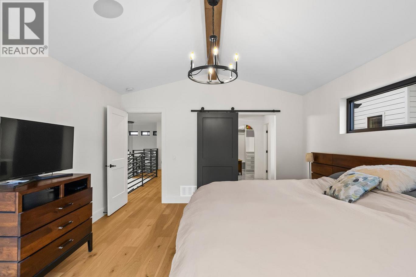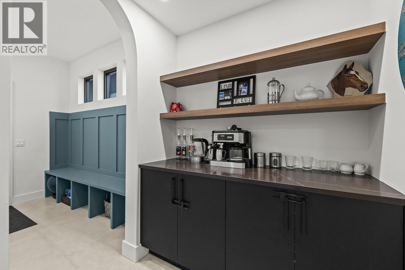 This Kettle Valley contemporary home blends luxury Okanagan living with striking architectural detail and a bright, polished interior. Approx. 2,384 sq ft across two levels creates easy flow, starting with an impressive main floor featuring soaring ceilings, floor to ceiling windows, and a seamless connection to the covered patio with two folding doors and in-ground pool area. The kitchen pairs sleek black cabinetry with warm wood accents, stainless steel appliances, a walk-in coffee bar area, and a large island that opens to the dining and living spaces. Enjoy in-floor hydronic heating throughout the entire main floor, office, and entryway. A natural gas fireplace anchors the room, while the glass enclosed wine cabinet adds a bold focal point. The main level also includes an office, mudroom, bathroom, and access to the garage. Upstairs, you’ll find three bedrooms including the spacious primary with a modern ensuite and generous walk-in-closet. A full bathroom, and laundry room complete the upper level. The backyard sits against natural rockwork for privacy and a dramatic backdrop, the opportunity to add your own finishing touches to this 12x34 concrete pool. Located in a quiet pocket of Kettle Valley near parks, trails, schools, and the new Mission Park Shopping Centre, this home suits families or investors seeking a unique and modern property in a highly desirable neighbourhood. (id:6769)