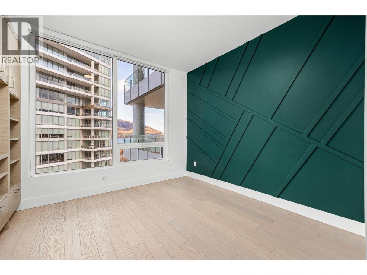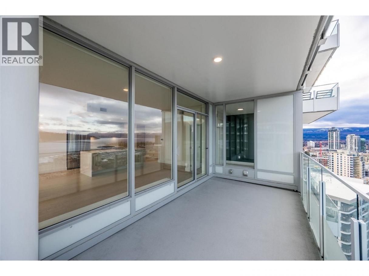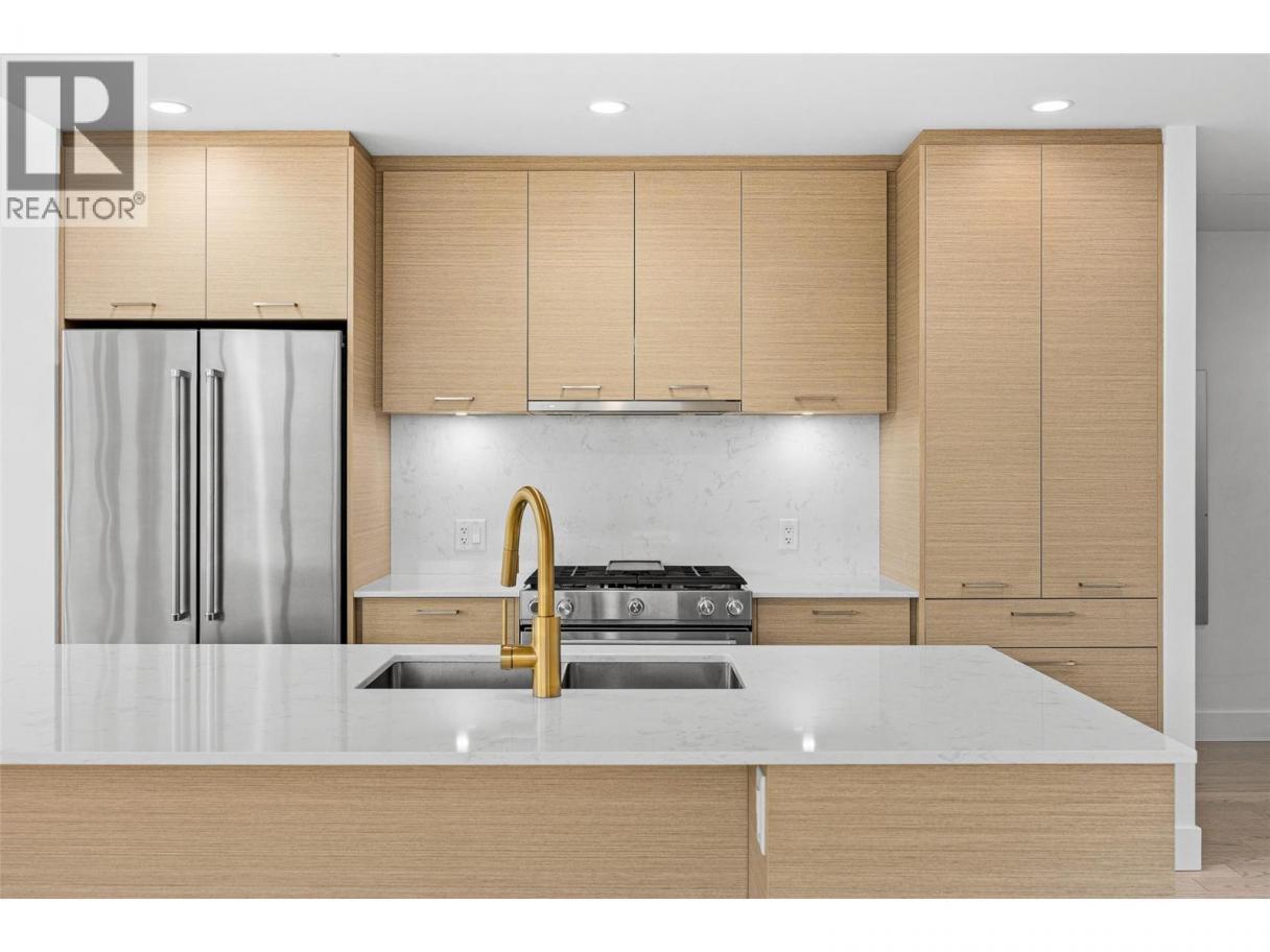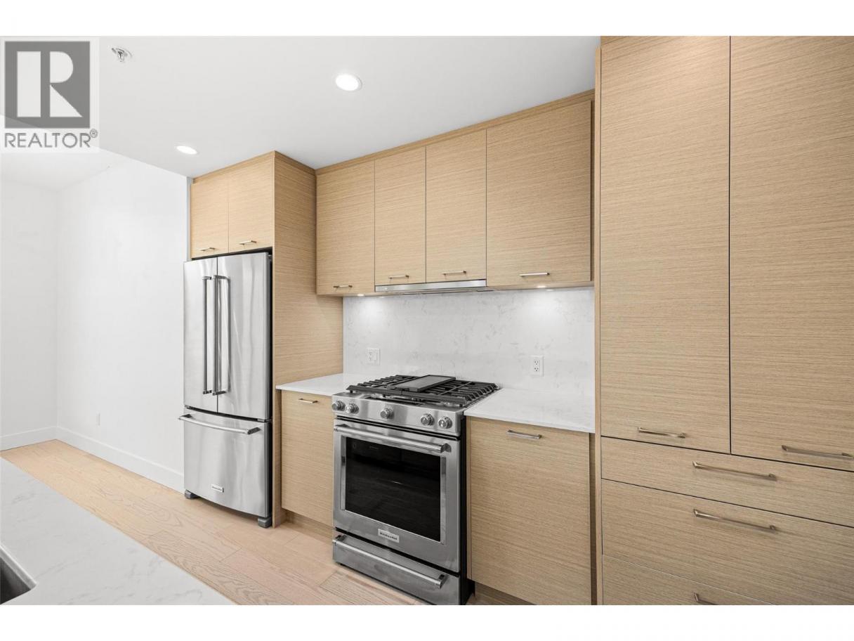 PANORAMIC LAKE VIEWS. Perched high above the city, unit 2205 at One Water Street delivers a true condo-in-the-sky experience with a sweeping west-facing vistas, capturing lake, city mountain & sunset views from every angle! This 2 bed, 2 bath corner unit features an open floor plan where the kitchen, dining and living spaces flow seamlessly to a massive covered sundeck overlooking Kelowna’s waterfront park & Okanagan Lake. The best spot in town to watch boats pass and a front row seat to take in the fireworks! The kitchen blends warm beach tones inspired by Knox Mountain with stainless steel appliances, gas range, island seating, upgraded lighting & near floor to ceiling windows. Custom upgrades include Westwood cabinetry in the primary bedroom and a built-in laundry closet with stacked washer & dryer. The primary bedroom offers a walk-in closet & 3-pc ensuite, while the 2nd bedroom captures jaw-dropping lake views. Ideal as a guest room, office, or flex space! This condo also has a second 4-pc bath with rain shower. Enjoy resort-style amenities: 2 pools, hot tub, fitness centre, yoga studio, steam room, pickleball court, BBQ stations, fire pits, security, guest suites, car wash bay, dog park & more! Includes 1 parking stall near the elevator + 1 storage locker. Convenience meets luxury - live steps to the beaches, restaurants, breweries, coffee shops, Prospera Place, the Cultural District, yacht club + city transit! Move in this spring! A fast possession is possible! (id:6769)