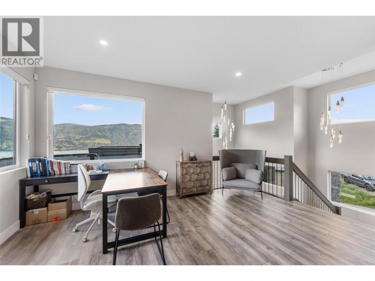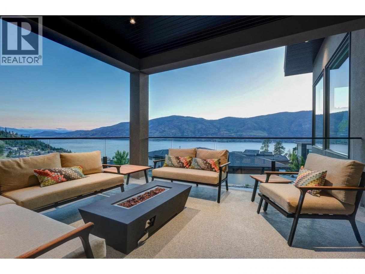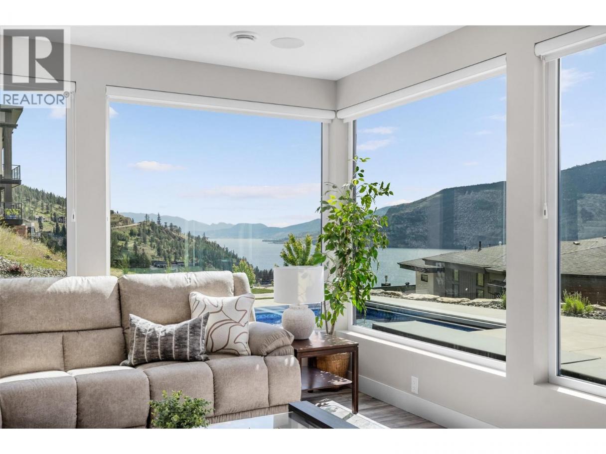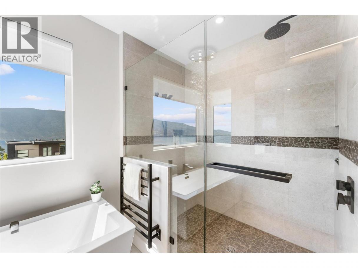 Gorgeous modern home in McKinley Beach where elevated Okanagan living meets thoughtful design & panoramic lake views. Situated on a rare 0.374-acre lot, this estate boasts a spacious family layout with resort-style amenities, expansive indoor-outdoor living, & a self-contained 2 bed/1 bath legal suite. The main level impresses with soaring ceilings, a chef’s kitchen featuring JennAir appliances, a massive island, & a seamless connection to the covered deck—perfect for al fresco dining. The luxurious primary suite enjoys sweeping lake &valley views, a spa-inspired ensuite, & a walk-through dressing room. A bright office, large pantry, powder room, & laundry complete this level. Downstairs, entertain in style with a rec room, wet bar with pass-through windows, wine cellar, & direct walkout access to the backyard oasis, featuring a heated saltwater pool, hot tub, & built-in firepit. Three additional beds & two baths offer flexibility. Upstairs, a versatile loft space is ideal for a home office or gym. The legal suite offers privacy & comfort with a separate deck, laundry, & private entrance. A highlight of this home is the 1300+ sq ft garage with cabinets, separate heat, & hard wired for network. Located minutes from the marina, airport, UBCO, wineries, & golf. Residents enjoy exclusive access to McKinley’s amenity centre with gym, pool, hot tub, pickleball, & more. This is a rare opportunity to own one of the most versatile & beautifully appointed homes in McKinley Beach. (id:6769)